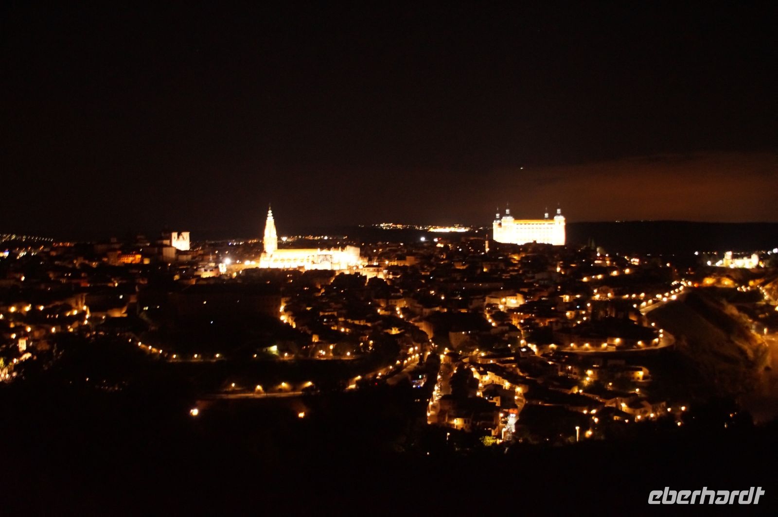 Zum Abendessen bekamen wir diesmal kein Menü, sondern á la Carte. Das war ein wenig sperrig, da wir zunächst mit dem etwas seltsamen Aufbau der Karte nicht zu Recht kamen. Am kommenden Tag und später, in Chinchón, wo es ähnlich sein würde, waren wir schon an den Aufbau der Karte gewöhnt, was uns half, schneller zu entscheiden. Aber so aßen wir heute tatsächlich zu in Spanien normalen Uhrzeiten, also ziemlich spät. Ich glaube, es war schon nach 23:00, als wir das Restaurant zufrieden verließen.