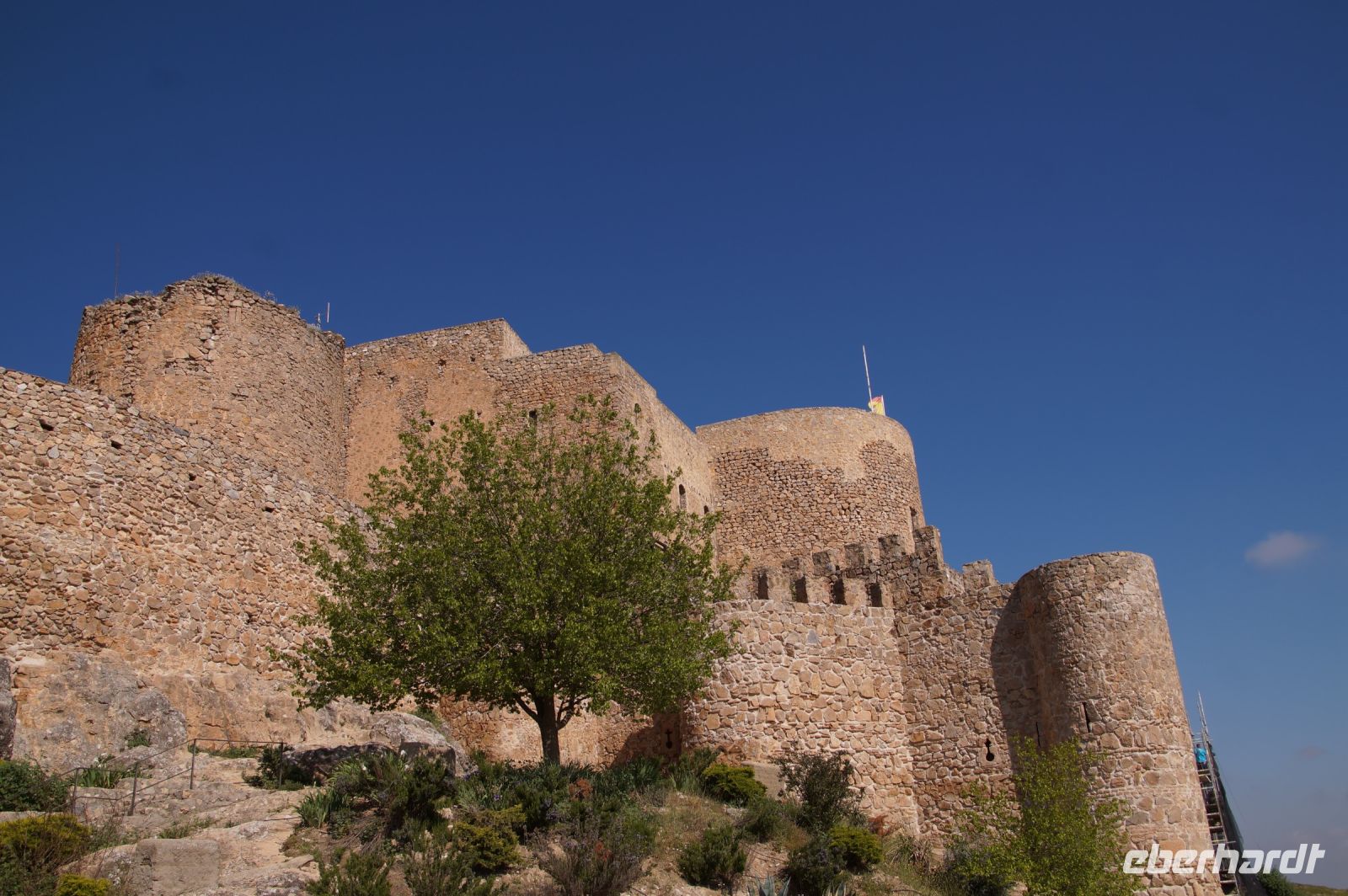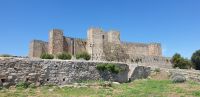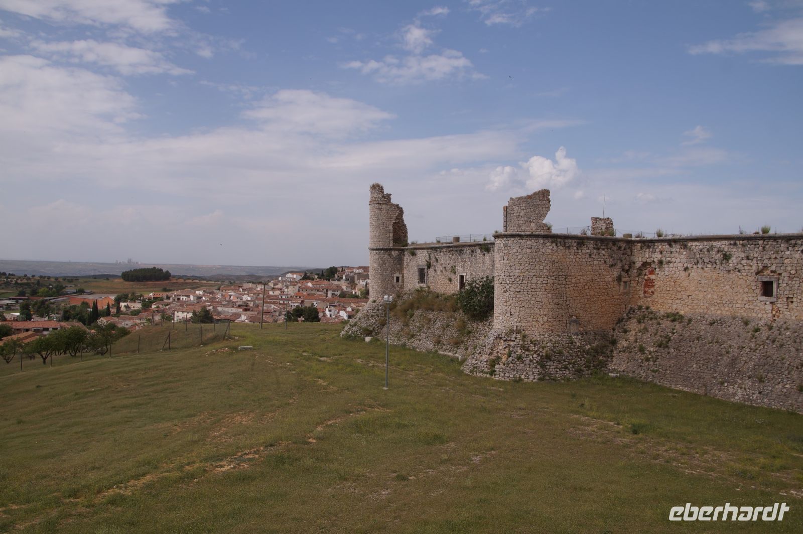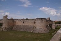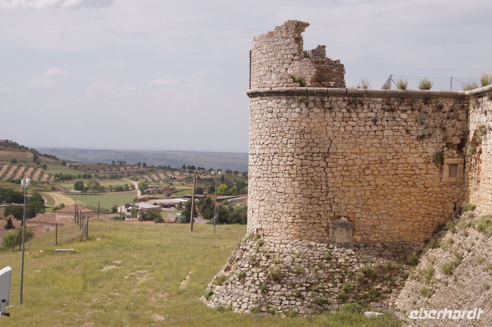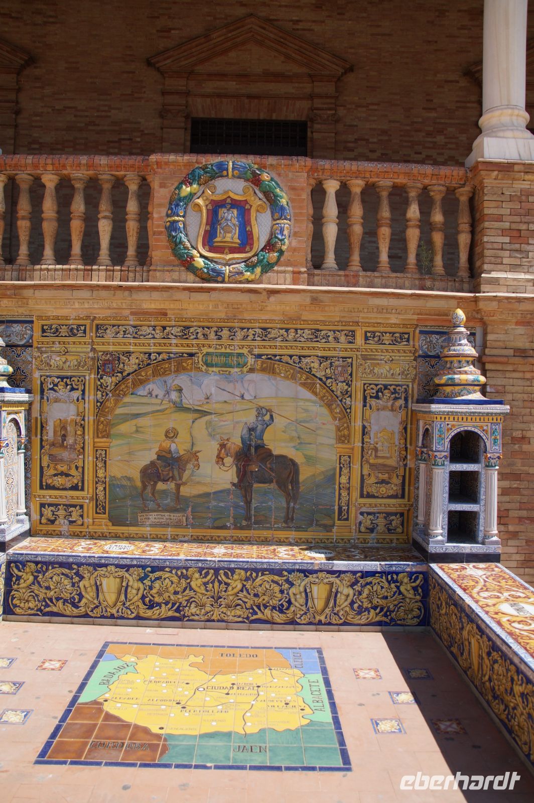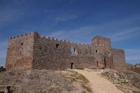 Heute ging es von Toledo in Richtung Süden. Unser erstes Ziel war die Kleinstadt Consuegra. Also nicht im eigentlichen Sinne die Stadt selbst, die unterhalb eines langgestreckten Hügels - dem Cerro Caldérico - liegt, sondern vielmehr der Hügel, denn auf diesem reihen sich links und rechts der alten Kreuzritterburg der Johanniter, dem Castillo de Muela, zwölf Mühlen auf, wegen derer Consuegra sich als Schauplatz des Kampfes des Don Quijote gegen die schrecklichen Riesen mit den furchtbar herumduchtelnden Armen verkauft. Aber nein, dieser Kampf gegen Windmühlen fand nach Cervantes auf dem etwa 100 km entfernten Campo de Montiel statt. Nichtsdestotrotz ist das Mühlenpanorama mit Burg natürlich berühmt und steht für Kastilien-LaMancha, dem Burgenland welches wir mit Spaniens bekanntester literarischer Figur, dem Don Quijote verbinden.