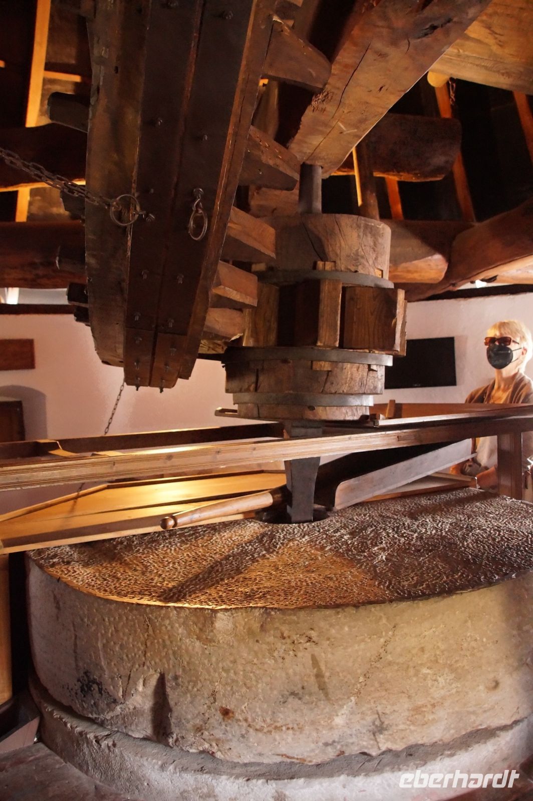 Später werden die Käse in eine weitere Trockenkammer geschoben, der Schimmel wird ab- und mit Olivenöl eingerieben - es handelt sich ja um keinen Schimmelkäse, wie uns gegenüber betont wurde - und sie dürfen weiter trocknen.