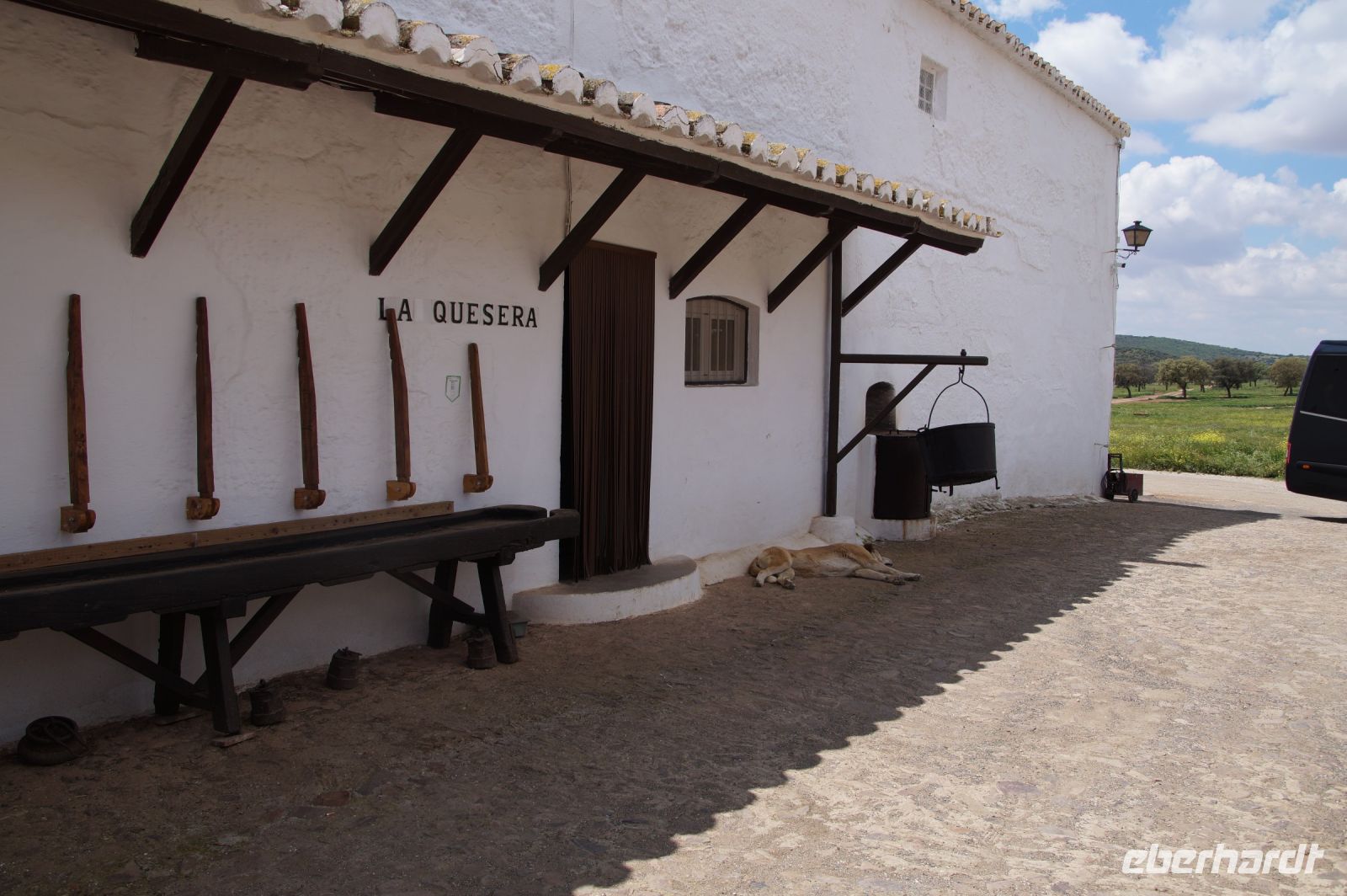 Das erste Ziel für heute war Casar de Cáceres (Kaßar de Ka?eres). In diesem nur wenige Kilometer von Cáceres entfernten Dorf wird die in Spanien berühmte Torta del Casar hergestellt, ein Schafskäse, der vielleicht mit einem Camembert vergleichbar ist, nur eben von der Rohmilch des Schafes und nicht von der Kuh.