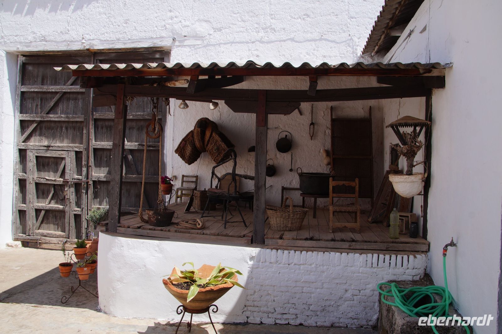 Wie würden von Carlos, einem sehr netten und freundlichen Endzwanziger bis Mittdreißiger begrüßt, der uns in einem etwas schmuddeligen Metzgerskittel begrüßte. Er entschuldigte sich, er müsse eben den Laden schließen, dann setzte er sich an die Spitze unseres kleinen Zuges und wir liefen einmal ums Eck, zum Secadero (Trockenhaus). Dort sahen wir die Schinkenverarbeitng. Carlos erklärte uns, dass die Schweine von den Dehesas aus der Ebene kämen, max. 50 km Umkreis. Hier oben auf dem Berg könne man nicht so viele Schweine halten, dafür sein hier die Luft geeigneter, um die Schinken abhängen zu lassen. (Kleiner Fun Fact zum Wort Dehesa: dieses wird, como dios manda (wie Gott befiehlt) [de‘esa] ausgesprochen. Dieses e-Sprechpause-e schien unserem Fahrer Santiago aber schwerzufallen, so dass dieser die Silben einfach verkehrte und aus dehesa [de‘esa] hedesa [edesa] machte.)