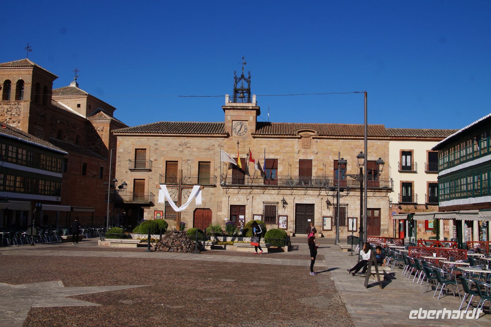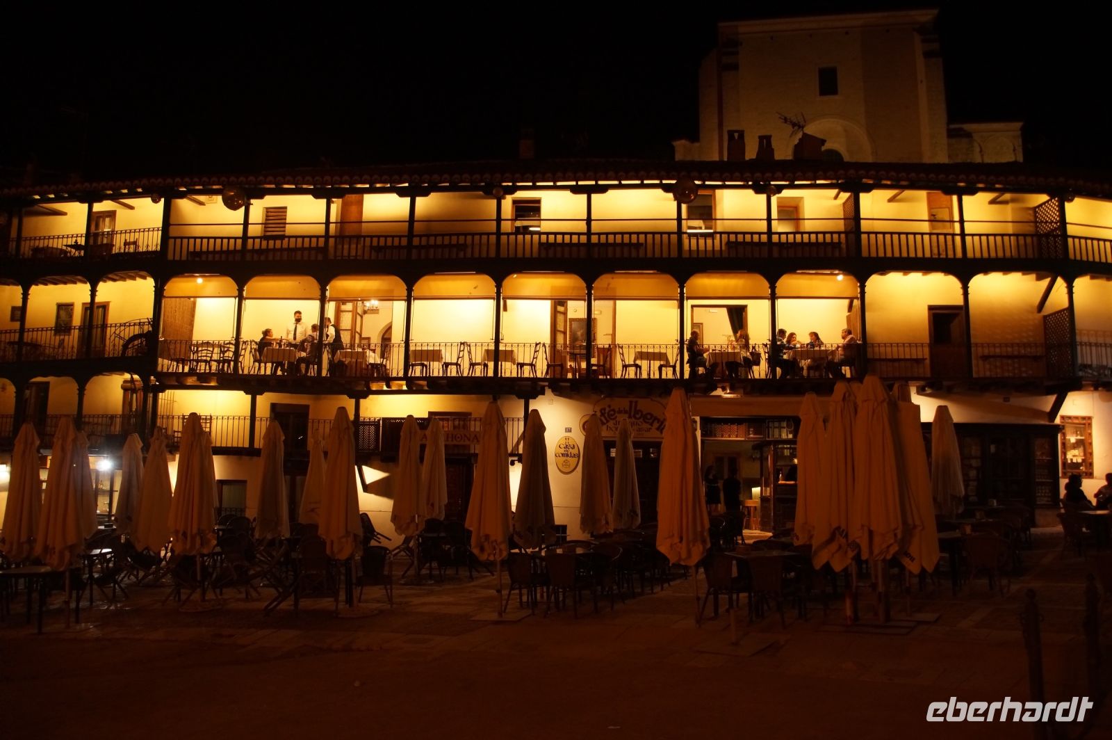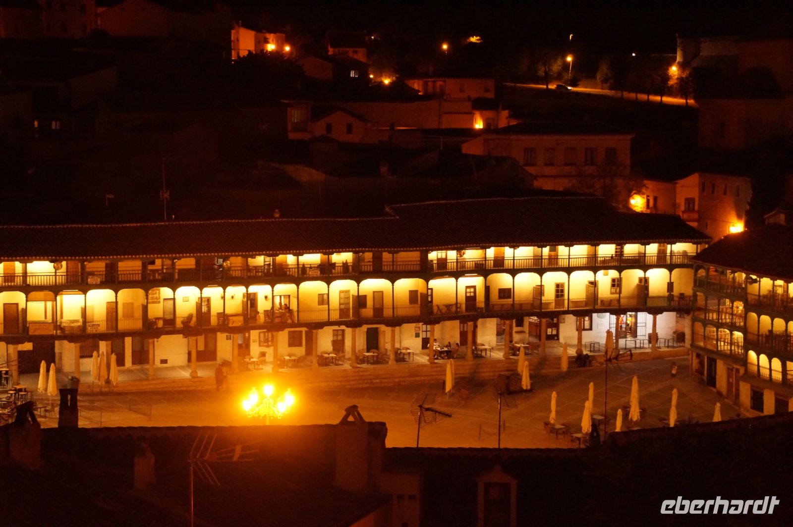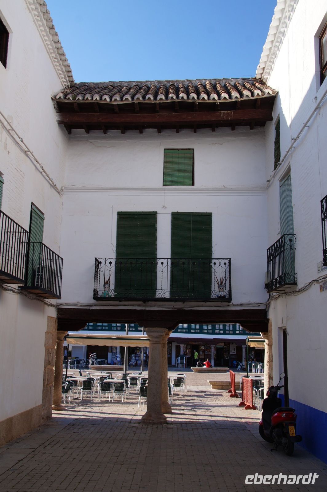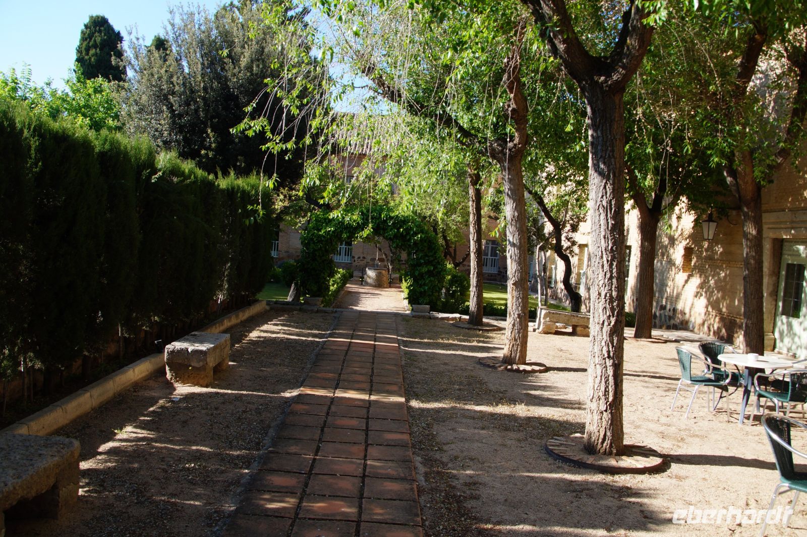 Nachmittags erreichten wir den Parador in Chinchón, wo man für uns zum Abendessen draußen unter Bäumen eingedeckt hatte, die Plaza Mayor könnte man von dort kaum verfehlen, der Durchgang zu ihr lag direkt gegenüber des Ein- und Ausgangs des Paradors.