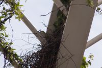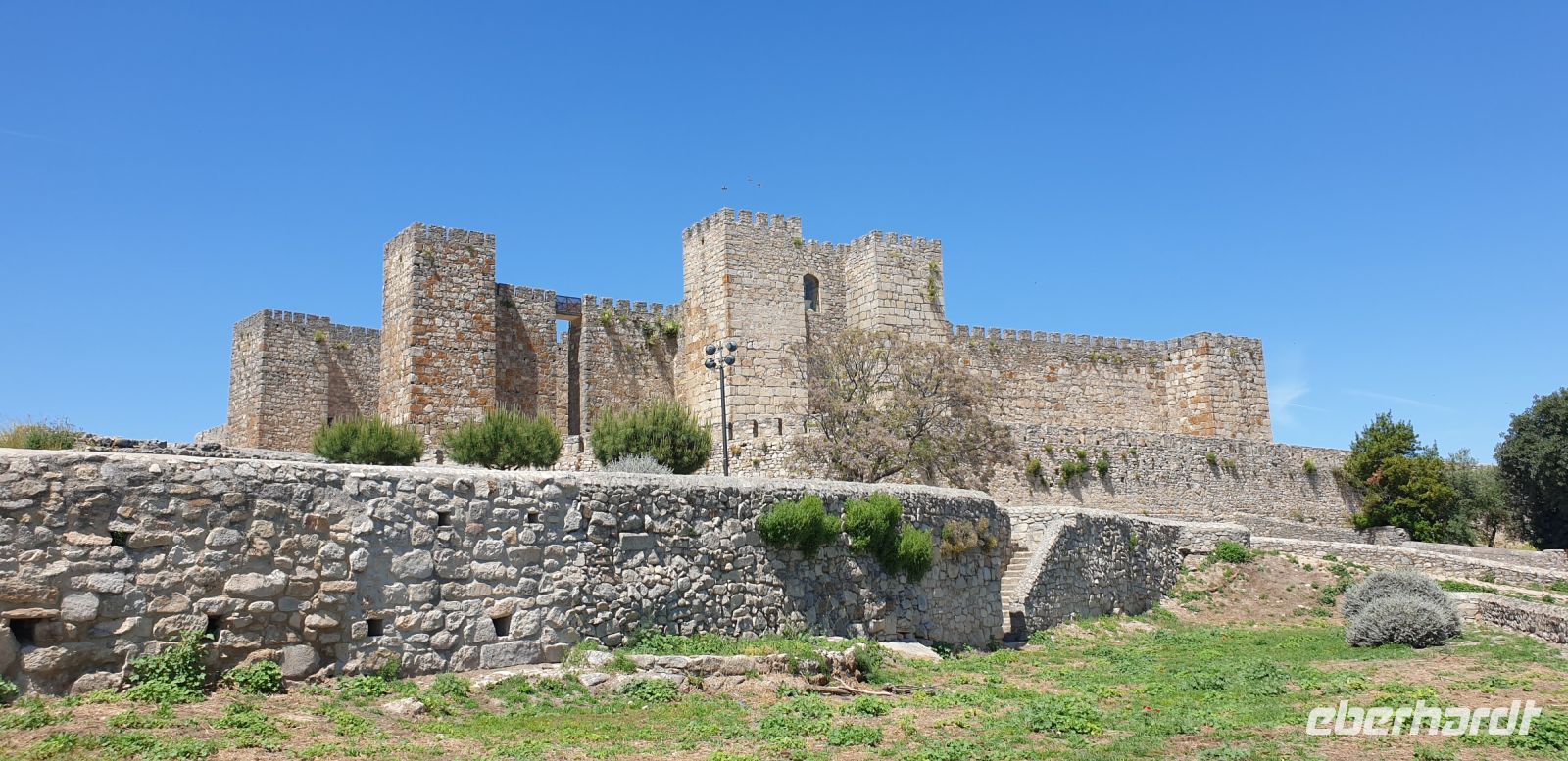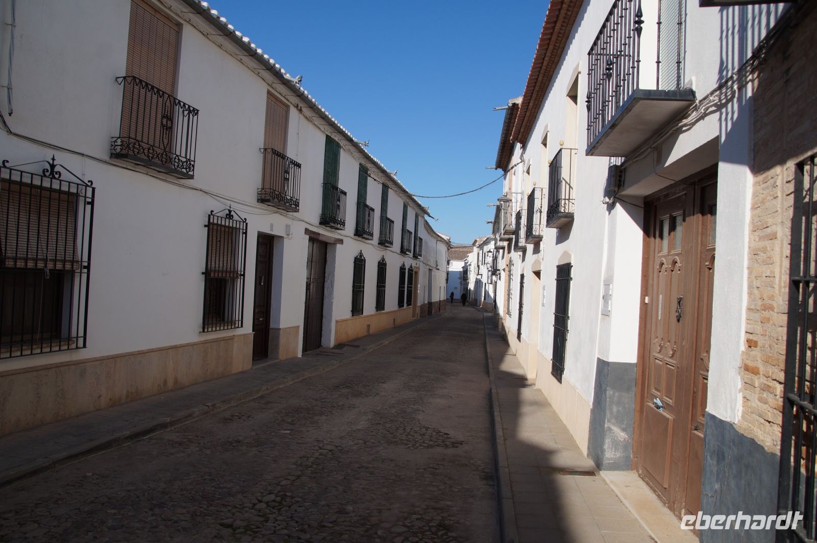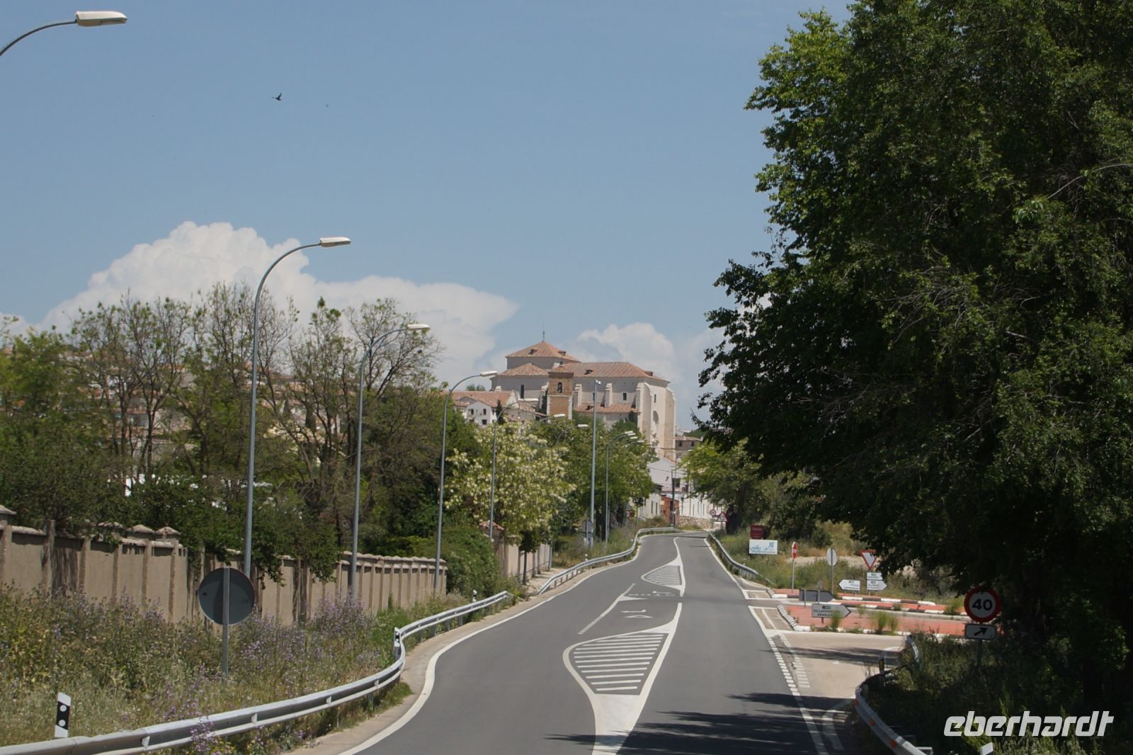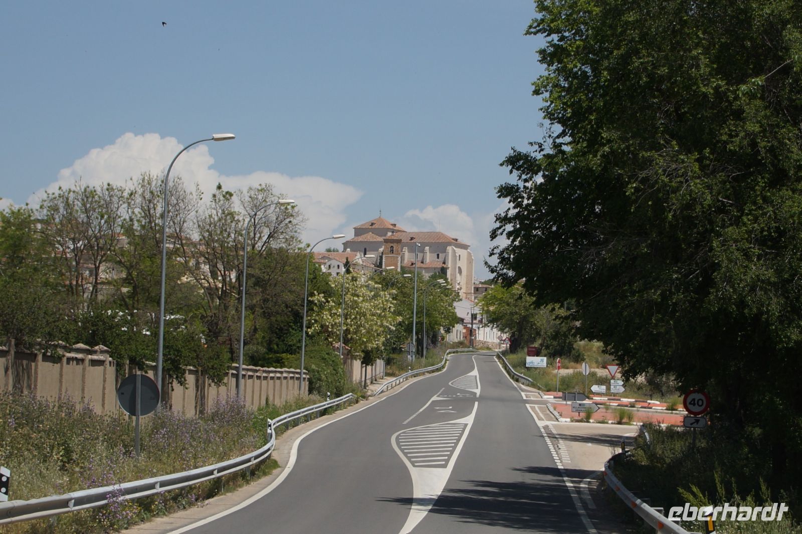 Kurz hinter Ciudad Real hatten wir den Guadiana (in römischer Zeit Anas Flumen, dann Wâdî Ana, daraus Guadiana) überquert, der blieb nun meist links von uns. Er fließt in Ost-West-Richtung durch die Mancha und die Extremadura und biegt dann nach Süden ab, um die Grenze zwischen Spanien und Portugal zu bilden. Immer wieder durchquerten wird landwirtschaftlich genutzte Flächen in seinem Tal und konnten die vielen Störche auf ihren Nestern bestaunen. Kaum ein Mast einer Überlandleitung, kaum eine Antenne, der bzw. die nicht als Mehrfamilienhaus von Störchen genutzt wurde.