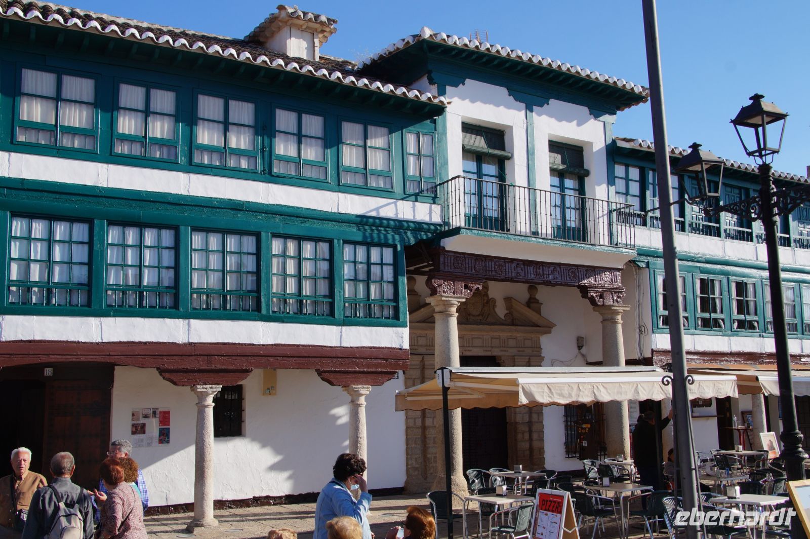 Die Zeit bis zum Abendessen nutzten dann einige aus der Gruppe noch individuell die Möglichkeit zu einem Spaziergang durch die Stadt. Man begegnete sich auf dem Hin- oder auf dem Rückweg. Unser Parador war in einem ehemaligen Klarissenkonvent untergebracht und es waren ein paar Minuten bis zur Plaza Mayor mit ihren hübschen Balkonen und ihrem Theater Corral de las Comedias und auf dem Weg zwischen Parador und Plaza Mayor ließen sich hier und dort ein paar interessante Fassaden bestaunen.