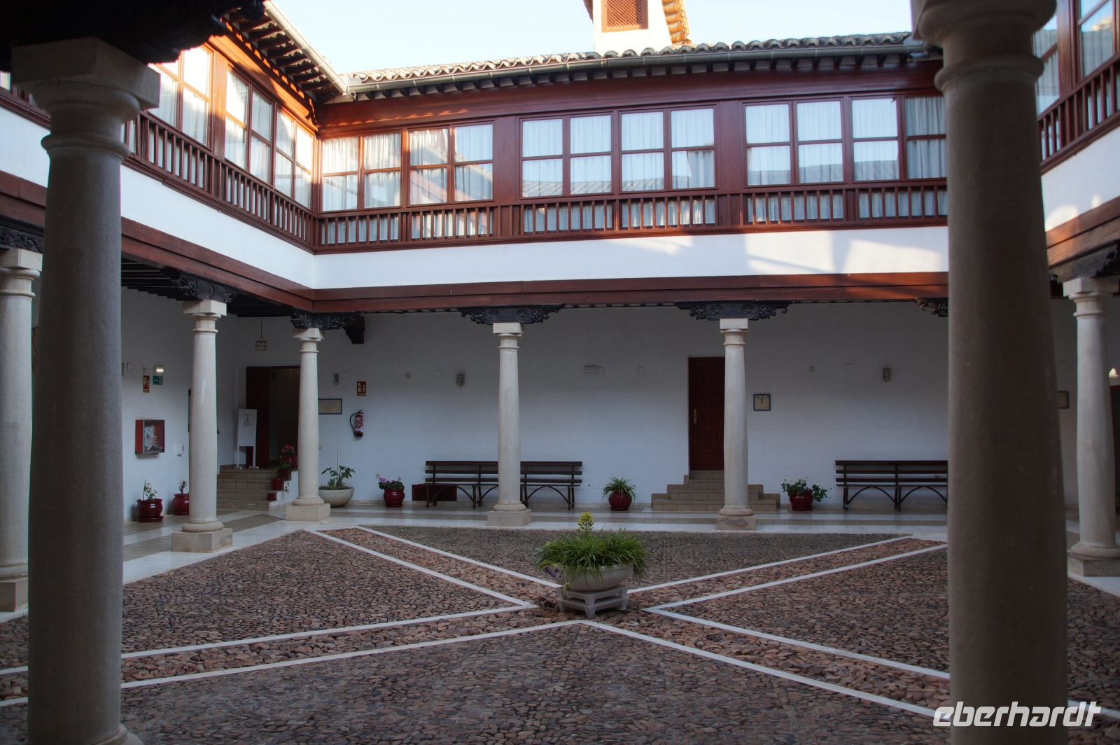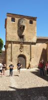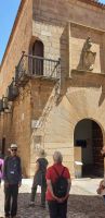 Einige von uns konnten im Parador sofort ihre Zimmer beziehen, aber, da wir bereits um 12:00 ankamen, waren andere Zimmer noch nicht fertig und so hatten wir anderen das Pech, dass wir vor der Stadtführung um 13:00 unsere Zimmer noch nicht in Augenschein nehmen konnten. Dafür saßen wir in einem schönen Innenhof des Parador, wie so viele Paradores ein ehemaliger Konvent, dieses Mal von einem Zweig der Frauensektion des Franziskanerordens, dem Orden Hospitalaria de Jesús Nazareno.