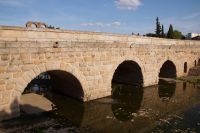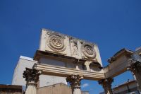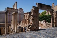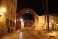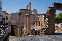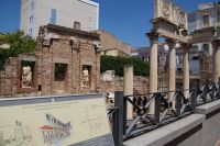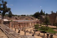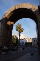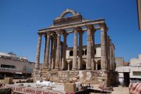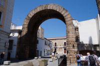 Unser Weg führte uns zunächst zum Trajansbogen, einem Bogen der mal als Triumphbogen, mal als ehemaliges Stadttor interpretiert wird. Das Museum der Stadt interpretiert ihn als Zugangstor zum Provinzialforum (Mérida hatte einer Inschrift zufolge zwei Foren, nämlich das städtische Forum und das Provinzialforum, ähnliches lässt sich auch in Tarragona nachweisen). Hier nun erfuhren wir, dass der Trajansbogen genannte Bogen wahrscheinlisch schon zu Zeiten des Kaisers Tiberius (Kaiser von 14 - 37) gebaut wurde, also knapp 100 Jahre früher (Trajan: 98 - 117).