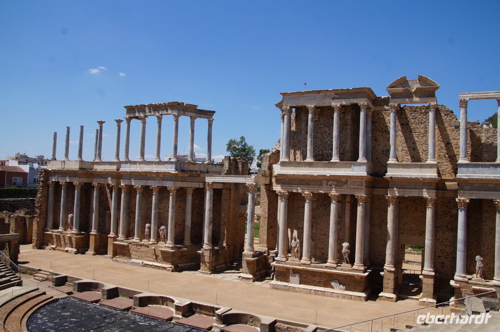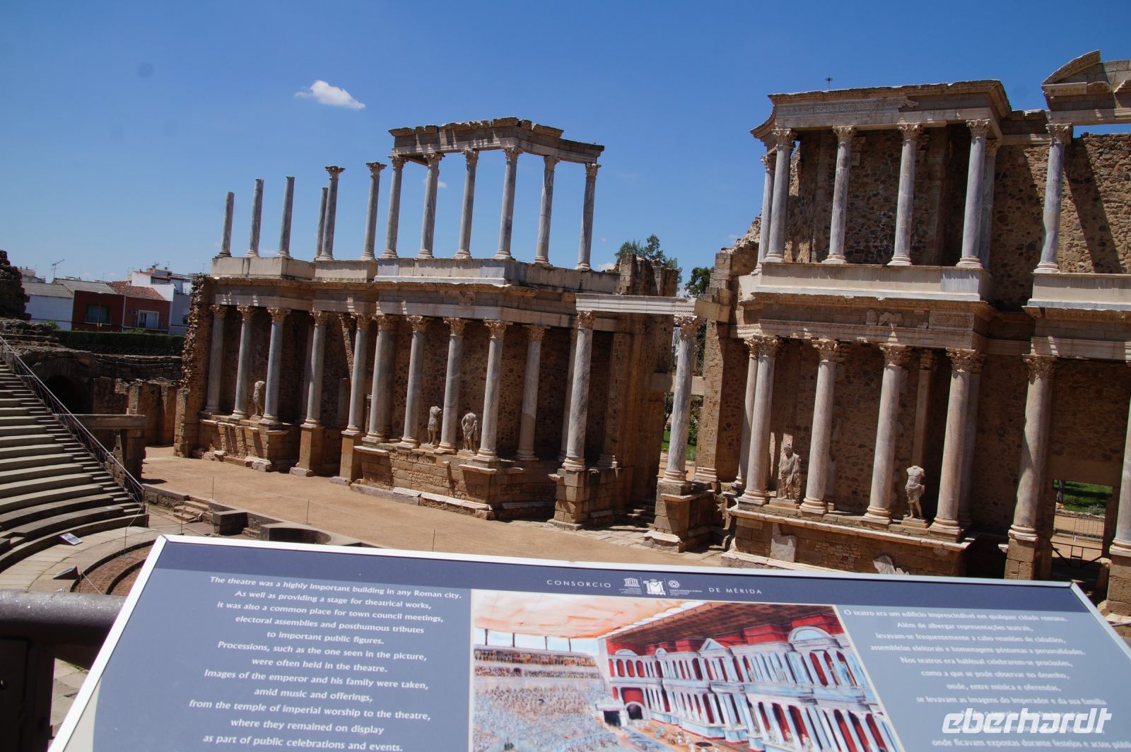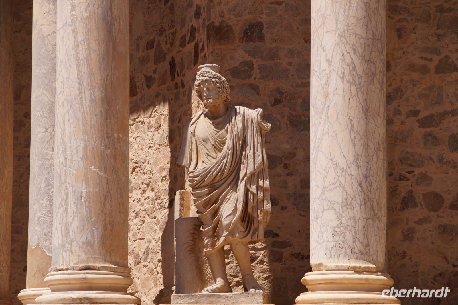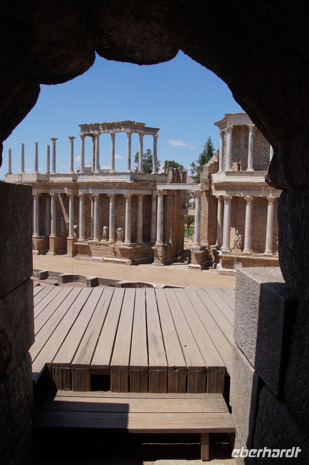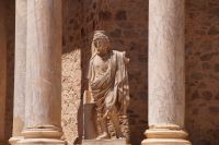 Höhepunkt der Stadtführung in Mérida waren aber sicher die römischen Monumentalbauten des Theaters und Amphitheaters von Emerita Augusta. Diese lagen am historischen Stadtrand, gerade noch intramuros. Das Theater war vom römischen Feldherrn Agrippa, Augustus‘ wichtigster General, Schwiegersohn und designierter Nachfolger finanziert worden.