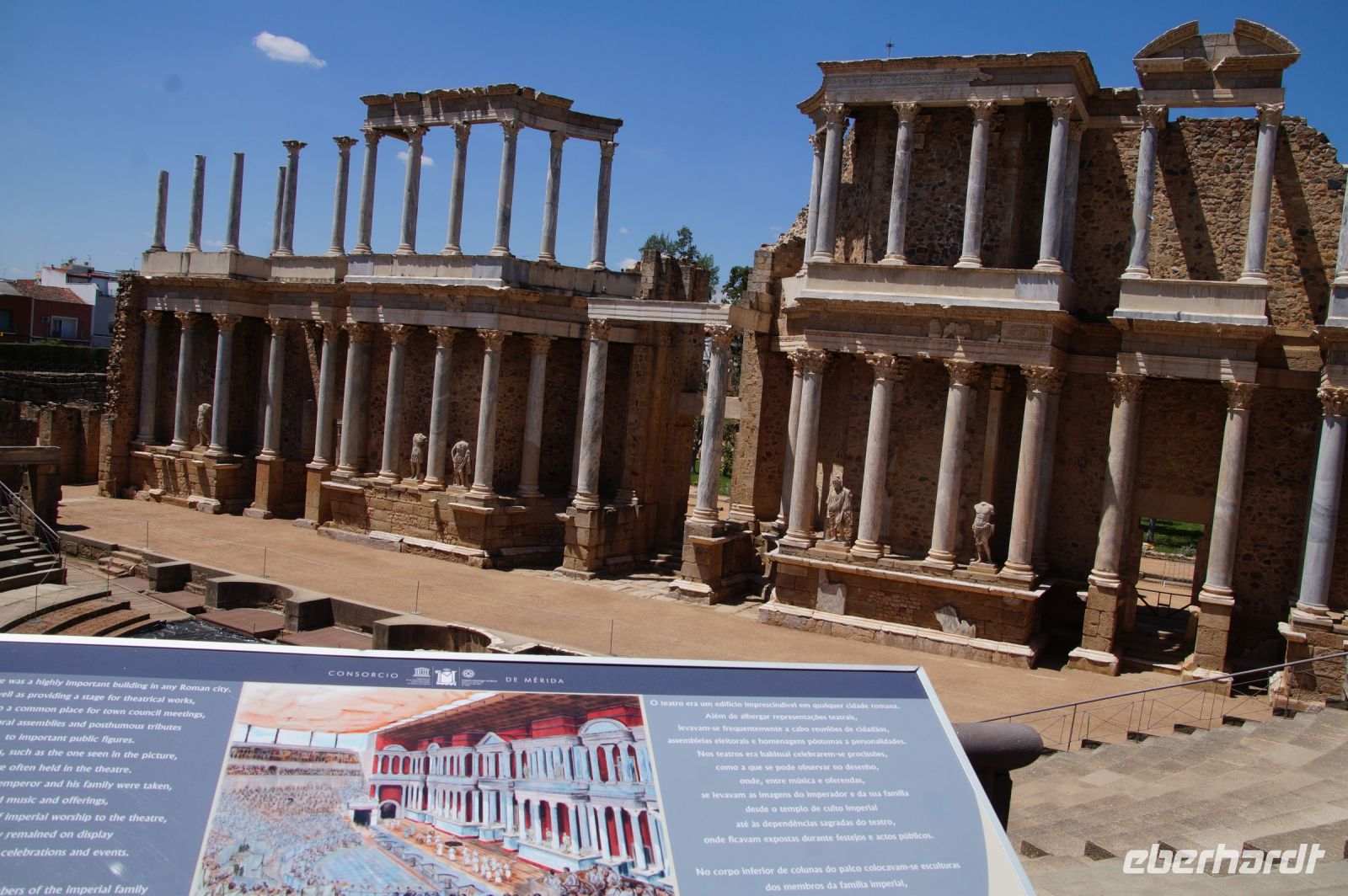 Endlich erreichten wir Mérida, als Emerita Augusta eine Veteranenkolonie für Soldaten des Kaisers Augustus und Hauptstadt der römischen Provinz Lusitanien (diese umfasste Süd- und Zentralportugal sowie die spanische Extremadura, weswegen "lusitanisch" oder "luso-" gerne auch als Synonym für "portugiesisch" verwendet wird. Mérida ist im Übrigen die Hauptstadt der Autonomen Region Extremadura, die in zwei Provinzen - Badajoz und Cáceres - eingeteilt ist. Mérida ist somit eine von zwei Autonomie-Hauptstädten in Spanien, die nicht gleichzeitig auch Provinzhauptstadt ist.