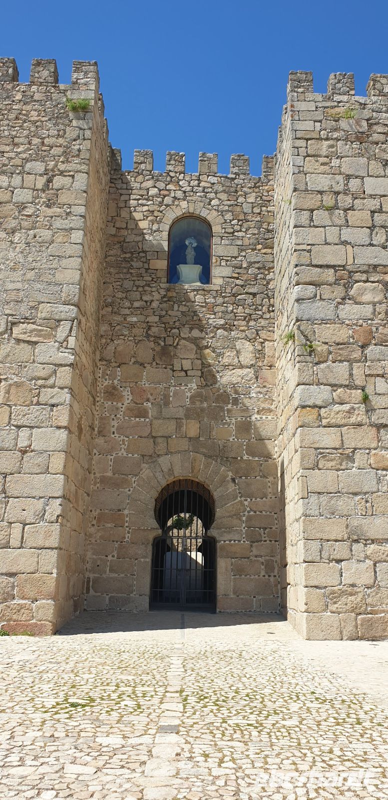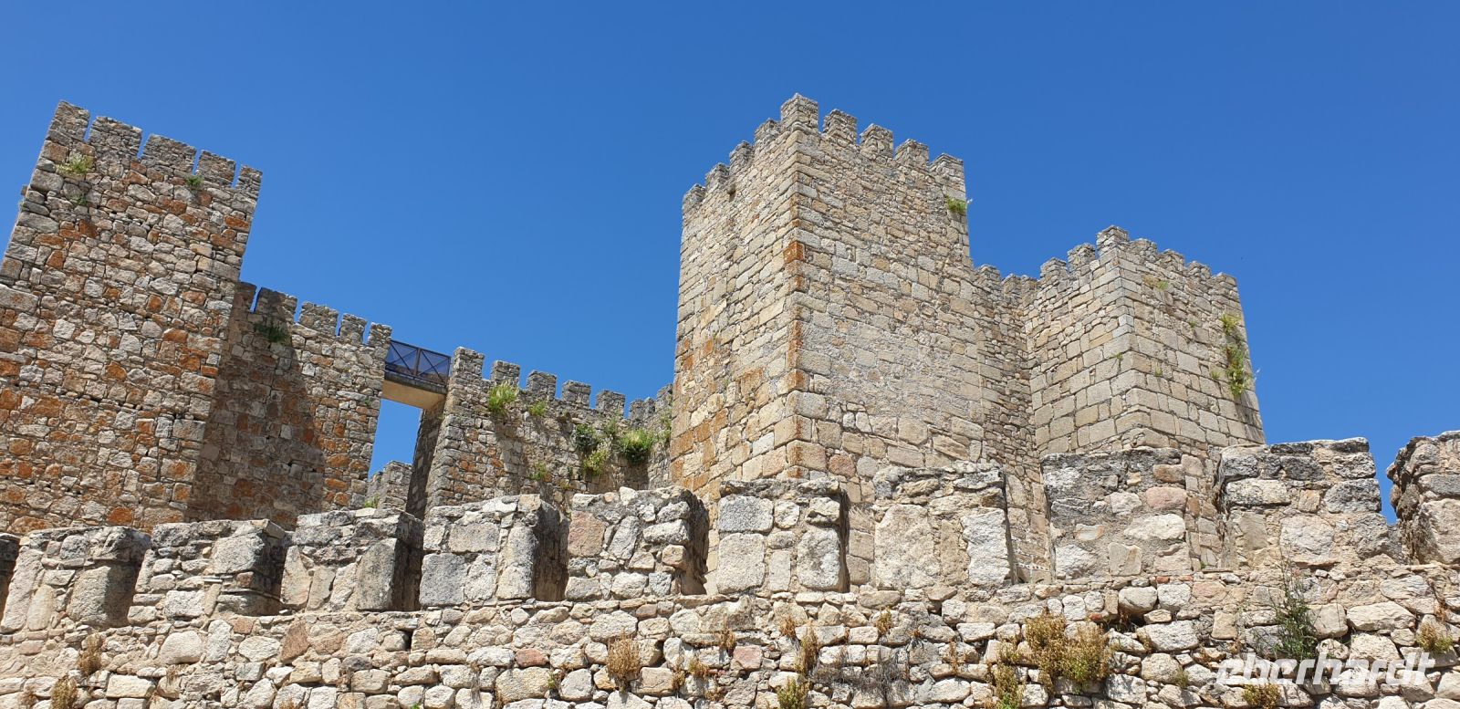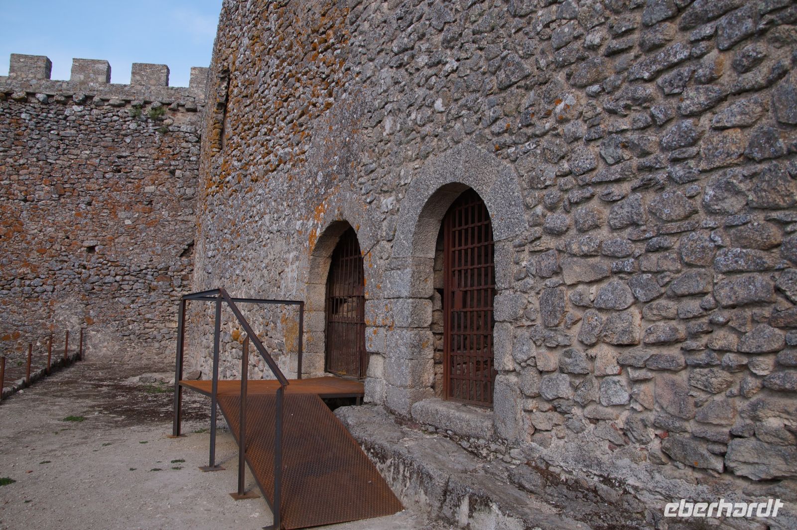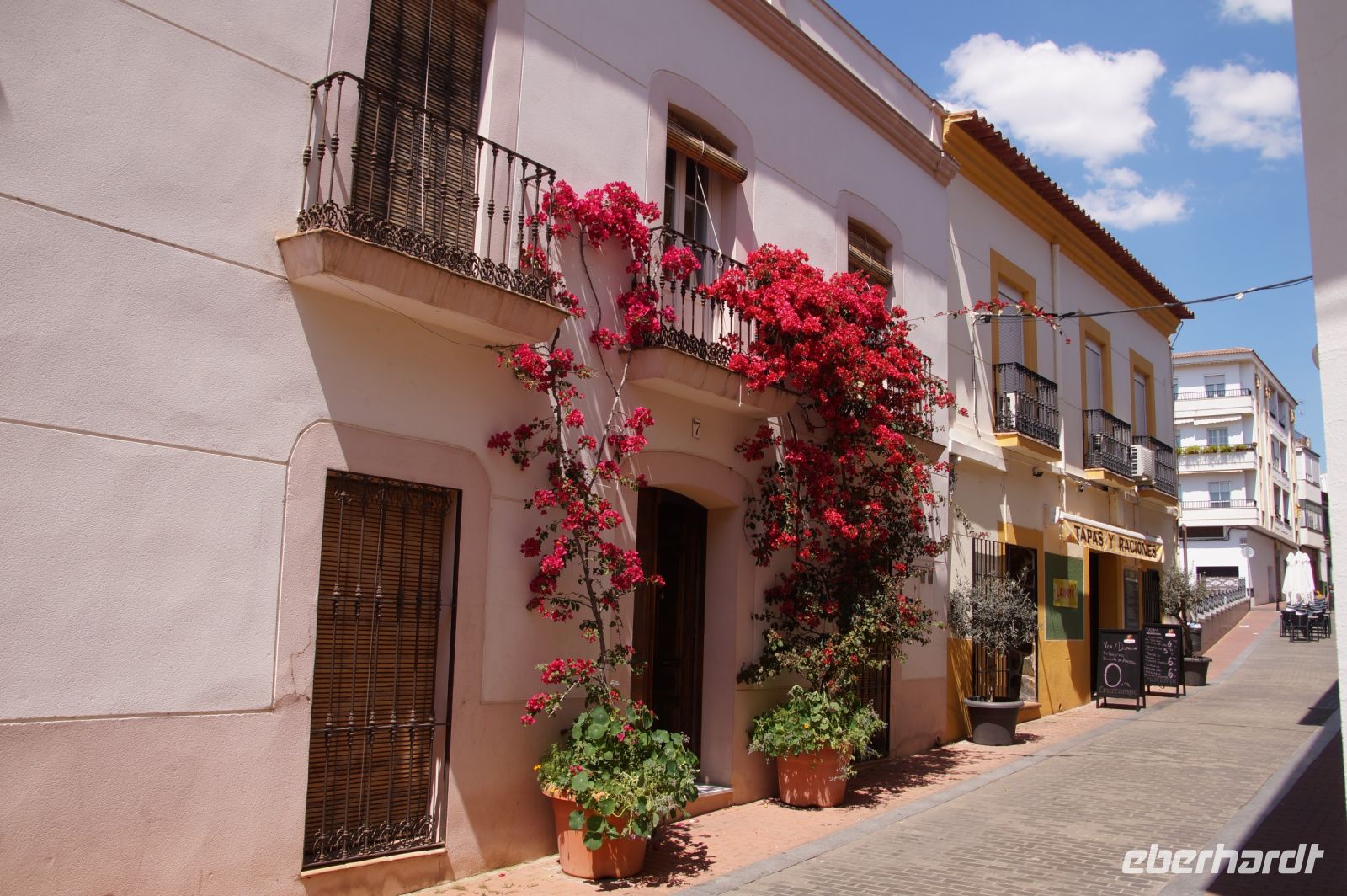 Im Anschluss an die Schinkenverkostung wollten wir noch hoch zur Burg und Santiago fuhr uns auch dorthin, bis... ja bis wir an eine Stelle kamen, an der er sich auch nicht mehr traute, um die Ecke zu fahren. Hier stiegen wir dann aus und stiegen zur Burg hoch, während Santiago mit den Kaffeeliebhabern kaltschnäuzig direkt vorm Rathaus auf der Plaza Mayor im Parkverbot parkte (er war aber nicht allein). In der urigen kleinen spanischen Bar gegenüber bekamen unsere Leute einen Kaffee und Santiago eine Flasche Wein geschenkt, dafür dass er der Bar unverhofft neue Kundschaft zugeführt hatte. Wir Übrigen genossen noch die Aussicht von der Burg, die Carlos uns als Balcón de la Extremadura empfohlen hatte. Die anderen trafen wir dann etwas später in ihrer Bar an und es ging zurück nach Mérida.
