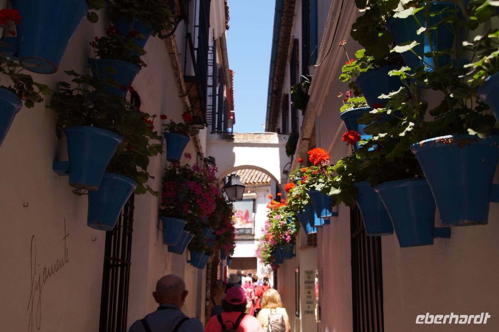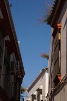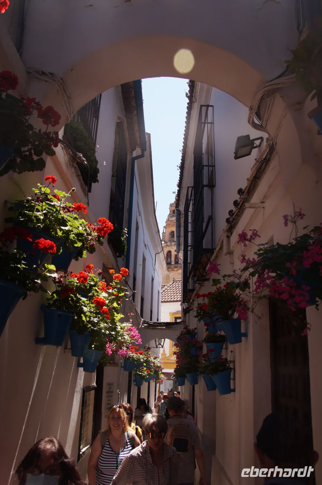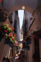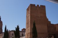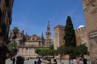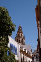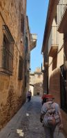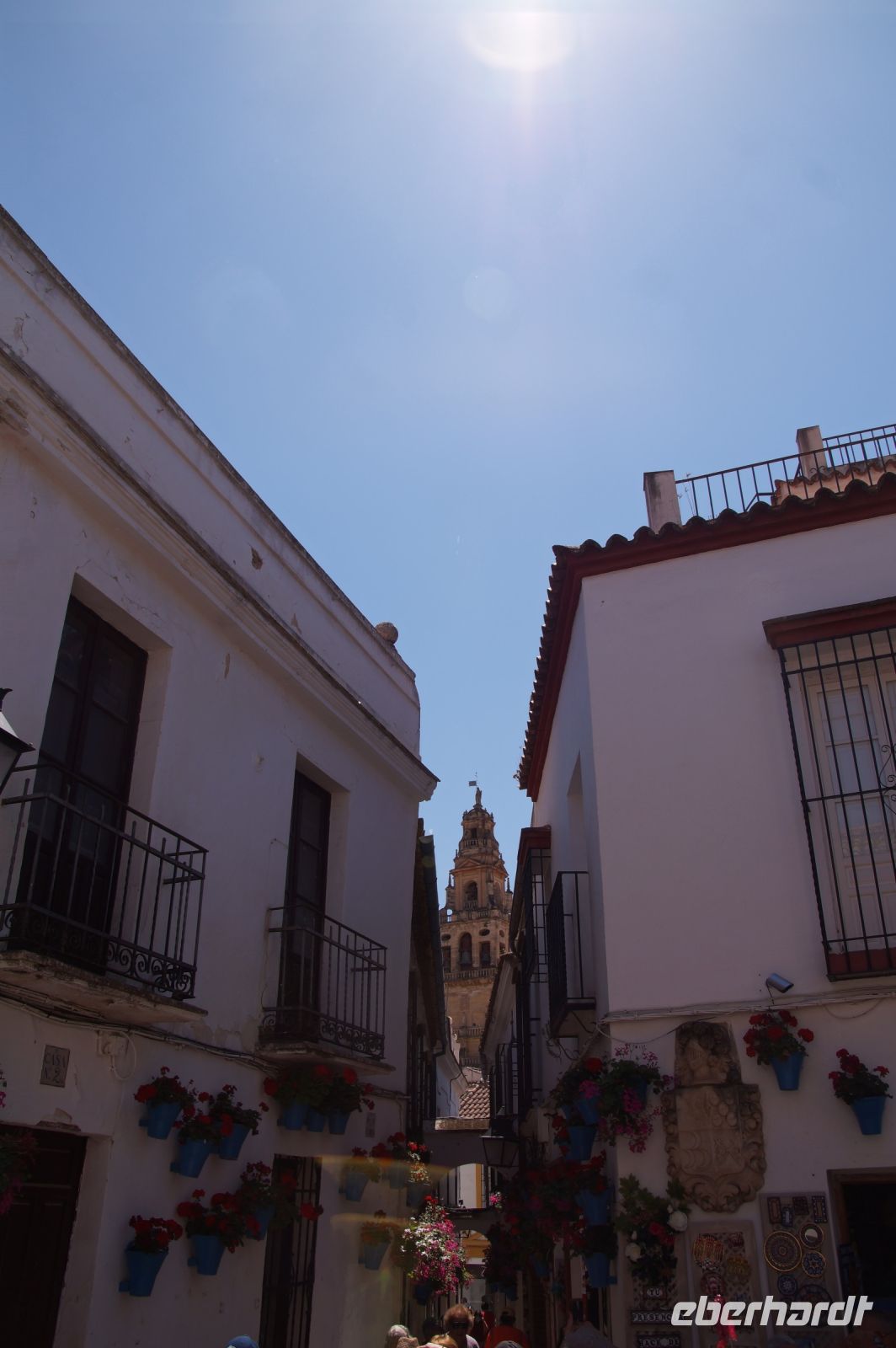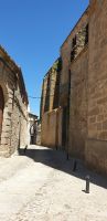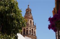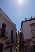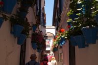 Anschließend trafen wir uns mit Inés, die uns durch die Judería führte. Wir hatten Glück, dank ihr verzögerte die historische Synagoge ihre Schließung, so dass wir den kleinen Gebetsraum noch besuchen konnten, nach uns wurden die Türen zum Leidwesen einer französischen Gruppe geschlossen. Inés führte uns durch einen kleinen Markt und an der Blumengasse vorbei, aus der man einen schönen Ausblick auf den Turm der Kathedrale hat.