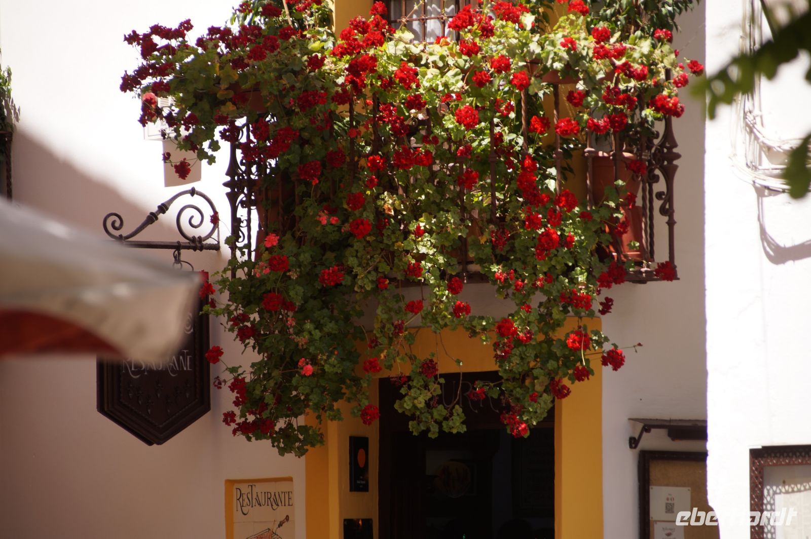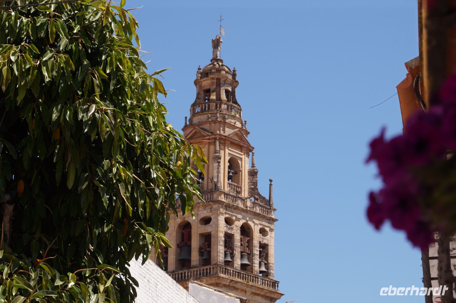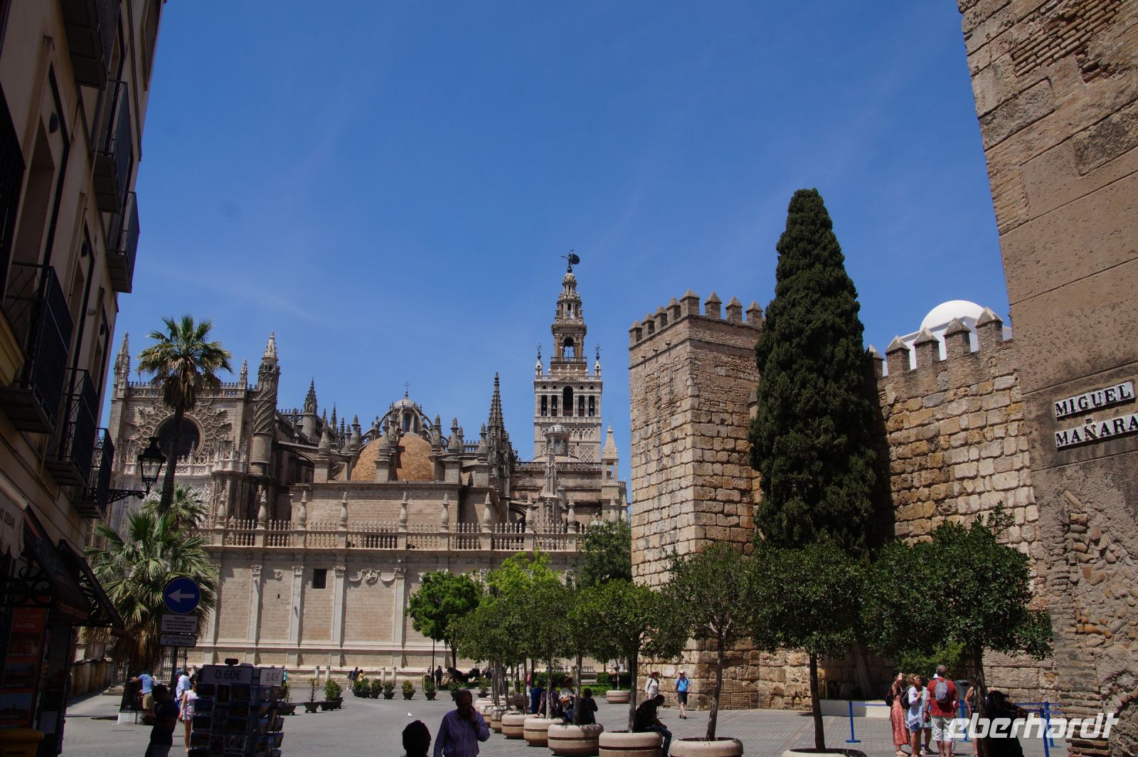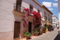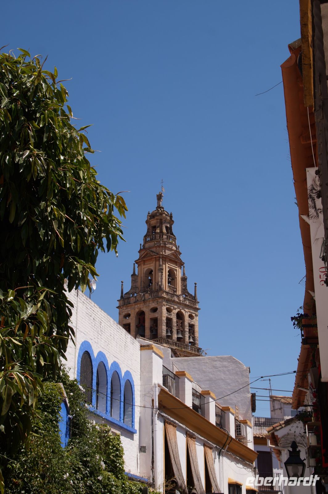 Anschließend trafen wir uns mit Inés, die uns durch die Judería führte. Wir hatten Glück, dank ihr verzögerte die historische Synagoge ihre Schließung, so dass wir den kleinen Gebetsraum noch besuchen konnten, nach uns wurden die Türen zum Leidwesen einer französischen Gruppe geschlossen. Inés führte uns durch einen kleinen Markt und an der Blumengasse vorbei, aus der man einen schönen Ausblick auf den Turm der Kathedrale hat.