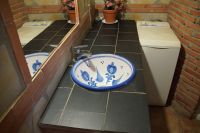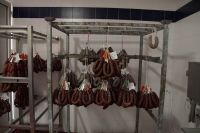 Im Secadero erklärte uns Carlos, dass sie die Schinken zunächst ordentlich massierten, um das Blut aus ihnen herauszupressen. Dann würden sie in Salz gelagert (auch das könnten wir sehen). Speziell ihr Betrieb würde nach der Einlagerung des Schinkens in Salz noch ein zweites Mal die Schinken massieren, um eventuelle Blutreste auch sicher aus ihnen herausgepresst zu haben. Die erste Massage würde in allen Betrieben, die sich der Schinkenproduktion verschrieben hätten, gemacht werden, die zweite nur in manchen.
