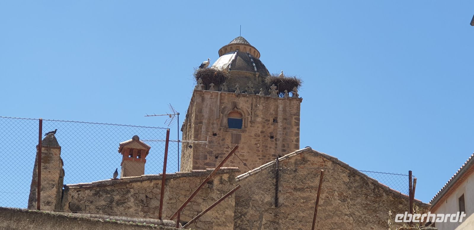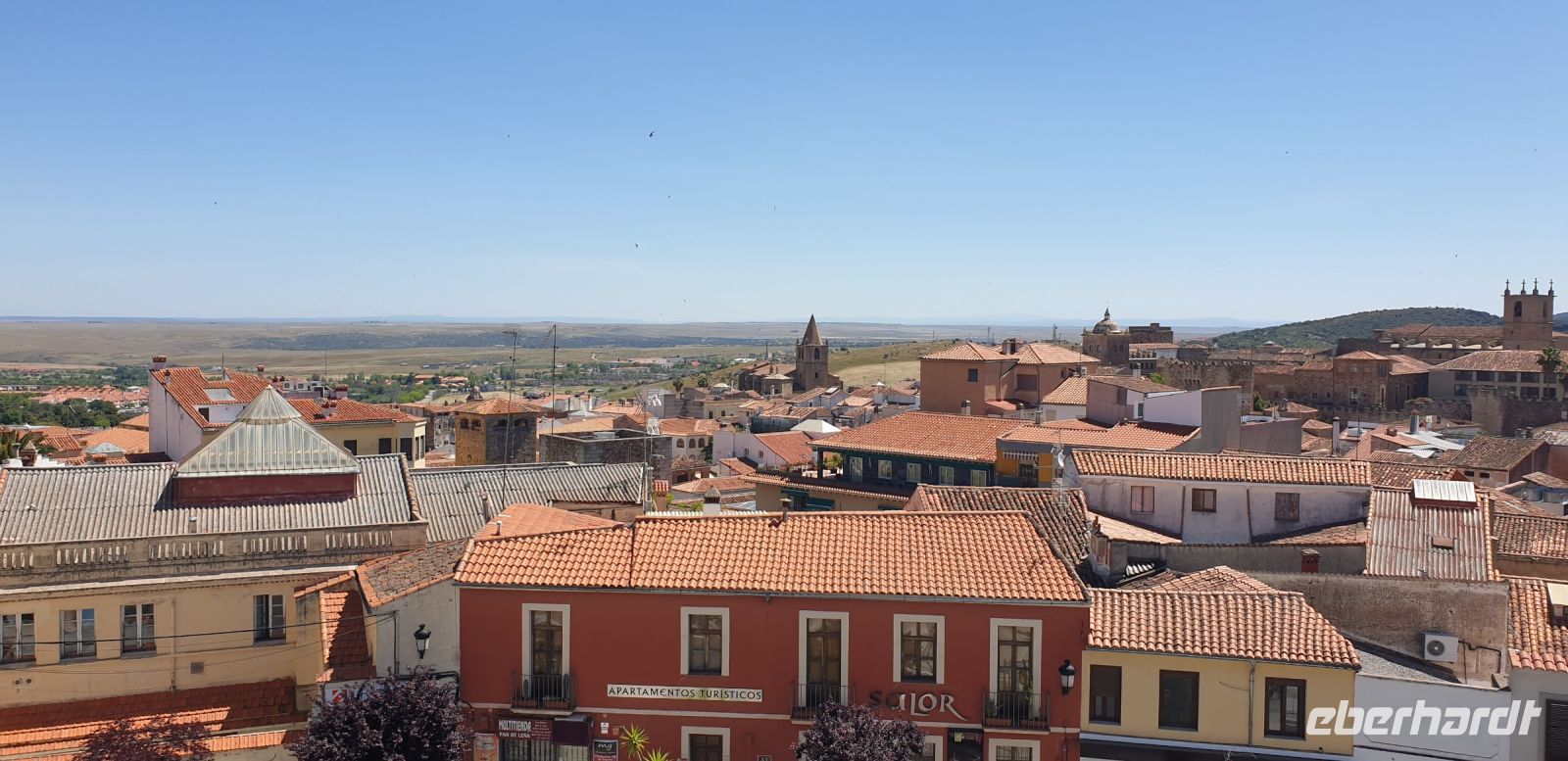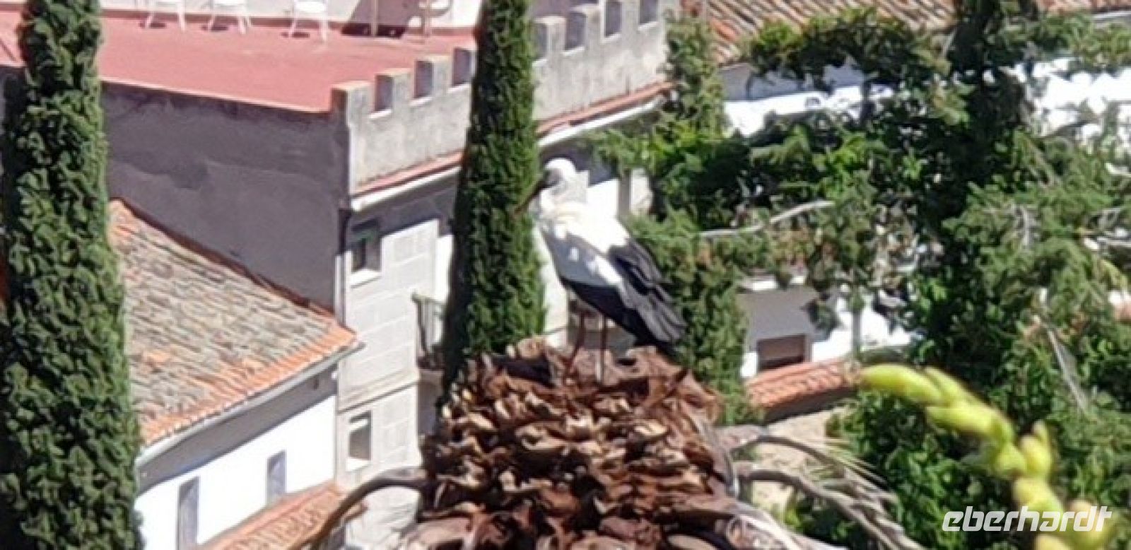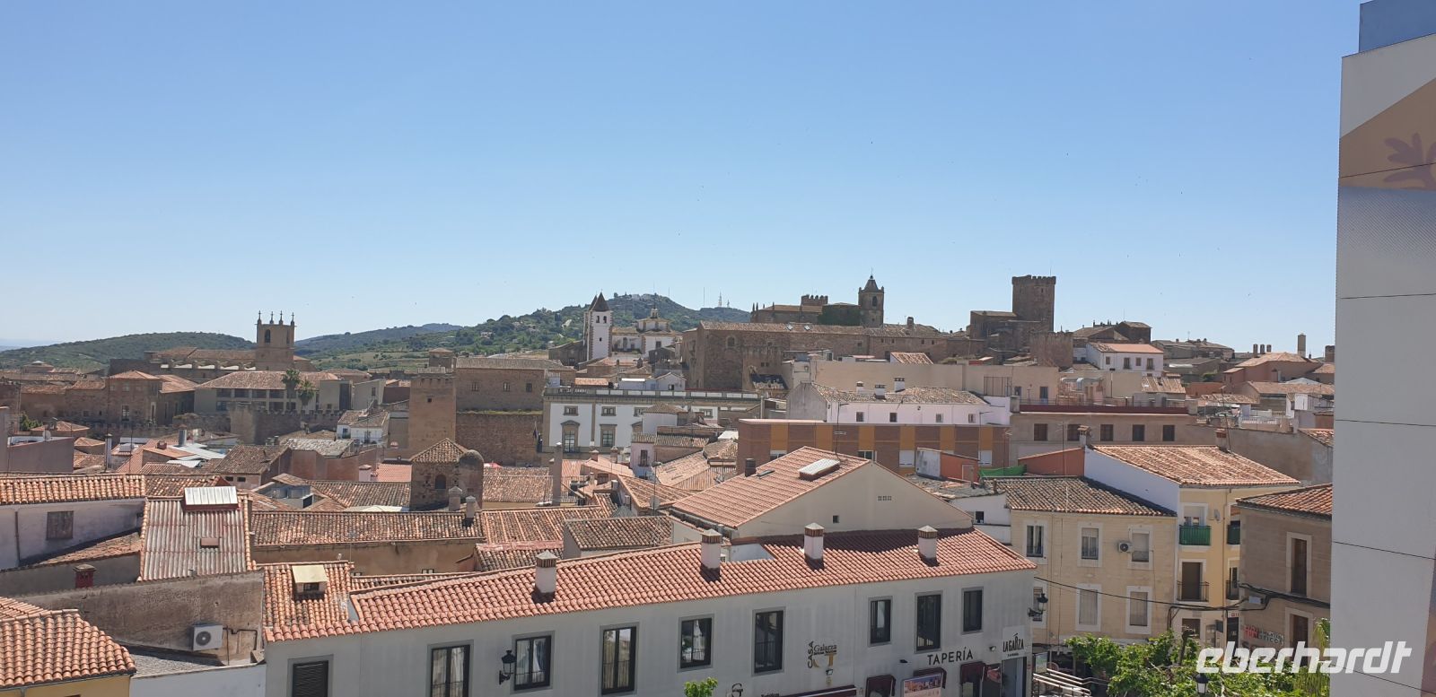 Nach der Degustation verabschiedeten wir uns und fuhren nun weiter in die Provinzhauptstadt Cáceres. Hier verabredeten wir uns mit Javier an einem Parkhaus, von dessen Dach er uns das Panorama seiner Mutterstadt zeigen wollte. Hier würden wir, später, Santi auch wiedertreffen.
