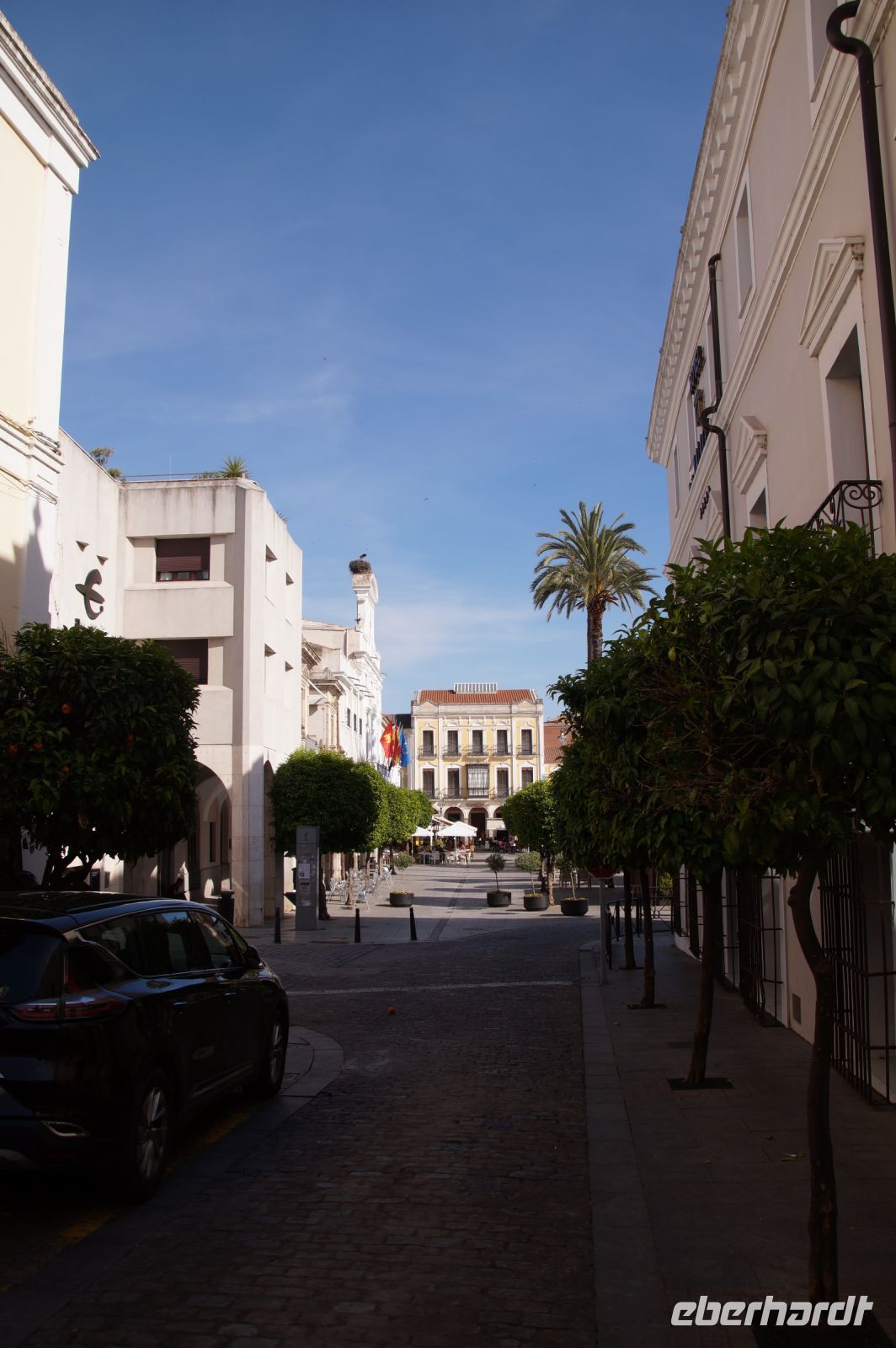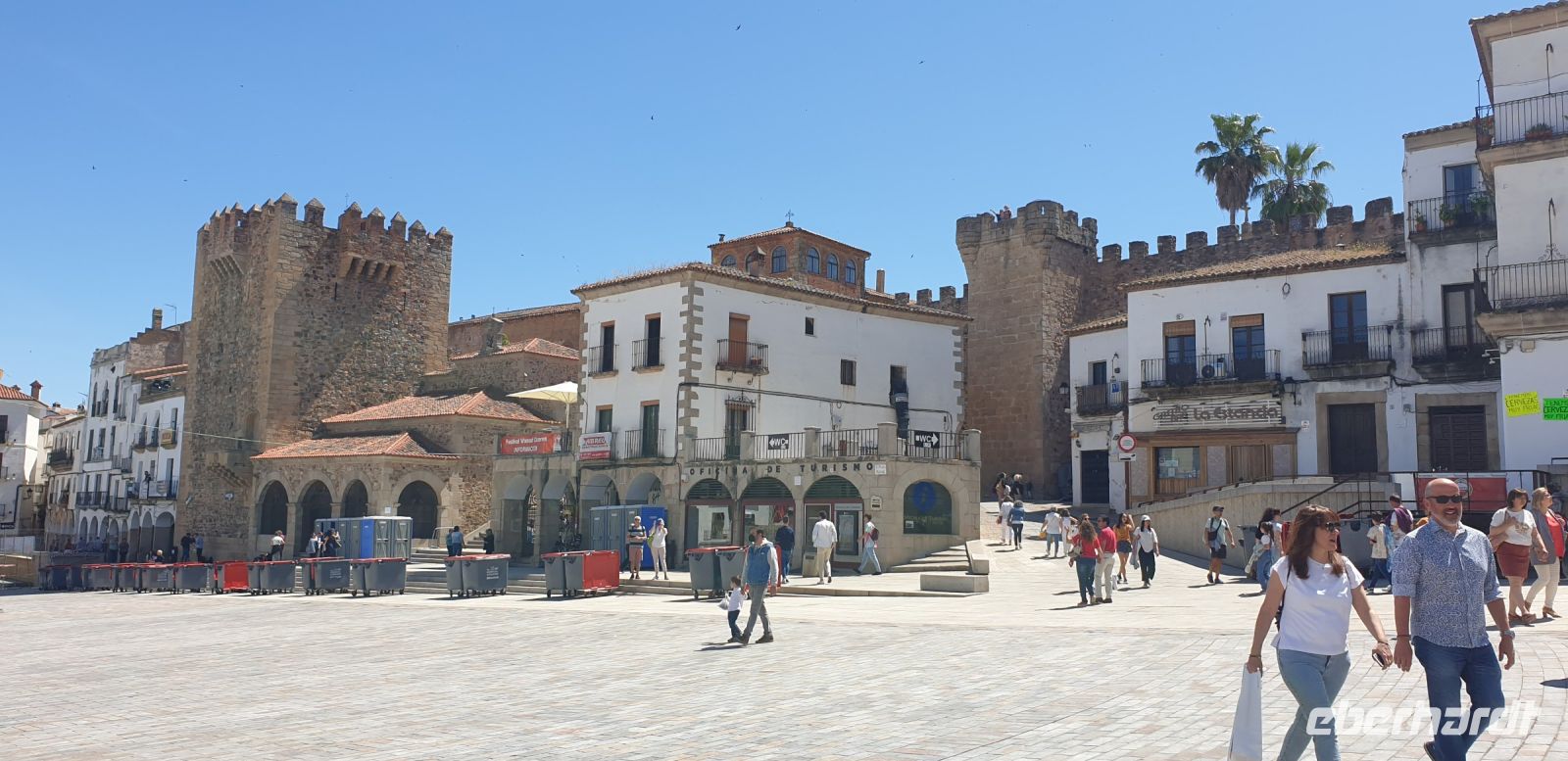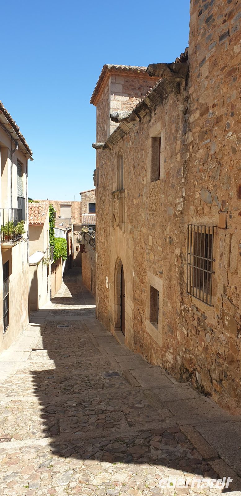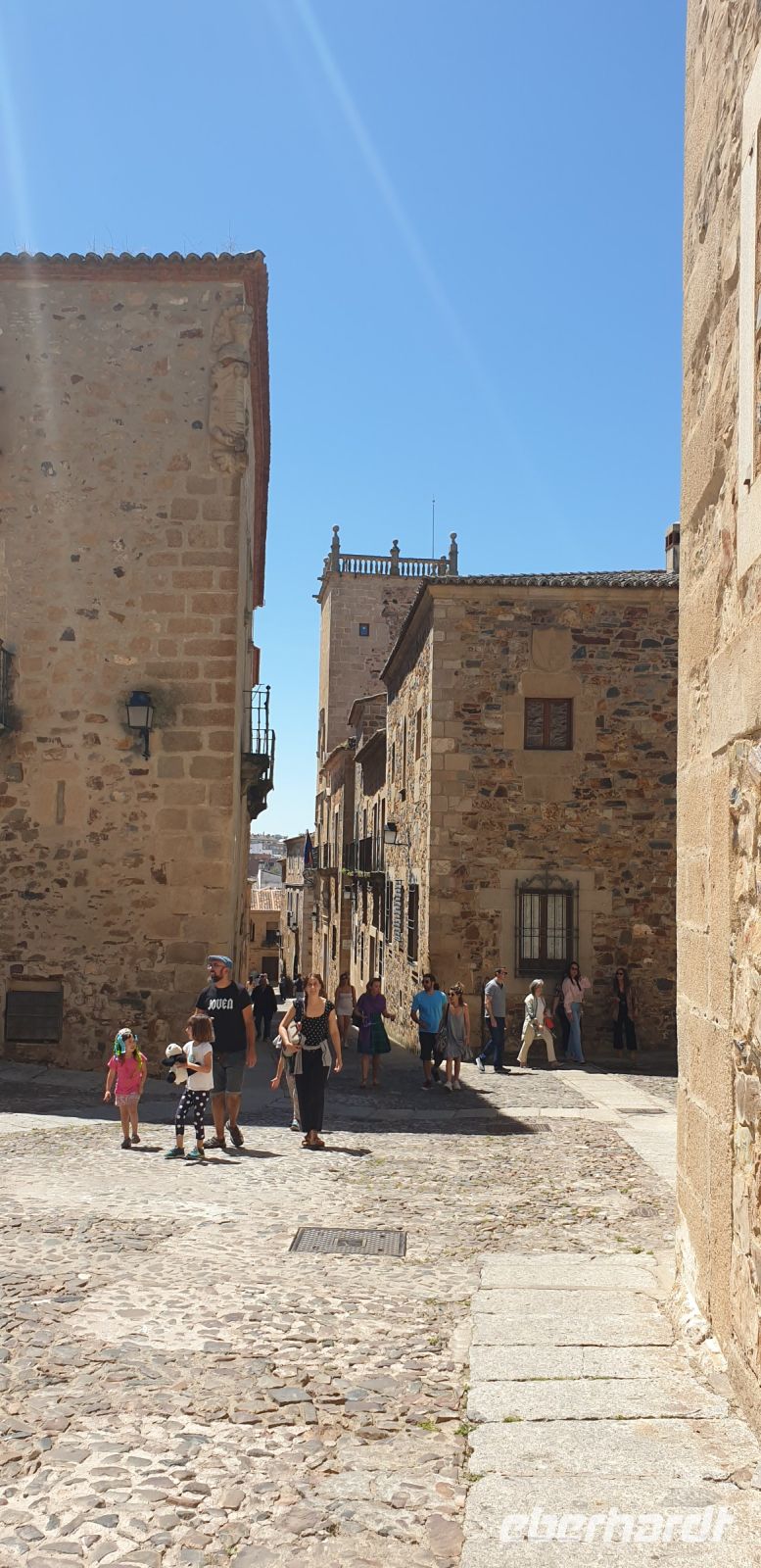 Nach der Degustation verabschiedeten wir uns und fuhren nun weiter in die Provinzhauptstadt Cáceres. Hier verabredeten wir uns mit Javier an einem Parkhaus, von dessen Dach er uns das Panorama seiner Mutterstadt zeigen wollte. Hier würden wir, später, Santi auch wiedertreffen.