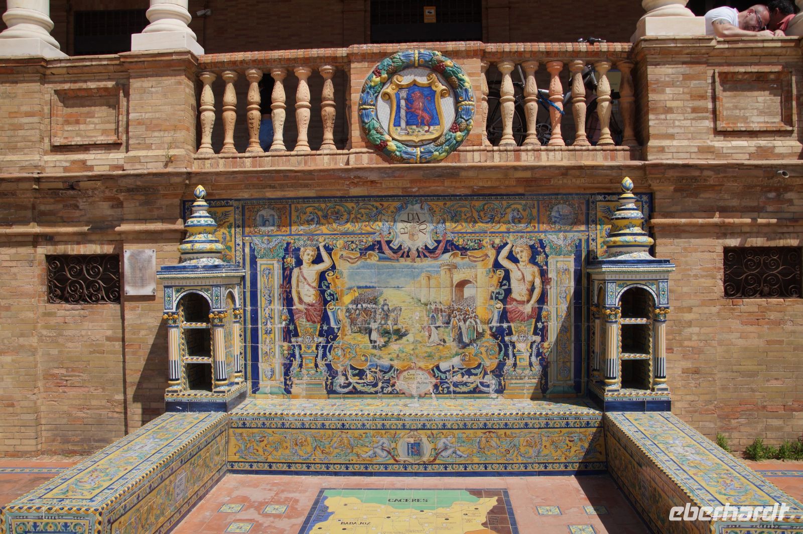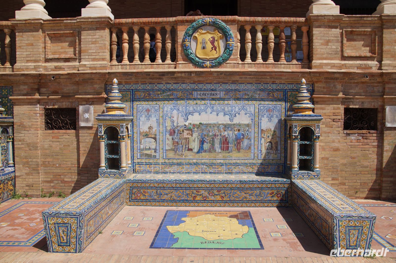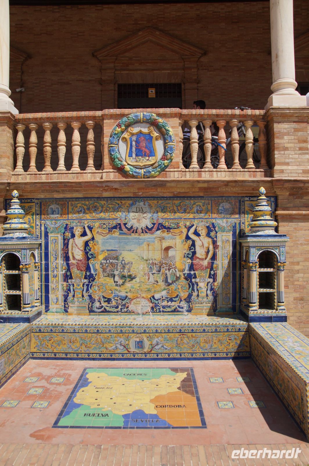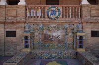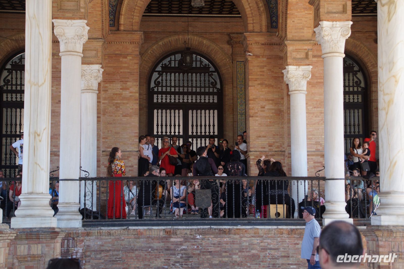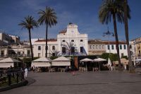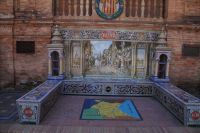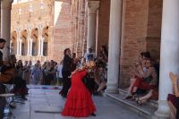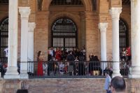 Hier ließen wir uns zunächst an der Plaza de España absetzen, überquerten diese individuell und trafen uns zwischen Plaza de España und Parque de María Luisa. Von dort aus liefen wird gemeinsam in die Altstadt, um zunächst dem Kaffeedurst oder gar schon dem ersten Hüngerchen mit den geeigneten Maßnahmen zu begegnen. Dann trafen wir uns gegenüber der Real Maestranza, der Stierkampfare... der Plaza de Toros von Sevilla mit unserem Bus und auch unserer Stadtführerin mit dem zu Sevilla seit Bizet so gut passenden Namen Carmen.