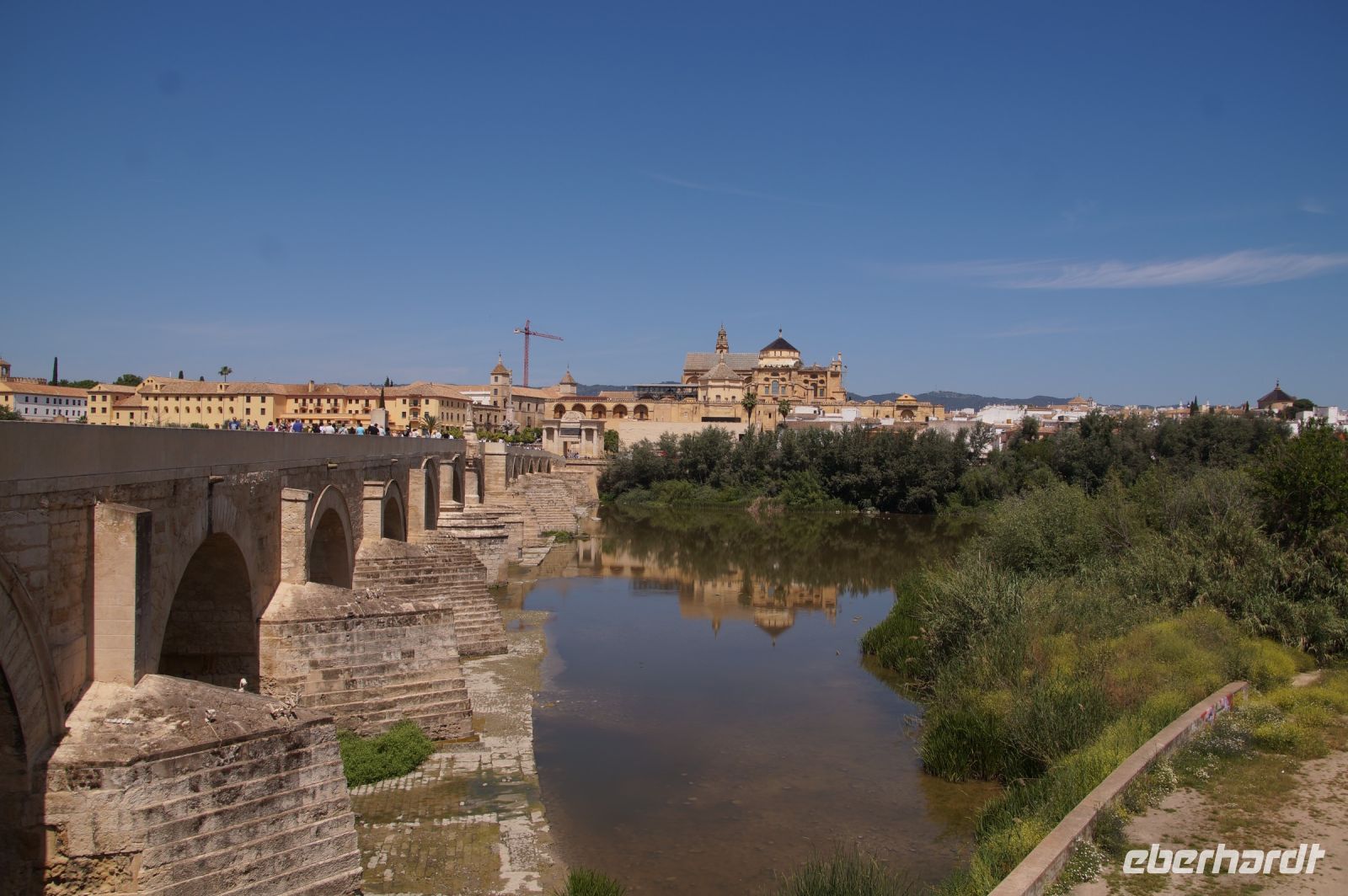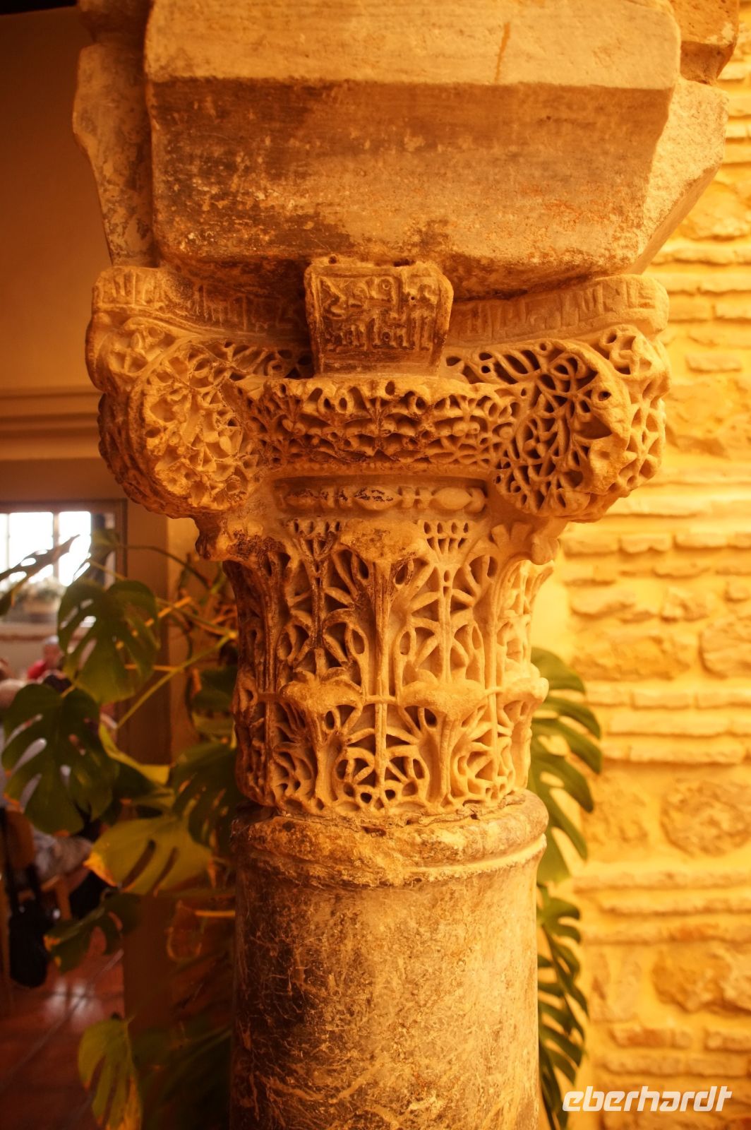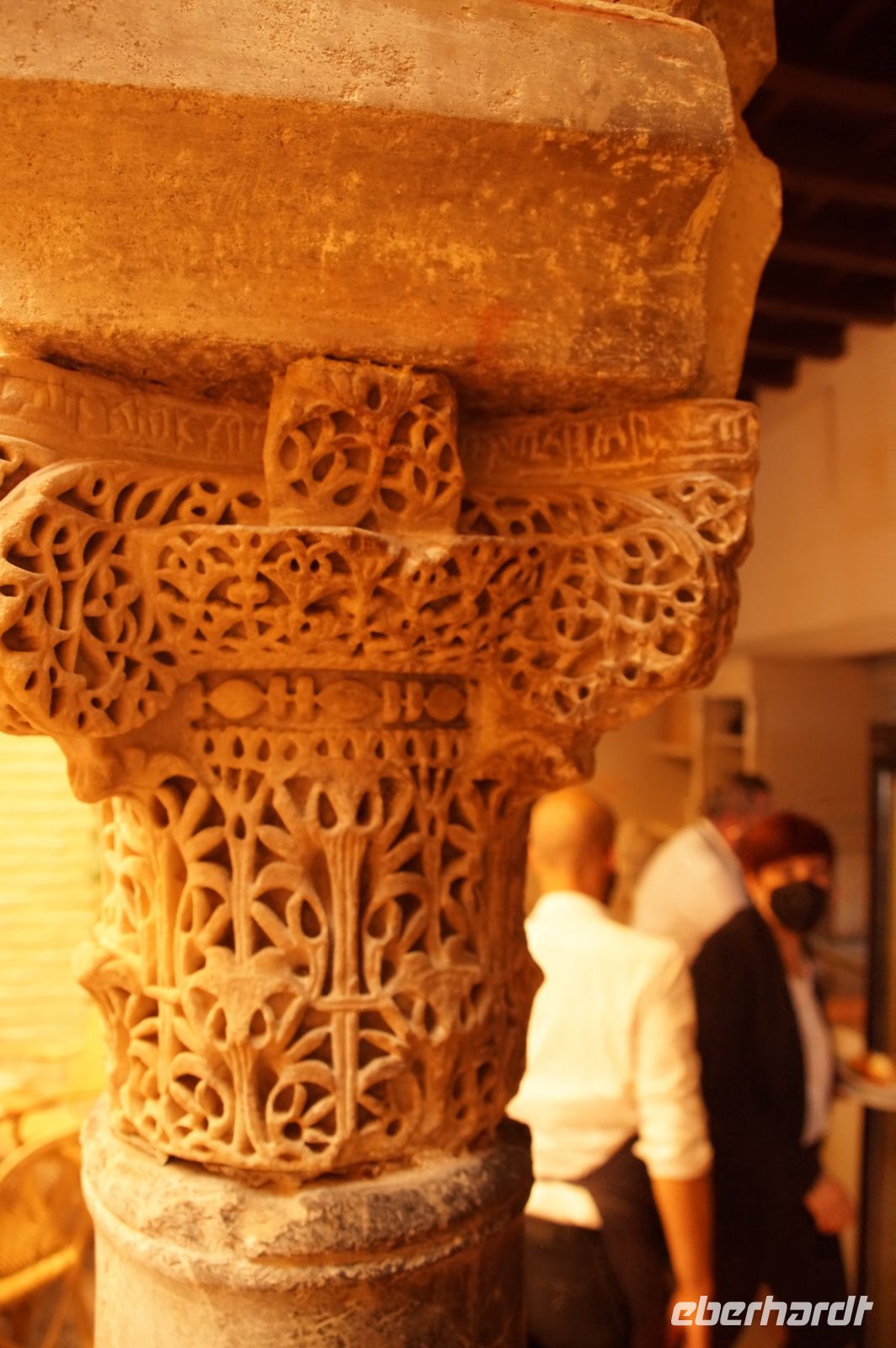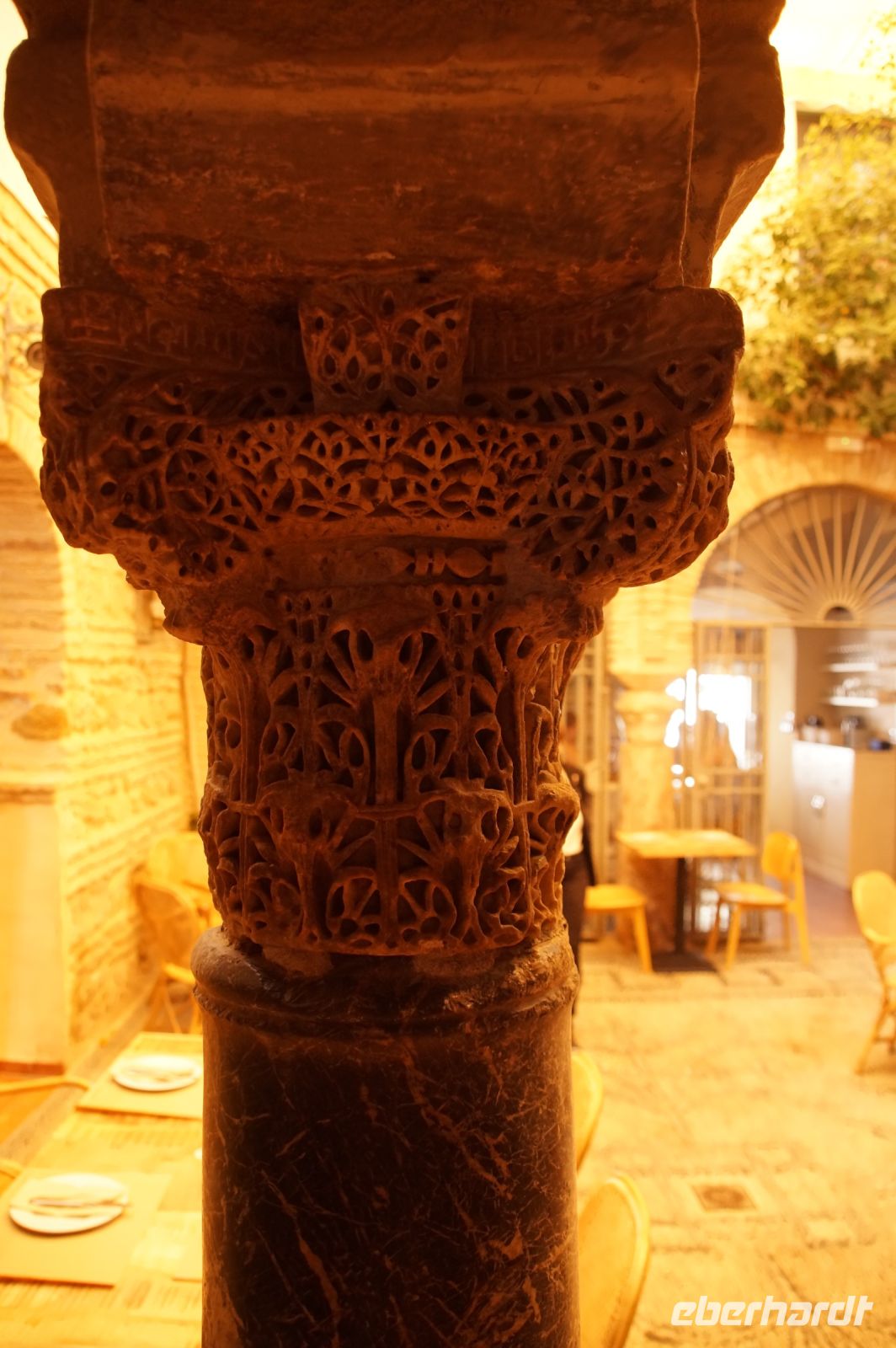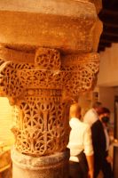 Santiago brachte uns auf die Südseite der Stadt und ließ uns in der Nähe der Torre de la Calahorra (qala‘at hurra = freistehende Festung) aussteigen. An der Torre de Calahorra wurde frisch vom Fass Freibier ausgeschenkt, das am Vorabend von der Fiesta del Flamenco übrig geblieben war. Einige Herren der Gruppe ließen sich das nicht zwei Mal sagen. Wir überquerten nun den Guadalquivir über die römische Brücke und liefen zunächst zum Mittagessen. Wir wurden sehr freundlich empfangen und die Restaurantmanagerin erklärte mir, dass die Säulen im Restaurant aus der kalifalen Zeit stammten und zu den wenigen erhaltenen Exemplaren gehörten, die mit Inschriften in den Kapitellen versehen seien.