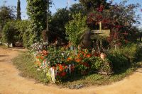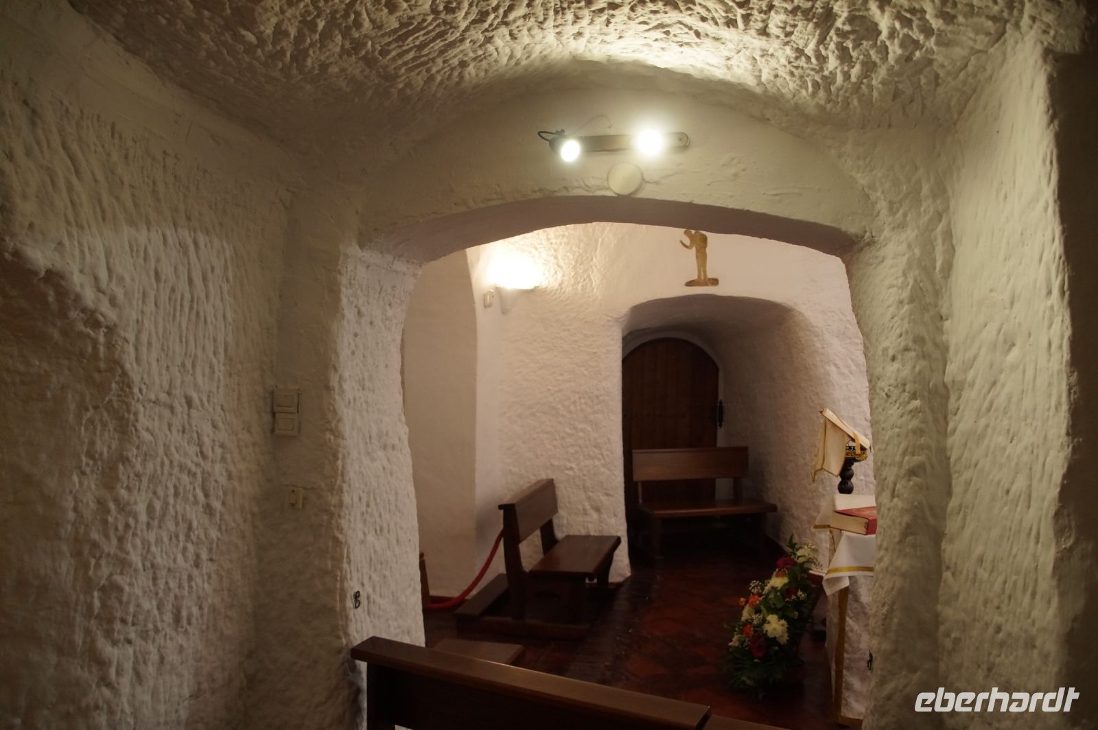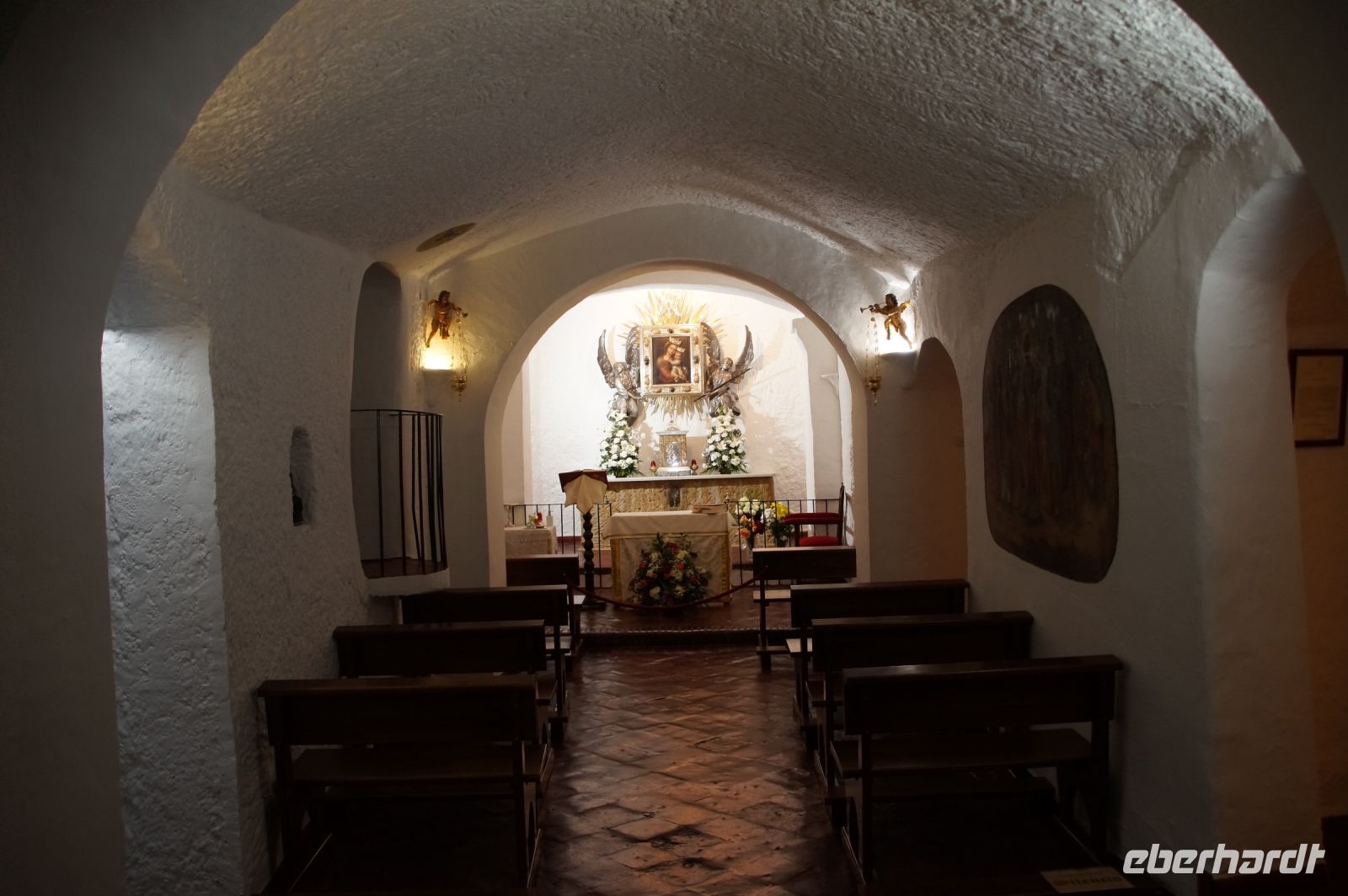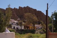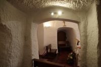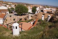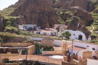 Vor der Kathedrale von Guadix unter der man Reste eines römischen Theaters sehen kann, stiegen wir in den trencito (Züglein), der uns ins Höhlenviertel brachte. Dort hatten wir die Gelegenheit über die Höhlen zu steigen. Ein älteres Ehepaar besserte seine Rente damit auf, dass es Touristen gegen eine unverbindliche Spende in seine Wohnung ließ (und Souvenirs und Getränke verkaufte) , als der Mann uns einlud, beseitigte seine Frau noch die Spuren der Nacht. Auch die Kirche hatte einen Höhlenteil und gegenüber dieser war die Höhlenwohnung des Paters Pedro Poveda, der die erste Schule im Höhlenviertel gegründet und eine Werkstatt mit Nähmaschinen in seiner Höhlenwohnung für die Frauen des Viertels eingerichtet hatte, zu Beginn des spanischen Bürgerkriegs aber ermordet wurde.