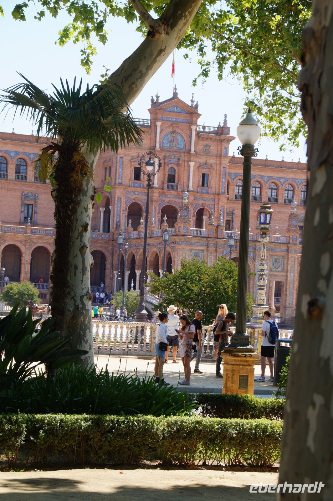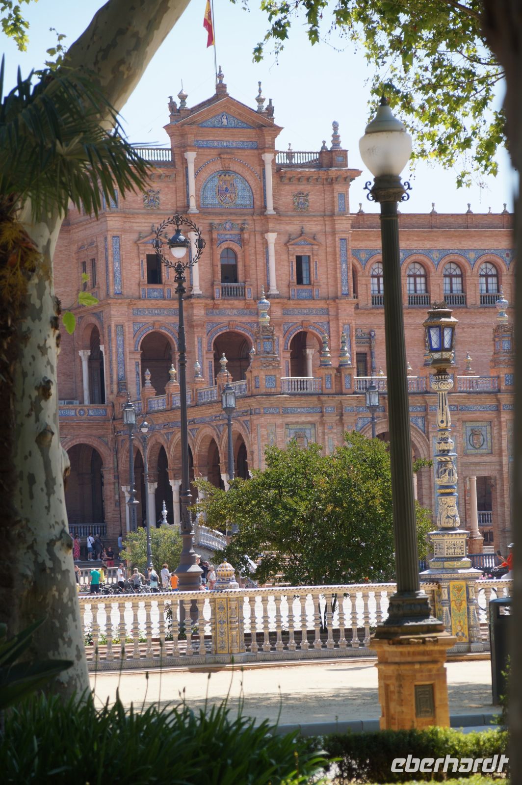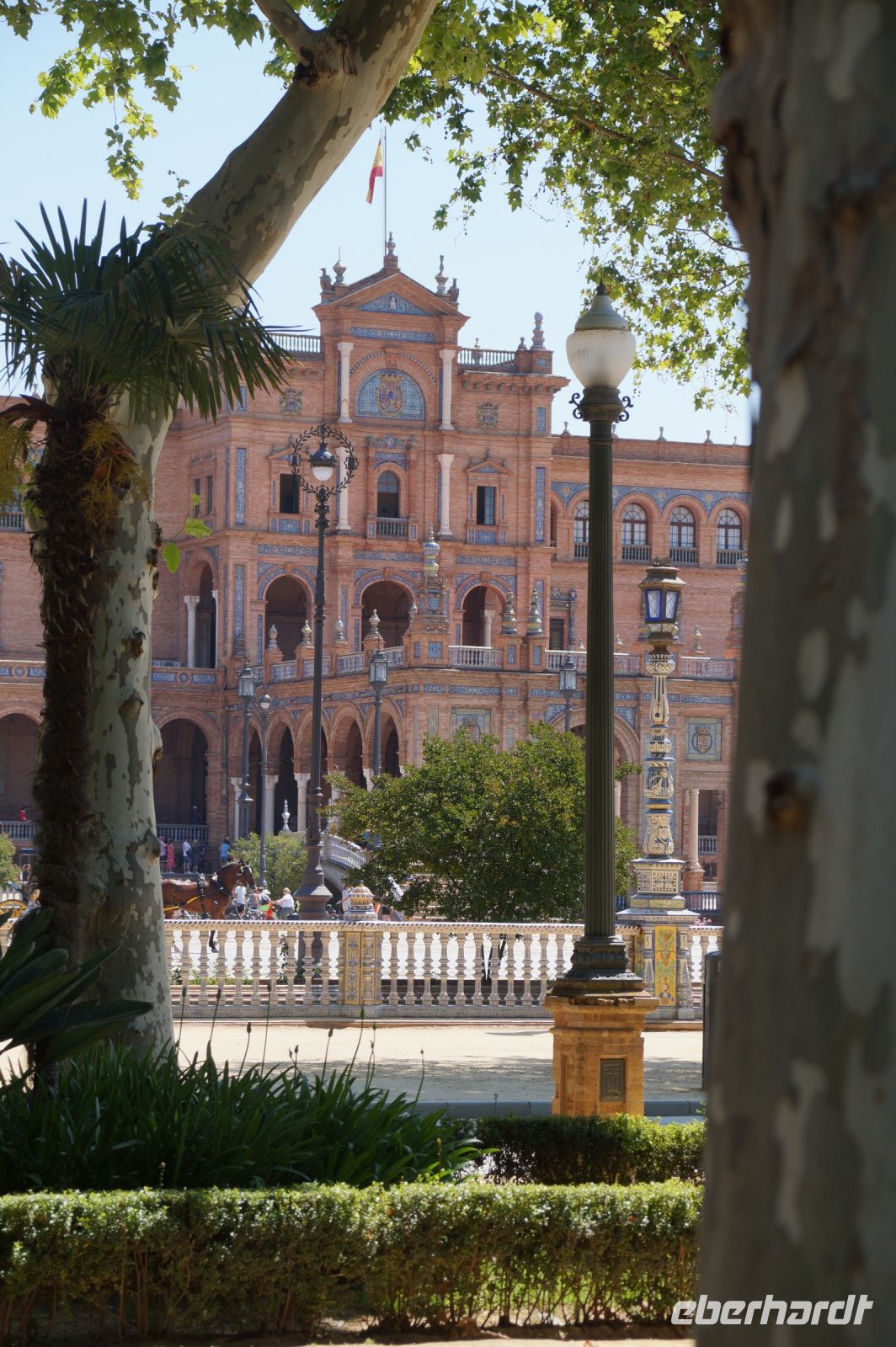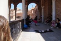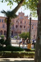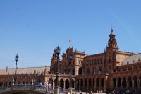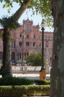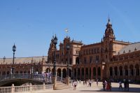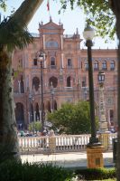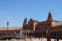 Zunächst machten wir eine kleine Rundfahrt durch das Gelände der Iberoamerika-Ausstellung von 1929, sagen einige der Pavillons von damals und ihre heutige Nutzung: Bibliothek, Grünflächenamt, Museum, Institut der Universität.