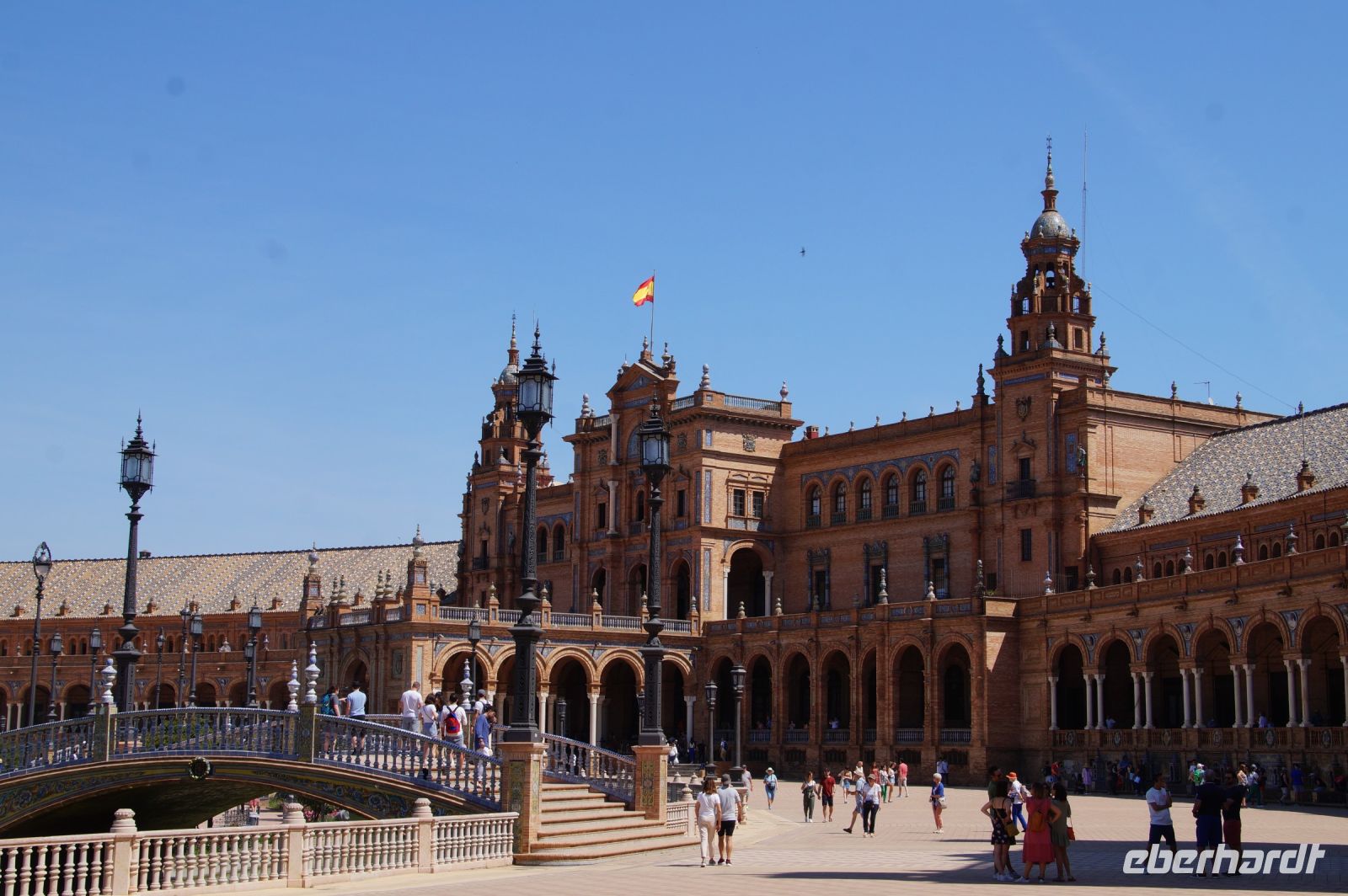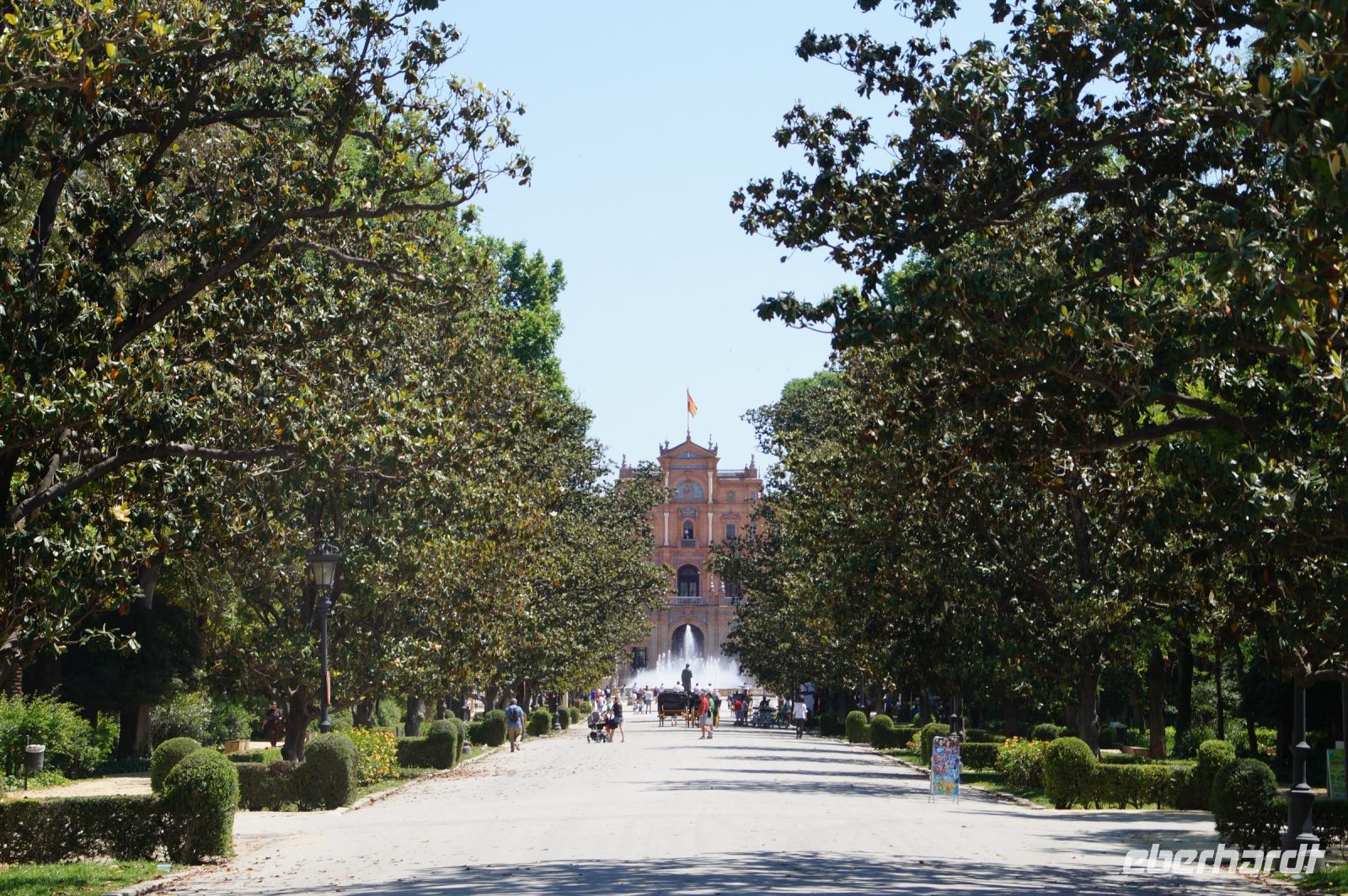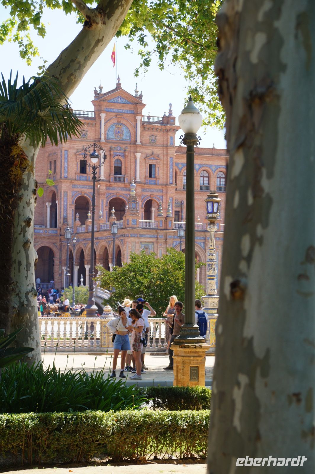 Zunächst machten wir eine kleine Rundfahrt durch das Gelände der Iberoamerika-Ausstellung von 1929, sagen einige der Pavillons von damals und ihre heutige Nutzung: Bibliothek, Grünflächenamt, Museum, Institut der Universität.