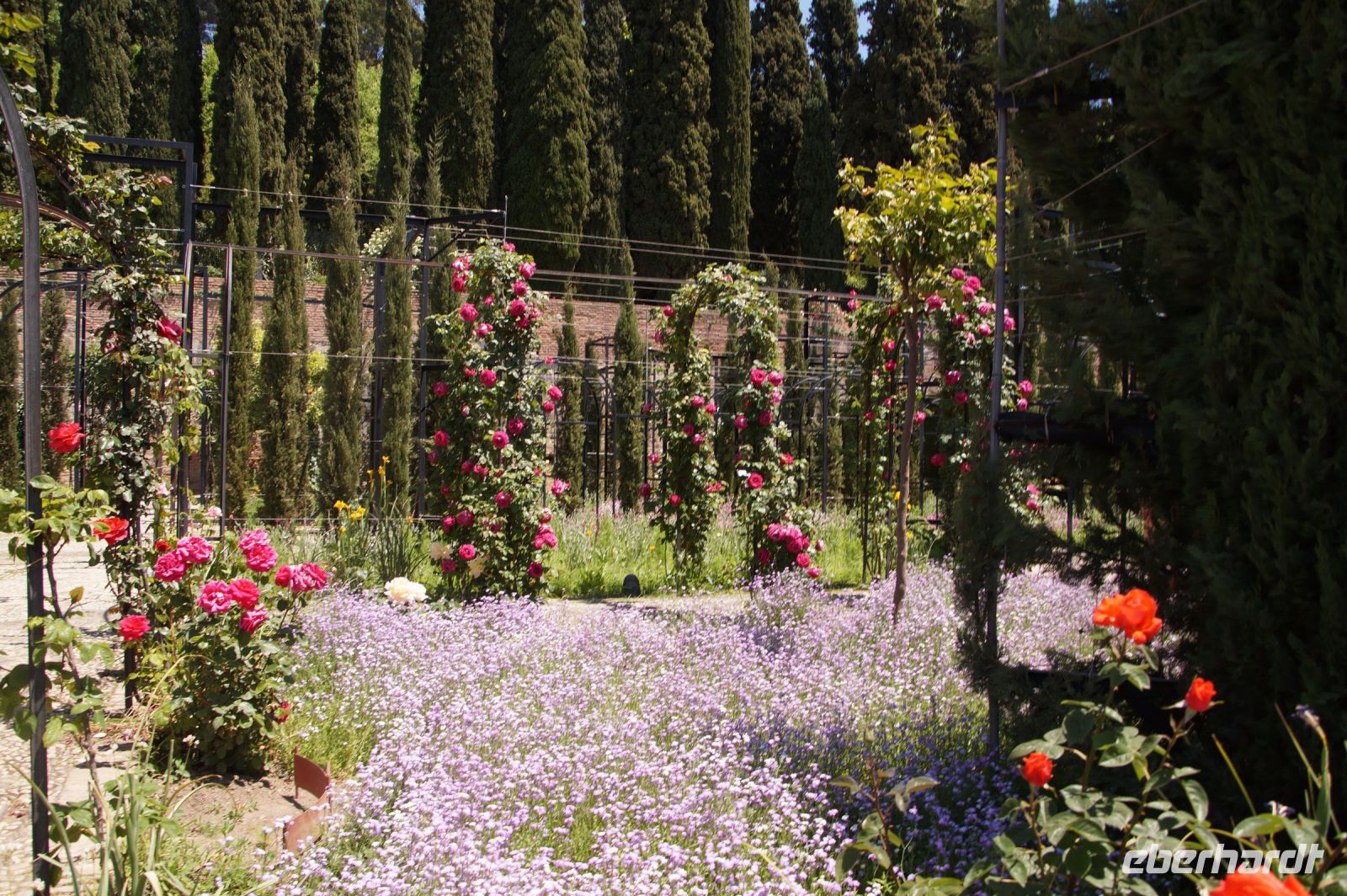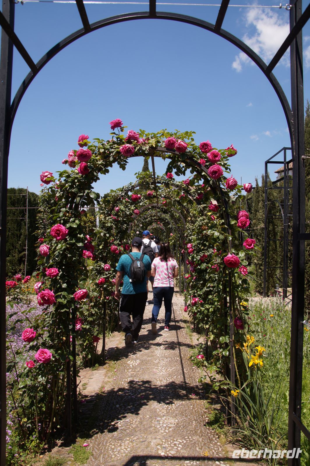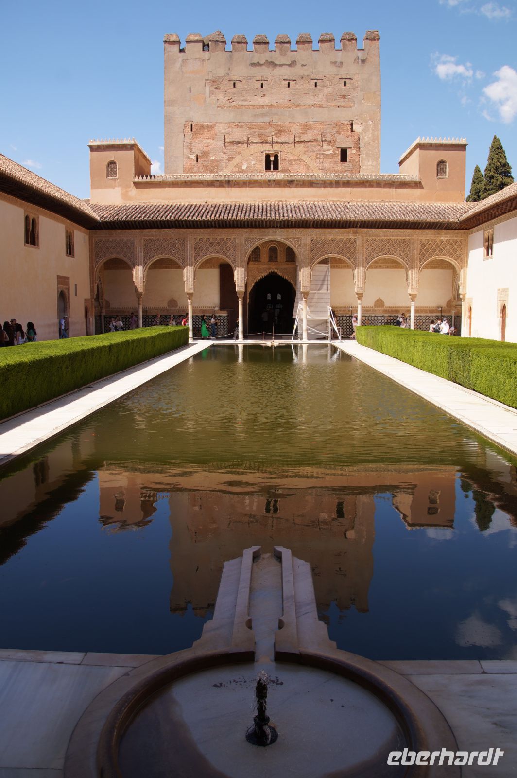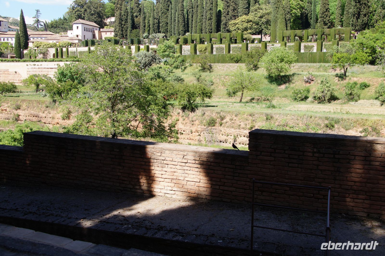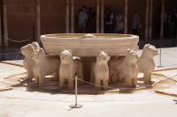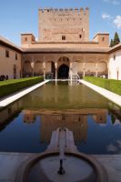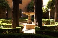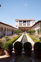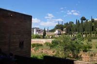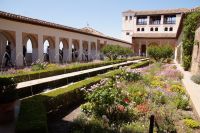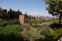 Früher als geplant, kamen wir in Granada, der roten Stadt, an und so mussten wir tatsächlich noch auf Pedro warten, der unten in der Stadt noch eine andere Gruppe führte. Aber Pedro beeilte sich und so begann wir unsere Tour durch die Alhambra auch früher als geplant. Das war ganz gut, denn so hatten wir die Gelegenheit, den Generalife (< djannat al-arif, Garten des Architekten) vor den Palästen zu sehen. Denn der Generalife an sich ist großartig, doch die Paläste sind eine Steigerung davon.