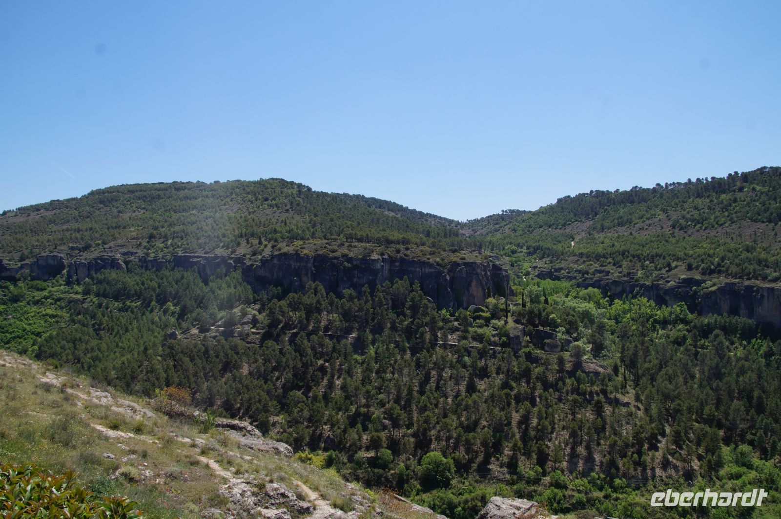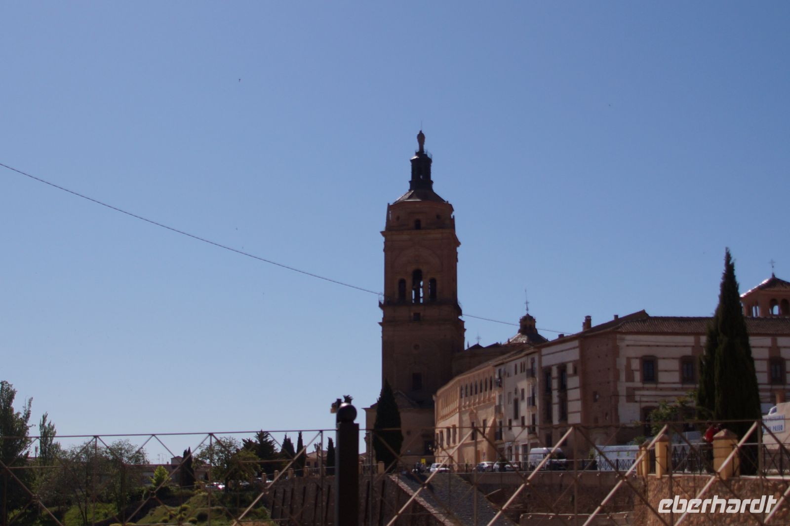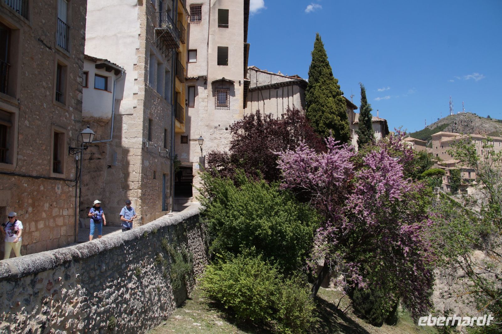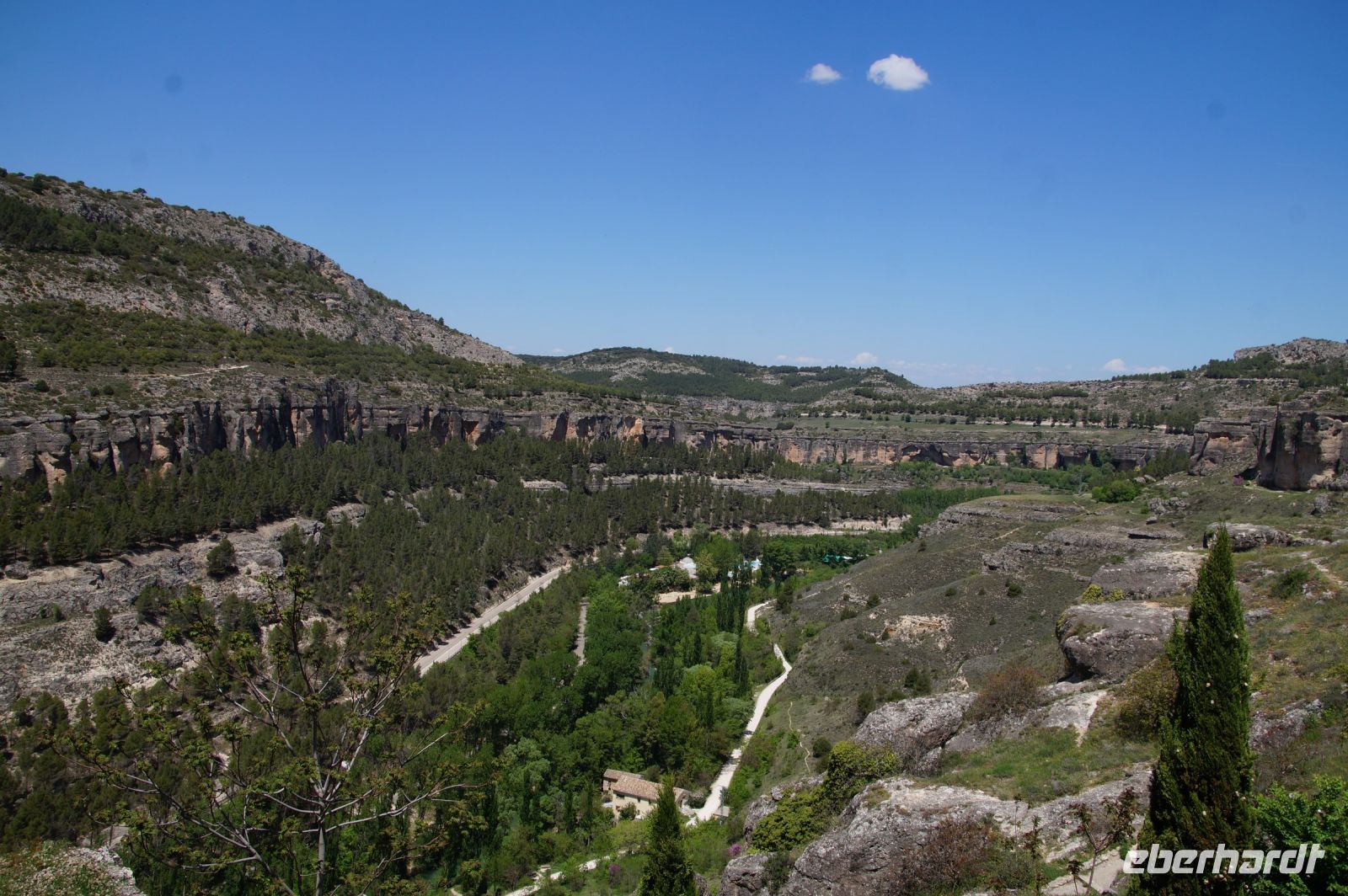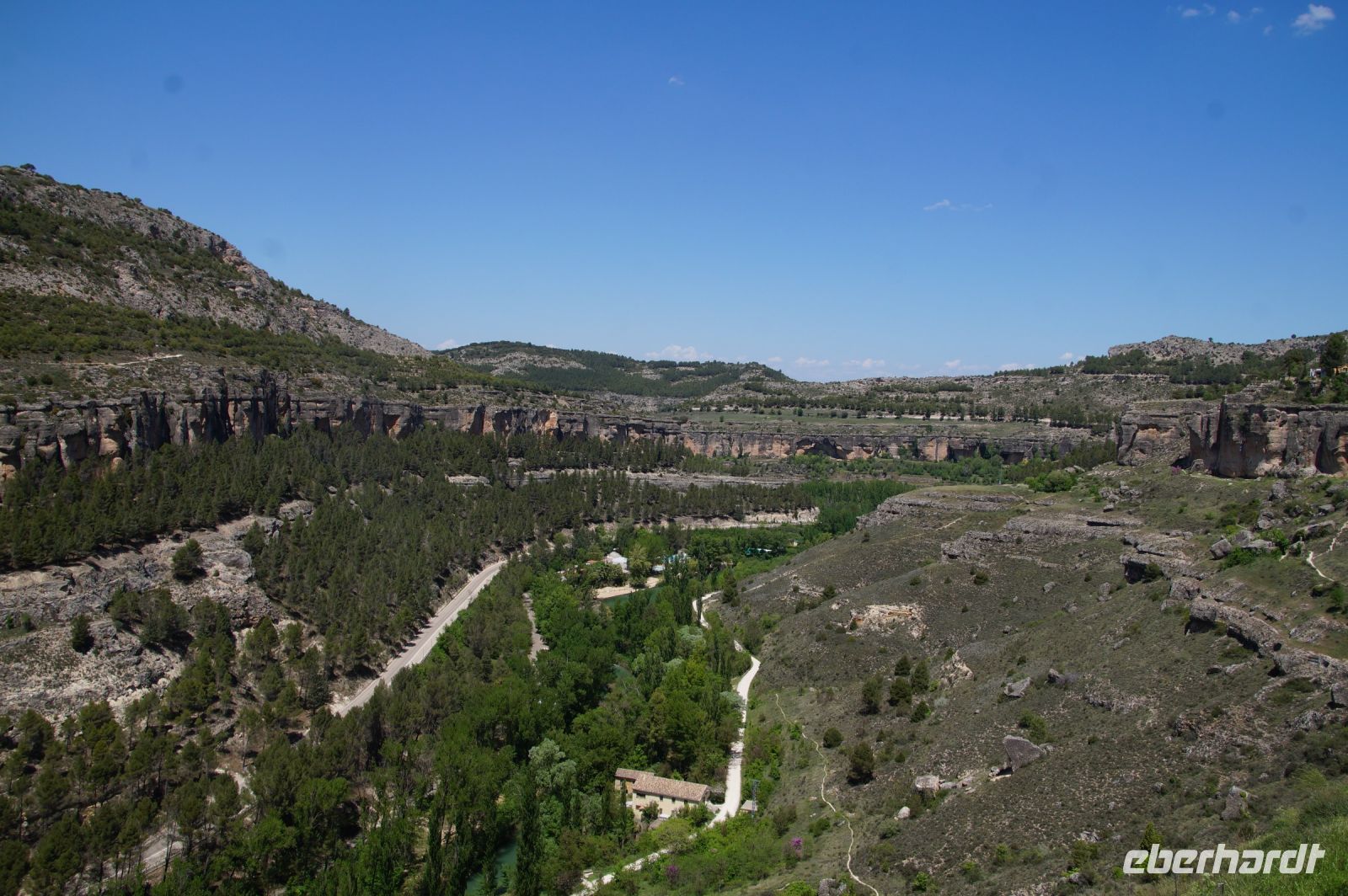 Anschließend verließen wir die Stadt über die Brücke des Heiligen Paulus, deren erste Version das Obispat von Cuenca im 16. Jhdt. finanzierte, weil zu viele Mönche aus dem Kloster sich krank meldeten, anstatt den Abstieg ins Tal des Huécar und den schließlich ein Aufstieg nach Cuenca anzugehen. Mit der Brücke wurde es den Mönchen erleichtert, zum täglichen Gebet in der Kathedrale zu kommen. Und uns, uns wieder von Santi in Empfang nehmen zu lassen. Die heutige Brücke ist bereits die zweite Version, gebaut von dem valencianischen Architekten José María Fuster, der sich vom Eiffelturm inspirieren ließ.
