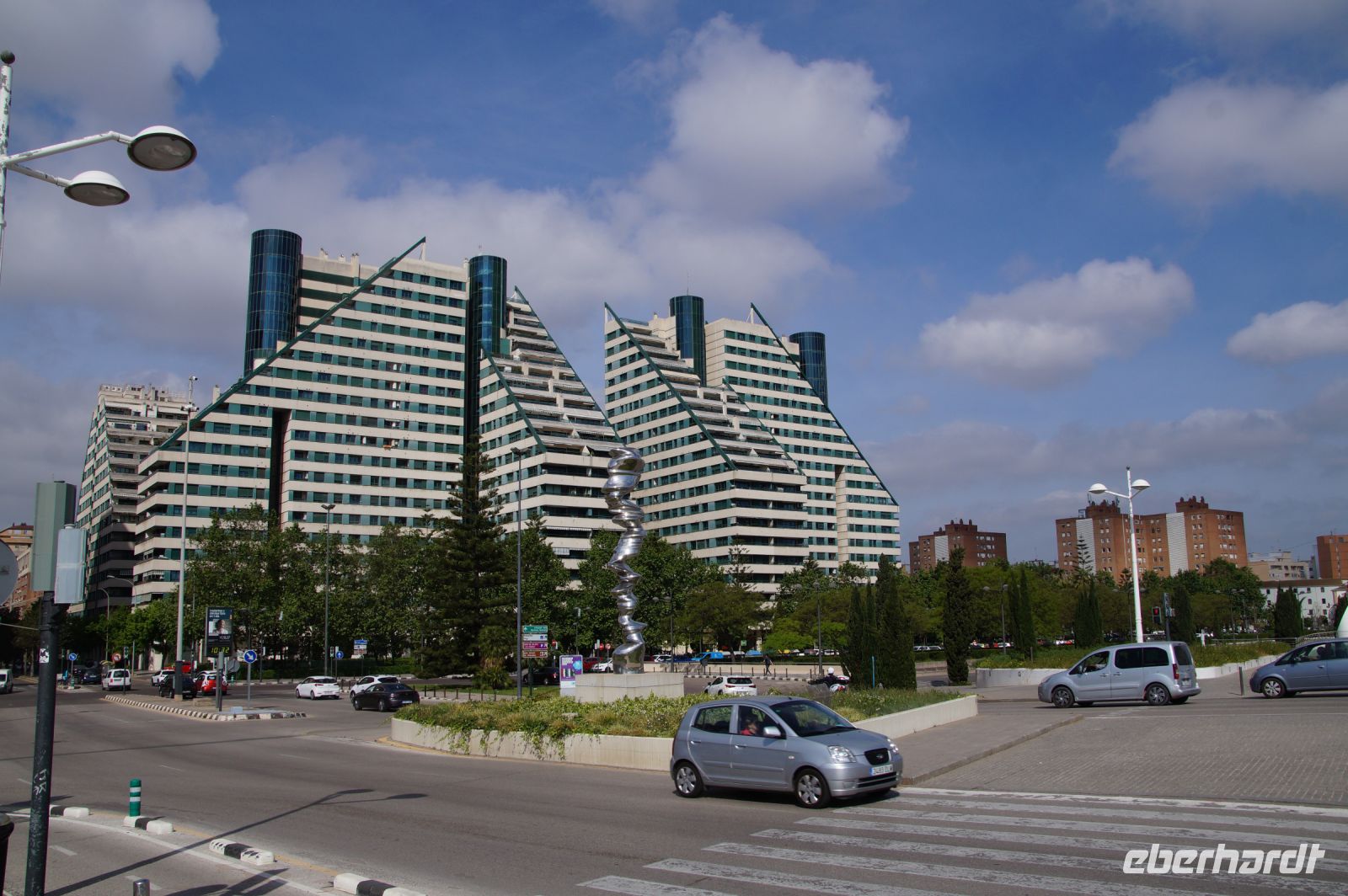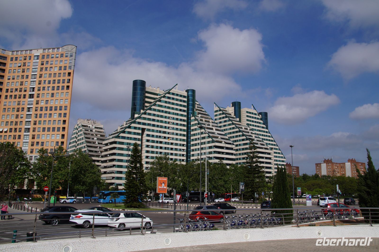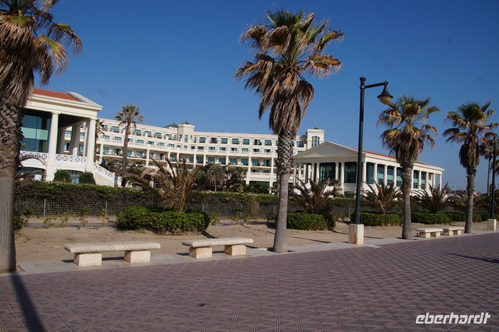 Mit Ana María umrundeten wir die Stadt zunächst im Bus. Sie machte uns auf die Installationen im Hafen aufmerksam und dass Valencia sich bemühte, die alten Fischer- und Industrieviertel rund um den Hafen und am Strand aufzuwerten. Unser Hotel war sicher einer der Leuchttürme dieses Aufwertungsprojekts. Gut, der 5*-Komplex, der an die römische Herkunft von Valentía erinnern sollte, hatte einen Hauch von Las Vegas (Cesar‘s Palace), aber das beschränkte sich auf die etwas überdimensionierte römertümelnde Architektur.