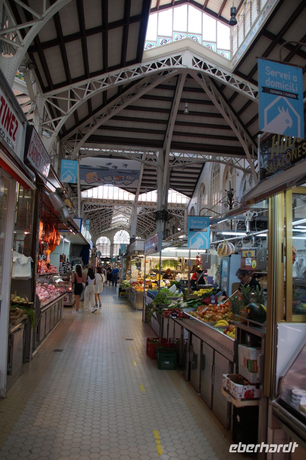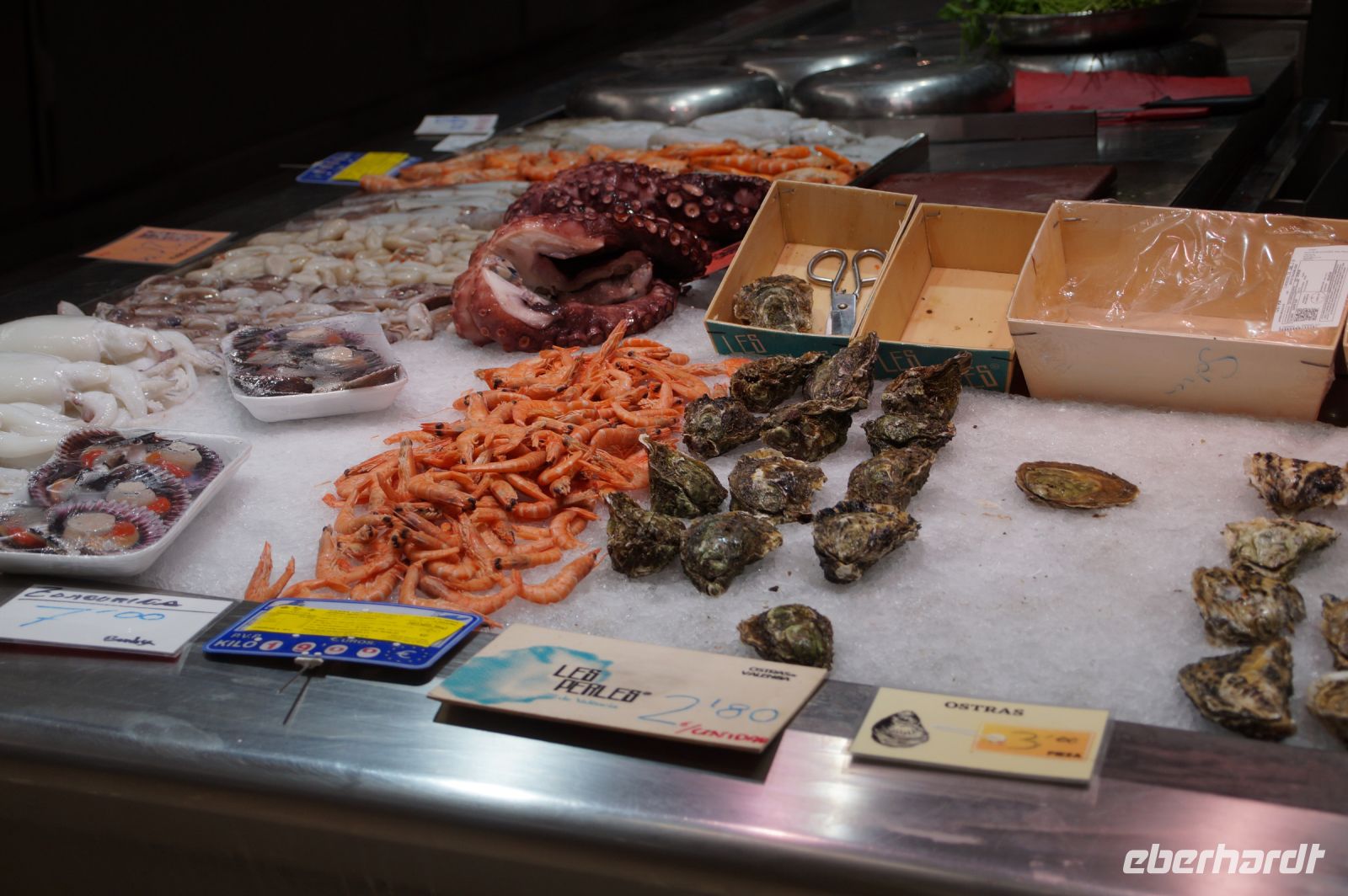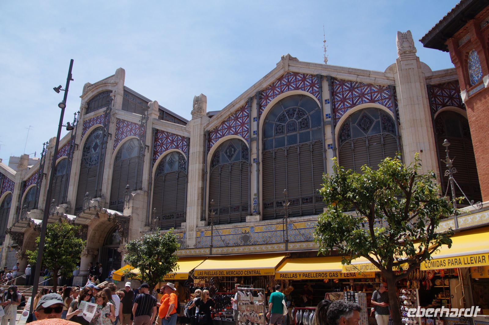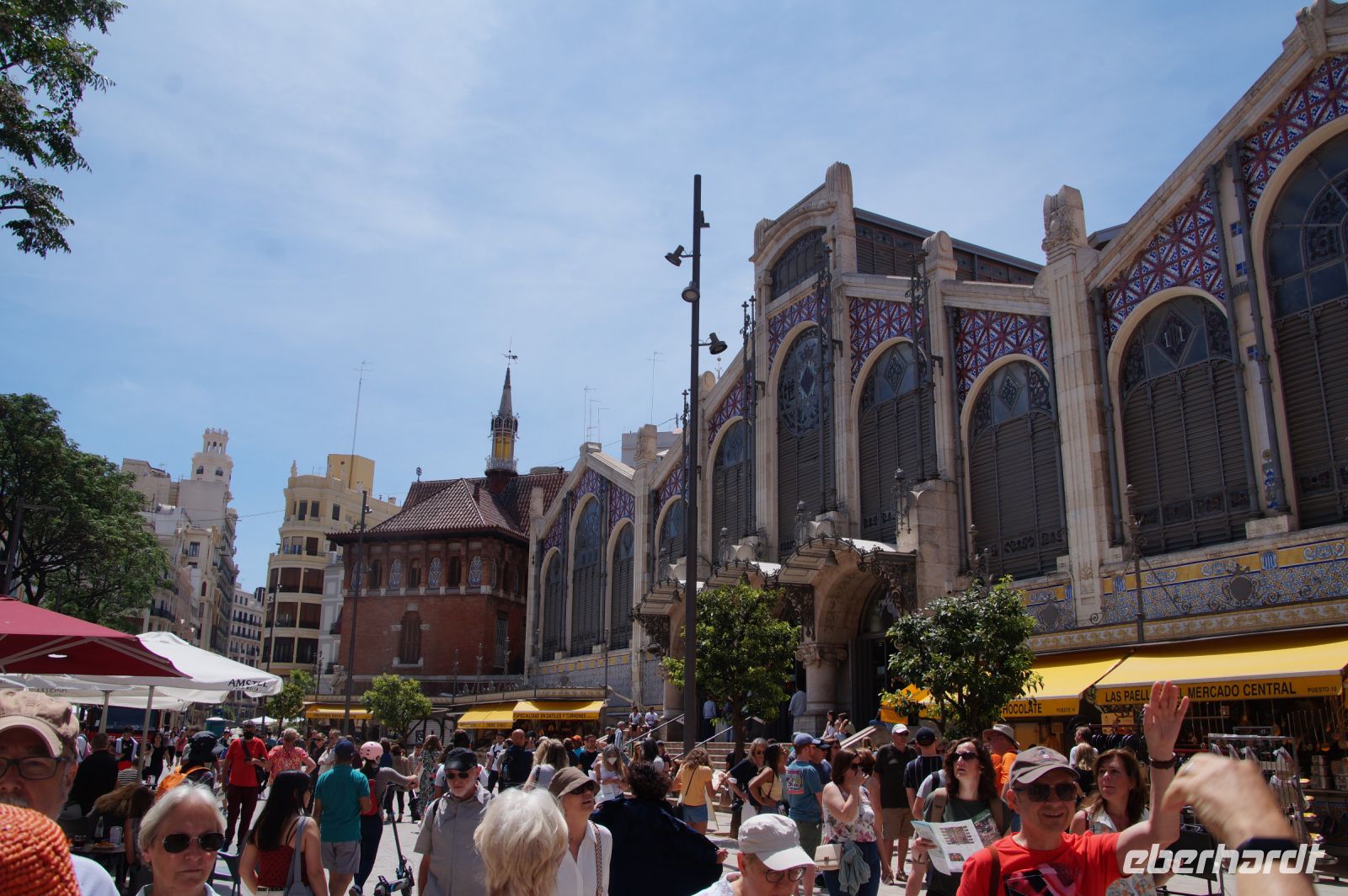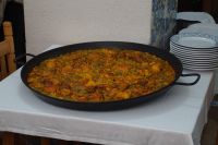 Nach dem Kathedralbesuch schlenderten wir noch bis zum Mercat Central, danach gingen wir zum Paella-Essen in einem Restaurant. Die Paella dürfte wohl das bekannteste spanische Gericht neben der Tortilla Española sein, ist aber typisch für Valencia. Und in die Paella Valenciana - es gibt natürlich auch andere Varianten - gehören kein Fisch und keine Meeresfrüchte, sondern nur Reis Gemüse und Kaninchenfleisch. Aber auch die Fischliebhaber kamen nicht zu kurz, denn es gab Stockfischkroketten (in Spanien wird aus so gut wie allem Kroketten gemacht: Stockfisch, Hühnchen, Gambas, Spinat, Schinken.... nur aus Kartoffeln nicht!) und Paprika gefüllt mit Glasaalen.