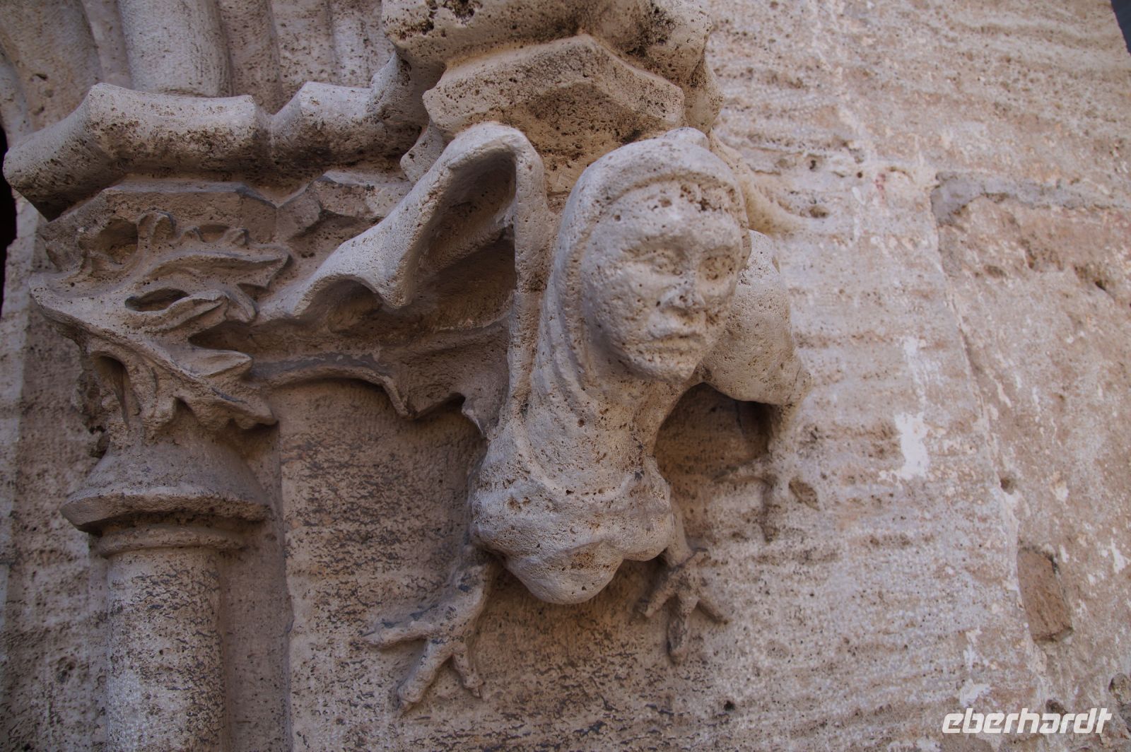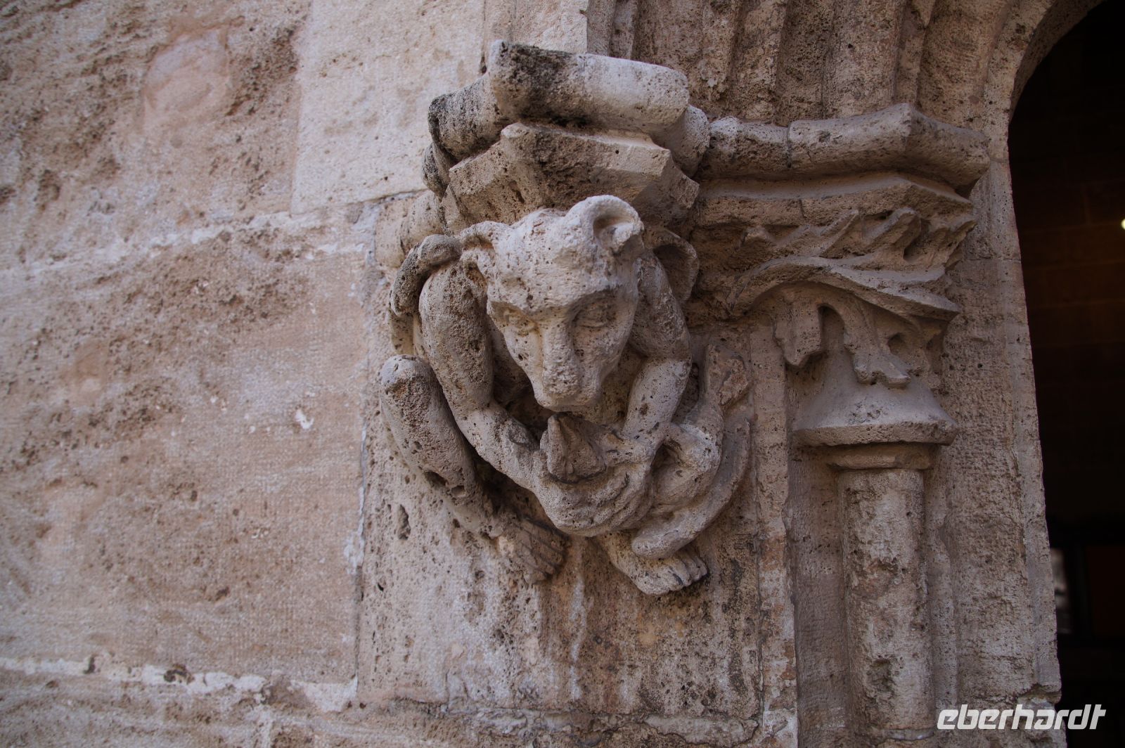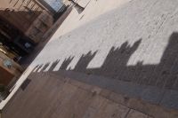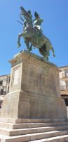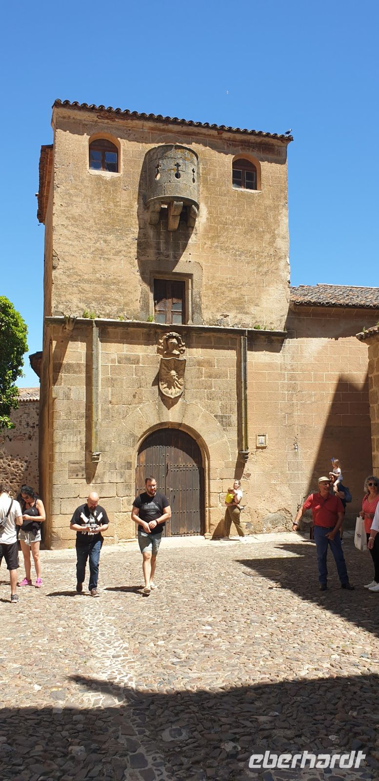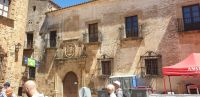 An der Casa del Mono - am Haus des Affen erzählte Javier uns eine Legende, die man in Cáceres erzählt. Sie dreht sich um die drei Wasserspeier, die an einer Seite des Hauses Regenwasser auf die Straße leiten. Bzw. die Legende ist von den Wasserspeiern, die einen Affen mit einem Kind, eine Frau und einen alten Mann zeigen, abgeleitet. Demzufolge habe der Hausherr, ein Händler, der häufig nach Amerika fuhr, seiner Frau einmal einen Affen mitgebracht als Ersatz für ein Baby, das sie nicht bekam. Als sie dann doch ein Baby bekam, habe der Affe, eifersüchtig, das Baby aus dem Fenster geworfen. Über den Gram über den Tod des Babys sei kurz darauf auch die Frau verstorben und der Hausherr soll den Affen in Ketten legen lassen haben, bis dieser verhungert war.