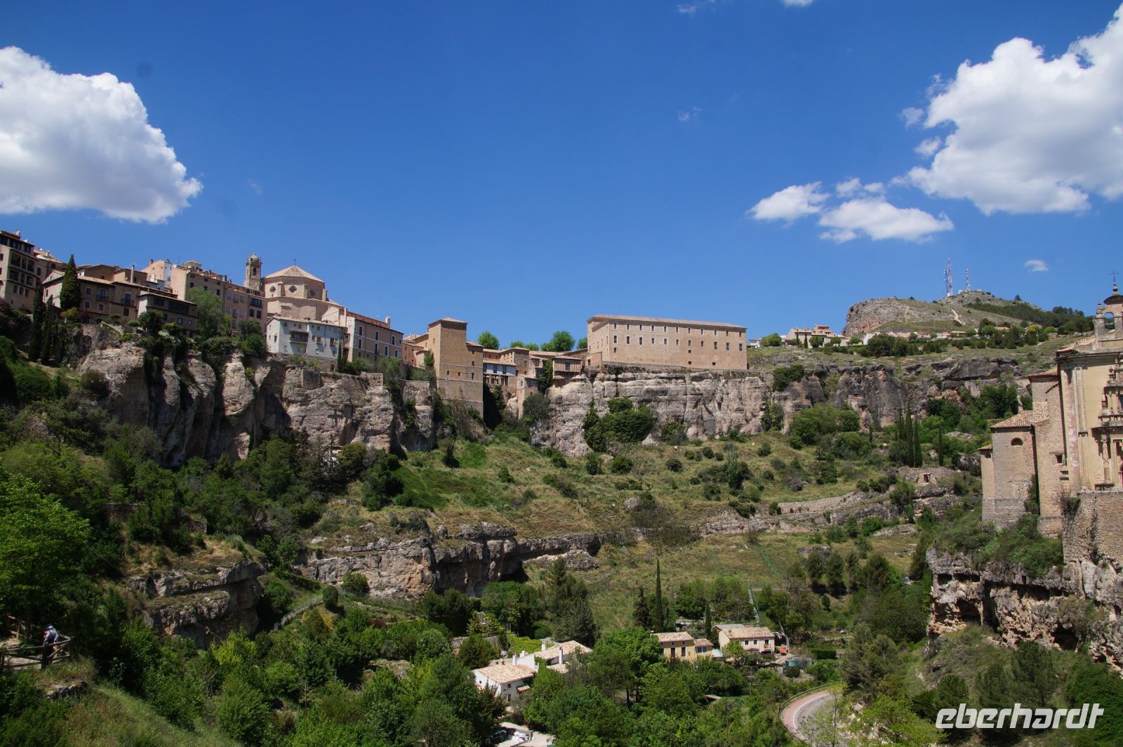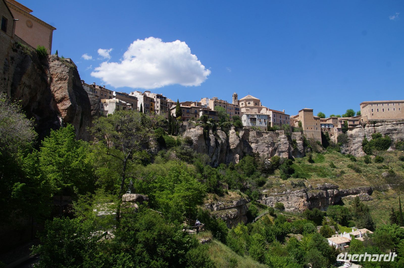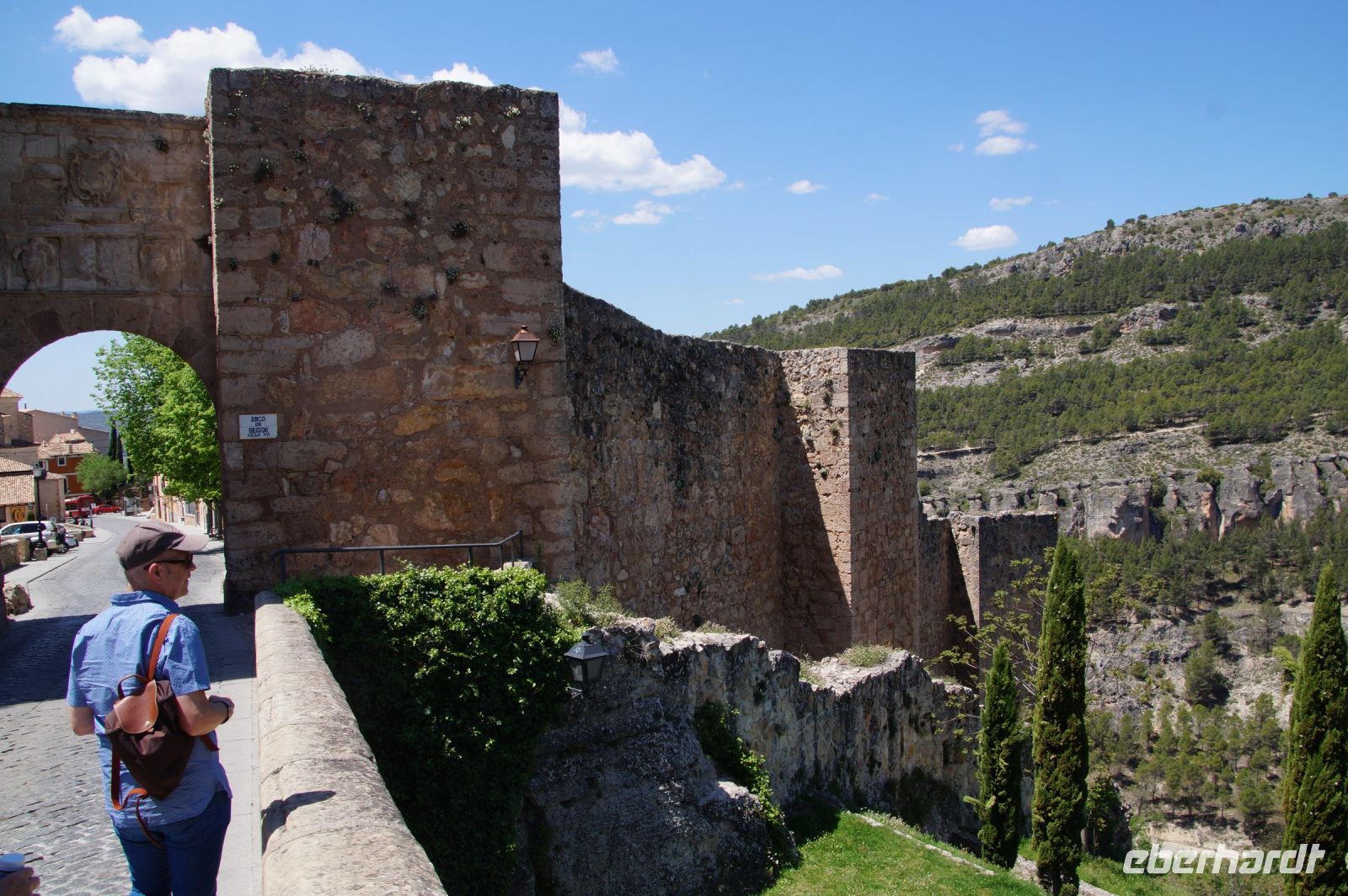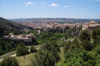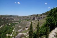 Die Altstadt von Cuenca (arab. Qûnka) liegt auf einem schmalen, etwas abschüssigen Hochplateau zwischen den Flüssen Júcar und Huécar. Wir trafen Cristián unten in der Stadt und mit ihm fuhren wir durch den Canyon des Huécar hoch zur „Burg“ bzw. dem, was von der Burg noch übrig war. Cristián war ein ganz netter Kerl, doch mit seinen halblangen Haare und seinen leicht überdimensionierten Totenkopfringen und den Piercings beinahe genauso sehenswürdig, wie die Stadt selbst. „Mein Sohn sah ja mal fast genauso aus, aber im Dunkeln wollte ich dem nicht begegnen“, hörte ich hinter mir jemanden sagen.