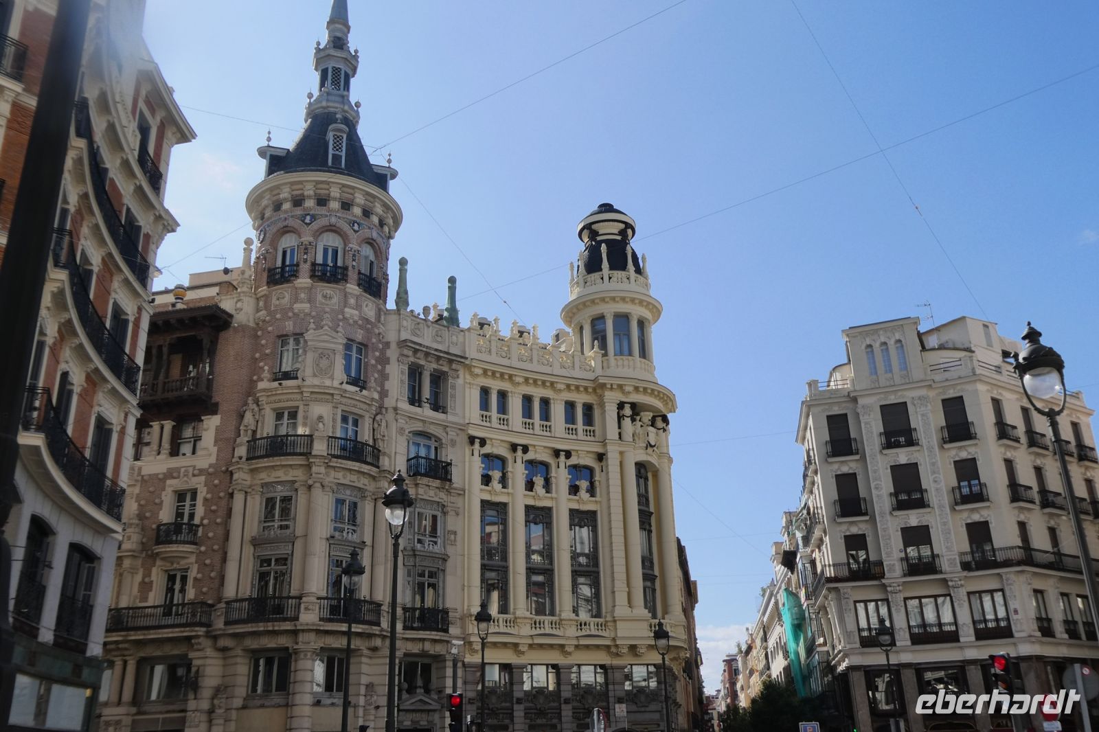 Weiter arbeiten wir uns in das Zentrum vor. Dort steigen wir aus um zu Fuß weiter zu gehen. Prachtvoll sind die Gebäude der Zeit des "Modernismo", des spanischen Jugendstils. Es war eine Epoche des wirtschaftlichen Aufschwungs. An der Plaza S.Ana steht eine Bronzeskulptur von Garcia Lorca mit einer frischen Blume im Knopfloch. Die Madrillenos sind eifrige Theatergänger, wie überhaupt Kunst und Kultur in dem Madrid von heute eine herausragende Rolle spielt. Bedeutende Kunsttempel, wie der Prado mit seinen alten spanischen Meistern (Velazquez, Goya, El Greco und viele andere) und auch das Museum Reina Sofía mit den zeitgenössischen Kunstsammlungen sind nur wenige von vielen Stätten des Kunstgenusses. Das wohl berühmteste Werk von Picasso "Guernica", welches er anlässlich des Grauens des spanischen Bürgerkrieges malte, zieht in jedem Jahr Millionen von Besuchern an. Dafür bleibt uns bei unserer Stippvisite leider keine Zeit, ist doch Madrid zu vielseitig um alles an einem Tag zu sehen.