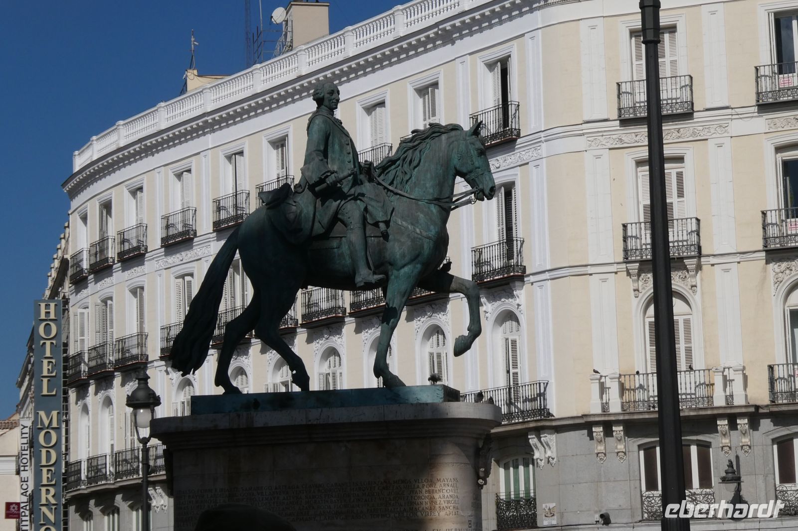 Wir machen am Retiro-Park halt um ein wenig frische Luft in der grünen Lunge Madrids zu atmen. Ein kleiner Spaziergang unterstützt das Vorhaben. Wir begrüßen einen der wohl berühmtesten Herrscher Europas als Skulptur: Karl V. oder Carlos I. wie er in Spanien genannt wird. Er und in der Nachfolge sein Sohn Phillipp II. oder Felippe II. herrschten über "ein Reich in dem die Sonne nicht untergeht". Auch war er der große Gegenspieler der Reformation.