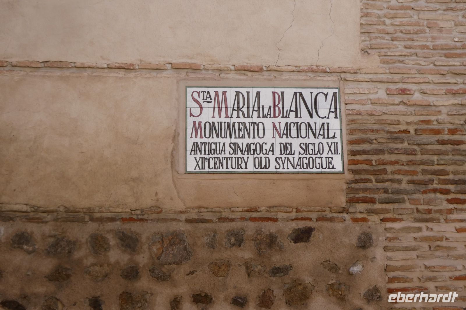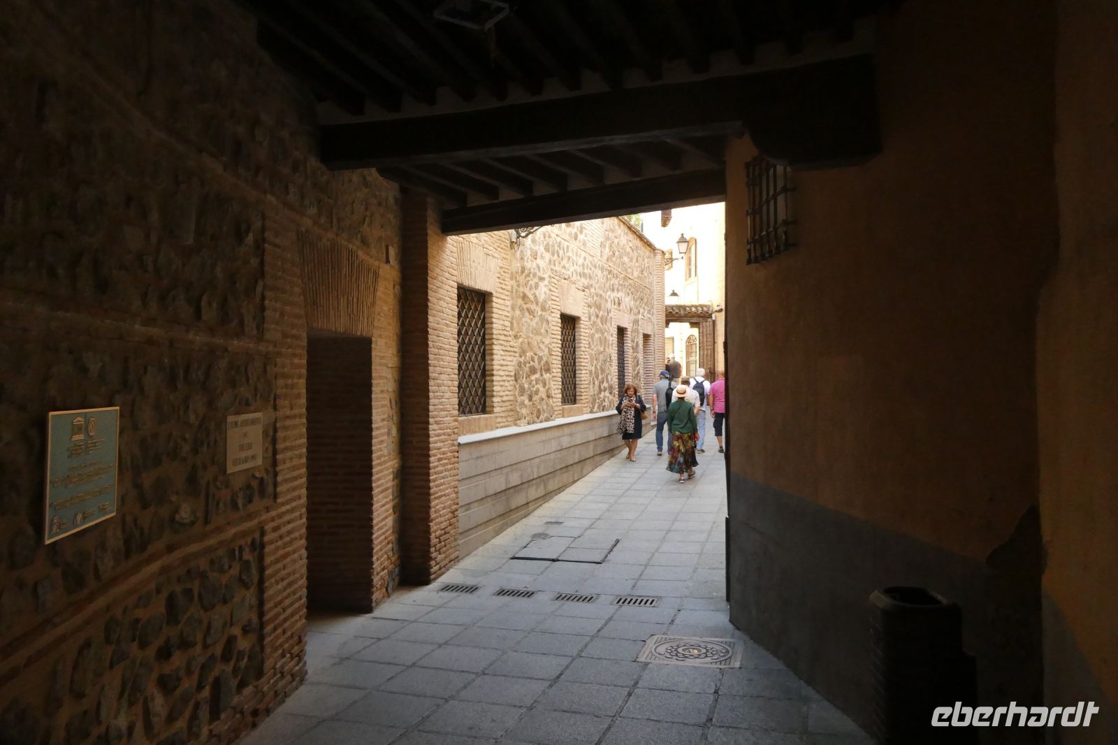 Weiter gehen wir durch das ehemalige jüdische Viertel bis zur früheren Synagoge die heute Santa Maria heißt. Nach der Reconquista wurden sämtliche Synagogen und Moscheen entweder zerstört oder umgewidmet. Der Bau ist heute gut restauriert, nur die Balkone für die Frauen sind nicht mehr erhalten. Die Stadt hatte ein lebhaftes jüdisches Leben, welches der Reconquista zum Opfer fiel. Leon Feuchtwanger hat es auch in seinem Prosawerk "Die Jüdin von Toledo" und die Zeit des späten Mittelalters anschaulich geschildert.