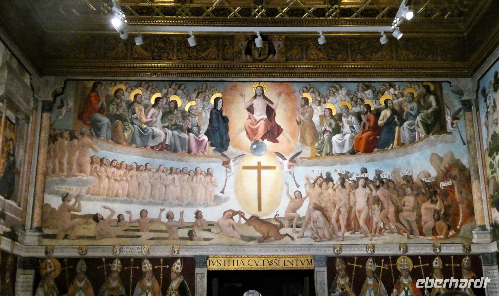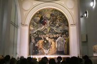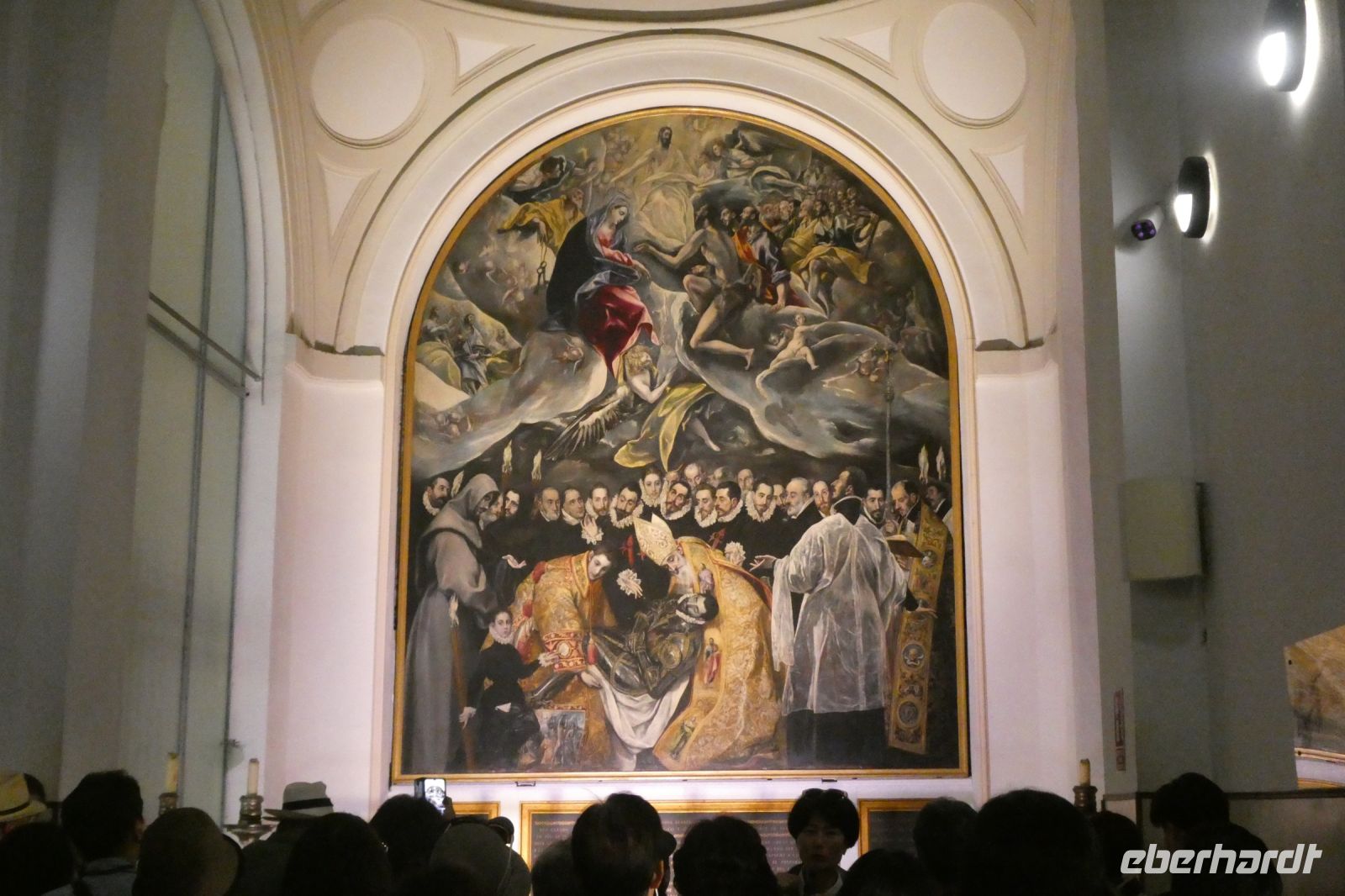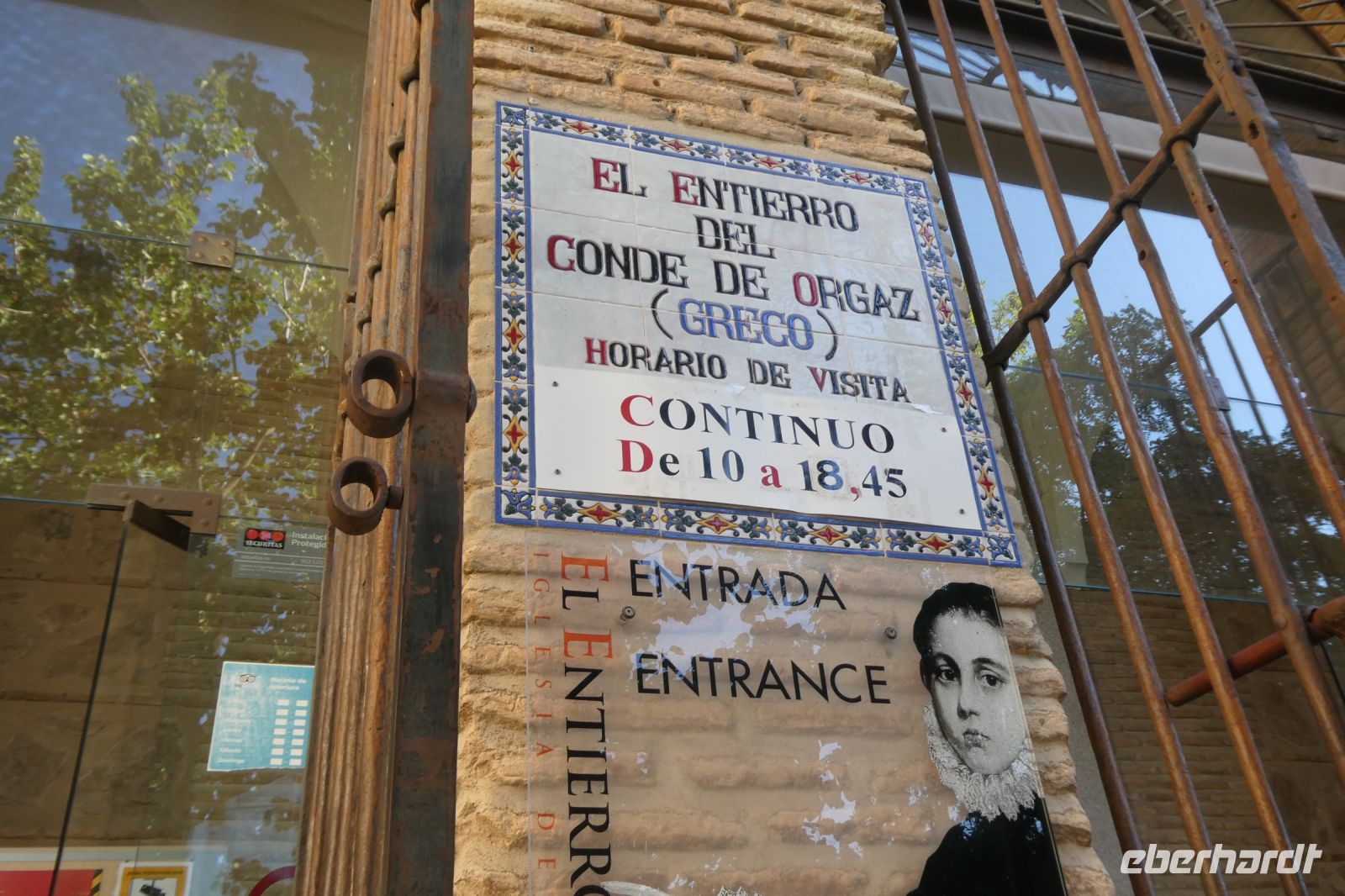 Wir schlendern durch diesen Stadtteil zu einer weiteren wichtigen Sehenswürdigkeit die sich in einer Seitenkapelle der Kirche Santo Tomé befindet und im Auftrag des Großherren Orgaz vollkommen erneuert wurde. So hängt denn mhier auch das Gemälde von El Greco "Begräbnis des Grafen von Orgaz" im Original. Francisco beschreibt uns das Bild welches auch im kleinen Format den Maler selbst zeigt. Allerdings muss man darauf hingewiesen werden, sonst erkennt man ihn nicht.