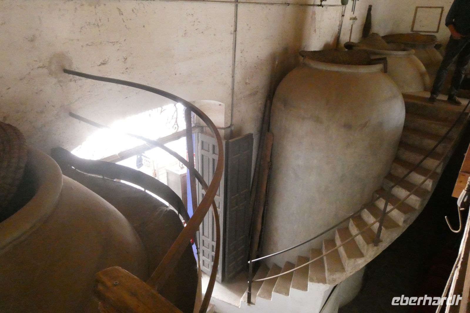 Wir bekommen verschiedene Tapas zu kosten mit dem dazugehörigen Wein. Wir können den alten Weinkeller besichtigen und lernen etwas über die alten Verfahren um Wein zu produzieren. Das ganze dauert etwas länger als geplant und wir erfahren dass unsere Käserei die wir besuchen wollen nur vormittags geöffnet hat. Das ist natürlich schade aber eigentlich sind wir satt geworden. Manchego-Käse kosten wir ja auch schon in verschiedenen Varianten seit 3 Tagen beim Frühstück. Der Geschmack ist uns jedenfalls bekannt.