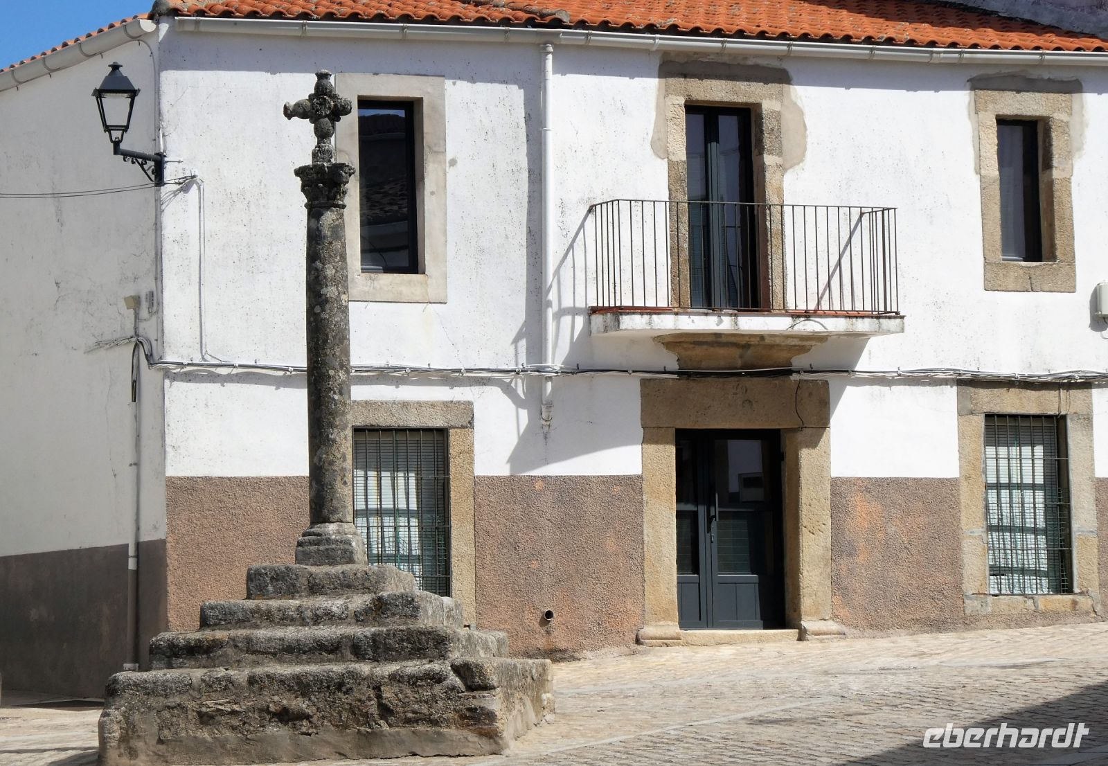 Heute müssen wir schon ein wenig früher los, denn wir haben als erstes einen Termin zu einer Schinkenverkostung in einem kleinen Ort der für seine Schweinezucht und seine Schinkenbetriebe bekannt geworden ist. Um nach Montánchez zu kommen, müssen wir allerdings eine kleine Weile fahren. Die Landschaft der Extremadura zieht an uns vorbei. Der Name kommt ja von dem Land "jenseits des Duoro" und nicht wie fälschlich angenommen weil das Land extrem und hart ist, obwohl das gar nicht so weit hergeholt ist. Es bedeutet schon einige Mühe dem Land die Produkte zu entlocken für welche die Region bekannt ist, z.B. den berühmten Schinken von den Schweinen die sich aus der sog. Dehesa ernähren. Diese Landschaft besteht aus ausgedehnteren Steineichenhainen. Und es sind die Eicheln, welche den Schweinen besonders munden und damit ihr Fleisch auch uns. Steineichen unterscheiden sich sehr von unseren deutsche Eichen, sind gedrungener, haben andere Blätter und kommen hier in der Landschaft auch mit begrenzten Ressourcen aus. Sie sind im Mittelmeerraum verbreitet, die Sorte die es in Spanien gibt kommt allerdings nur noch in Nordafrika vor. Die Steineichenhaine in denen die Tiere gemästet werden sind allerdings nicht an irgendeiner Straße gelegen sondern vor unseren Augen versteckt, schade eigentlich, hätten die meisten von uns doch gerne mal so einen Vierbeiner lebend gesehen.