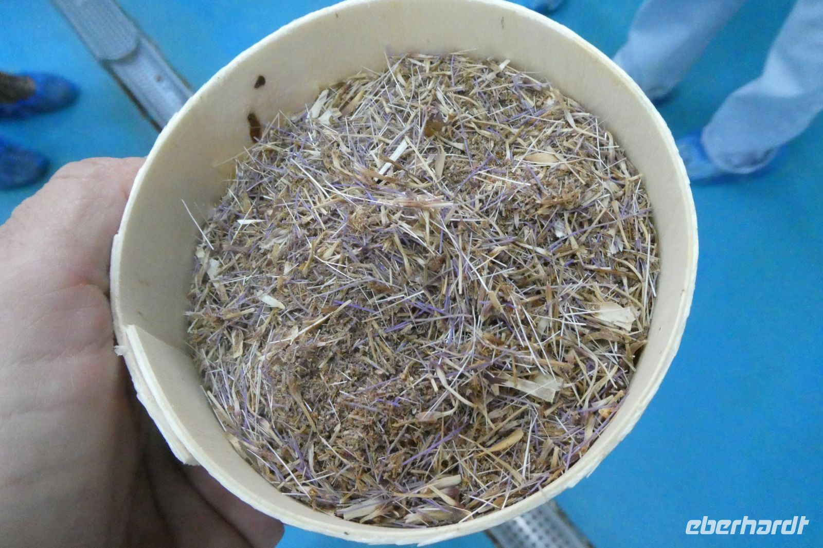 Die Torta del Casar wird ausschließlich aus Rohmilch von Merino-Schafen hergestellt. Zur Gerinnung wird die Milch durch einen Aufguss aus Distelblüten gebracht, die wir gezeigt bekommen. Der Käse ist außen fest und innen flüssig. Man schneidet die Kappe ab und löffelt den Käse dann wie aus einer Schüssel.