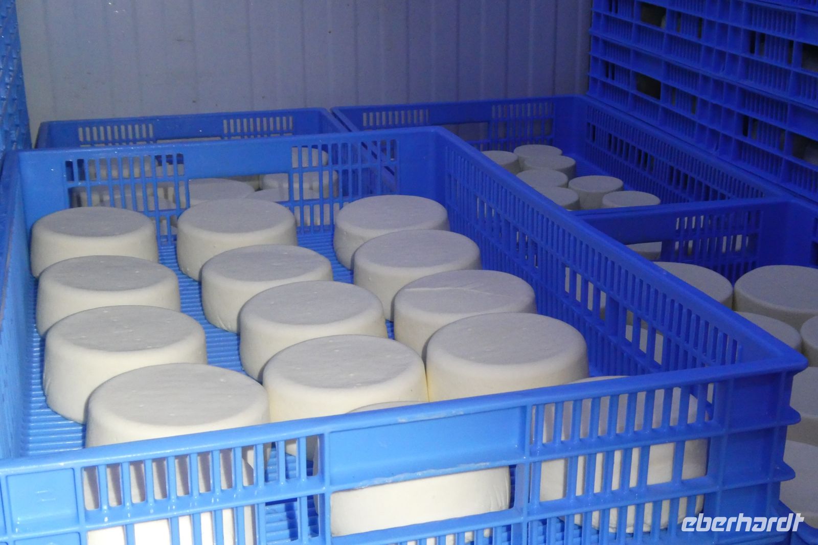Dann mit Javier kann der Rundgang durch die Molkerei beginnen. Es wird auf Hygiene geachtet und wir bekommen alle Mützchen und Plastik an die Füße, damit wir keinen Dreck hineintragen. Hier wo wir uns befinden wird nur dieser spezielle Käse hergestellt, obwohl in dieser Molkerei noch andere Käse ihren Ursprung haben.