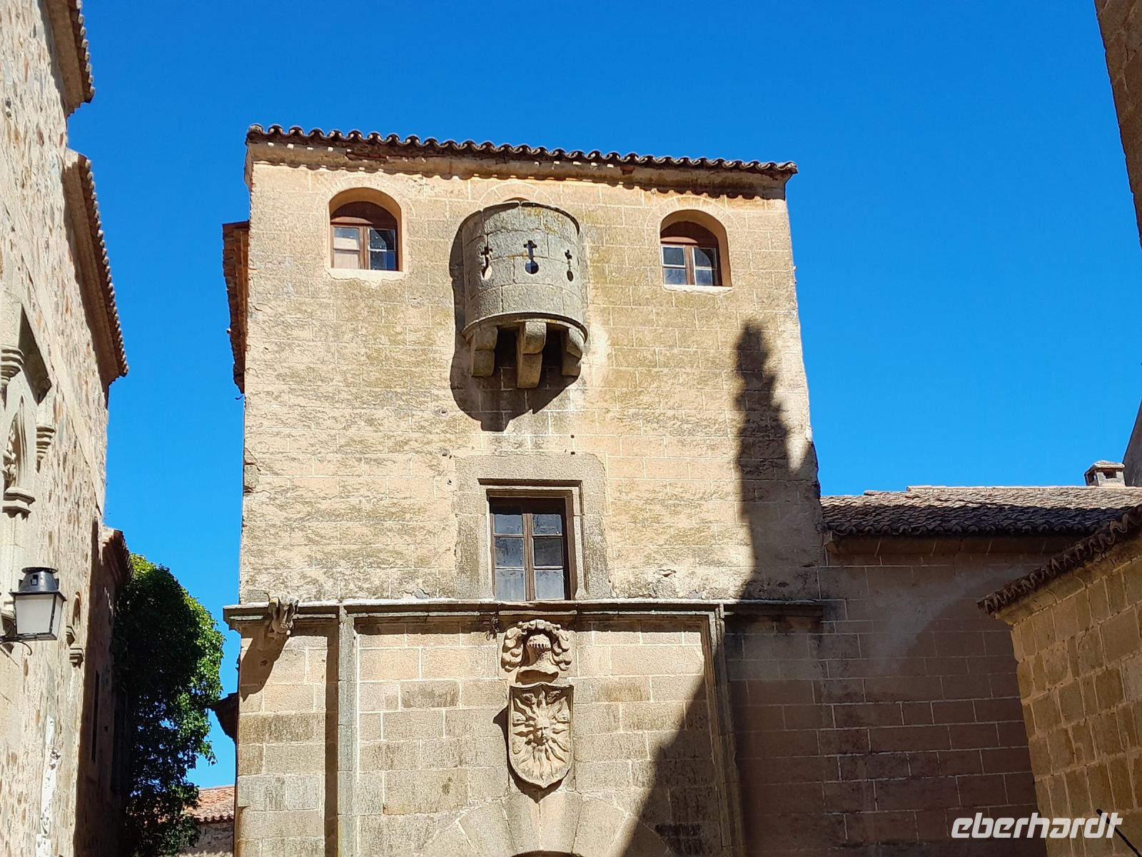 Die Altstadt von Cáceres ist UNESCO-Weltkulturerbe und wartet mit vielen Palästen, Villen und Adelshäusern auf. Es sind zahlreiche Reisegruppen in der Stadt und schließlich können wir uns noch ein wenig selbst auf den Weg machen oder einen kleinen Imbiss an der Plaza Mayor zu uns nehmen, was nicht so einfach ist. Es gibt in der Stadt ein Musikfest und so sind auch viele Spanier hier unterwegs. Fast alle Plätze sind besetzt.