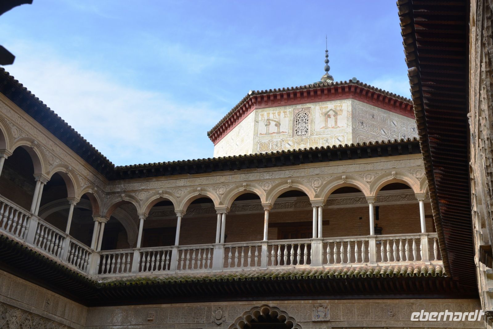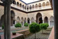 Wir müssen pünktlich zur Zeit am Palast "Real Alcazar" sein. Der Palast wurde von Pedro I., bei uns unter dem Namen "Peter der Grausame" bekannt, erbaut. Er holte Baumeister aus Granada und schuf so einen prächtigen Palast im sog. "Mudejar-Stil", eine Mischung aus muslimischen, jüdischen und christlichen Elementen mit entsprechender Symbolik. War und ist doch der Garten in der islamischen Welt die Vorwegnahme des Paradieses, welches den Menschen bei guter Lebensführung erwarten soll. Der Palast wurde durch spätere Herrscher erweitert und ausgebaut, vor allem von Karl V., der als katholischer Herrscher ein strikter Gegner der Reformation war und über Martin Luther nach dem Reichstag zu Worms 1521 die Reichsacht verhängte. Der Palast wird auch heute noch von der Königsfamilie manchmal genutzt.