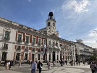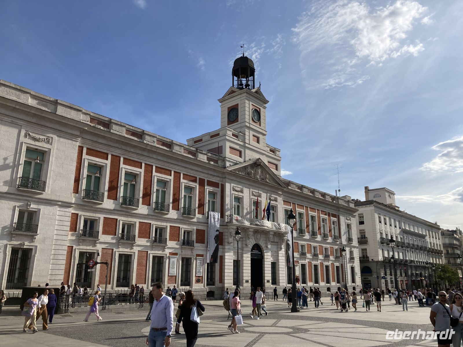 Die spanische Hauptstadt Madrid wartete schon auf uns. Mitten im Zentrum lag unser interessantes Boutiquehotel Casa de la Lírica, dessen Ambiente die Musikgeschichte des 20. Jahrhunderts Spaniens wachruft. Nicht nur die Lobby, sondern auch jedes Zimmer ist der Gattung des kleinen Musiktheaters, der sogenannten Zarzuela gewidmet. Nicht nur Bilder, auch Notenblätter verstärkten diesen Eindruck. Am frühen Abend traf sich unsere Gruppe zu einem ersten gemeinsamen Spaziergang durch die pulsierende Stadt. Der Platz Puerta del Sol überraschte uns mit dem bekannten Kilometer 0. Wir standen wie so viele Touristen vor der Platte aus Granit und Messing, die den Punkt markiert, von dem aus die Kilometer der spanischen Radialstraßen gezählt werden (von der A-1, die nach Burgos führt, bis zur A-6, die in A Coruña endet). Dann schweifte unser Blick nach oben zur Casa de Correo, dem Sitz des Regierungspräsidiums der Gemeinschaft Madrid. In diesem Gebäude befindet sich die berühmte Uhr, die an Silvester zwölf schlägt und sich danach die Spanier ihre 12 abgezählten Weintrauben munden lassen.