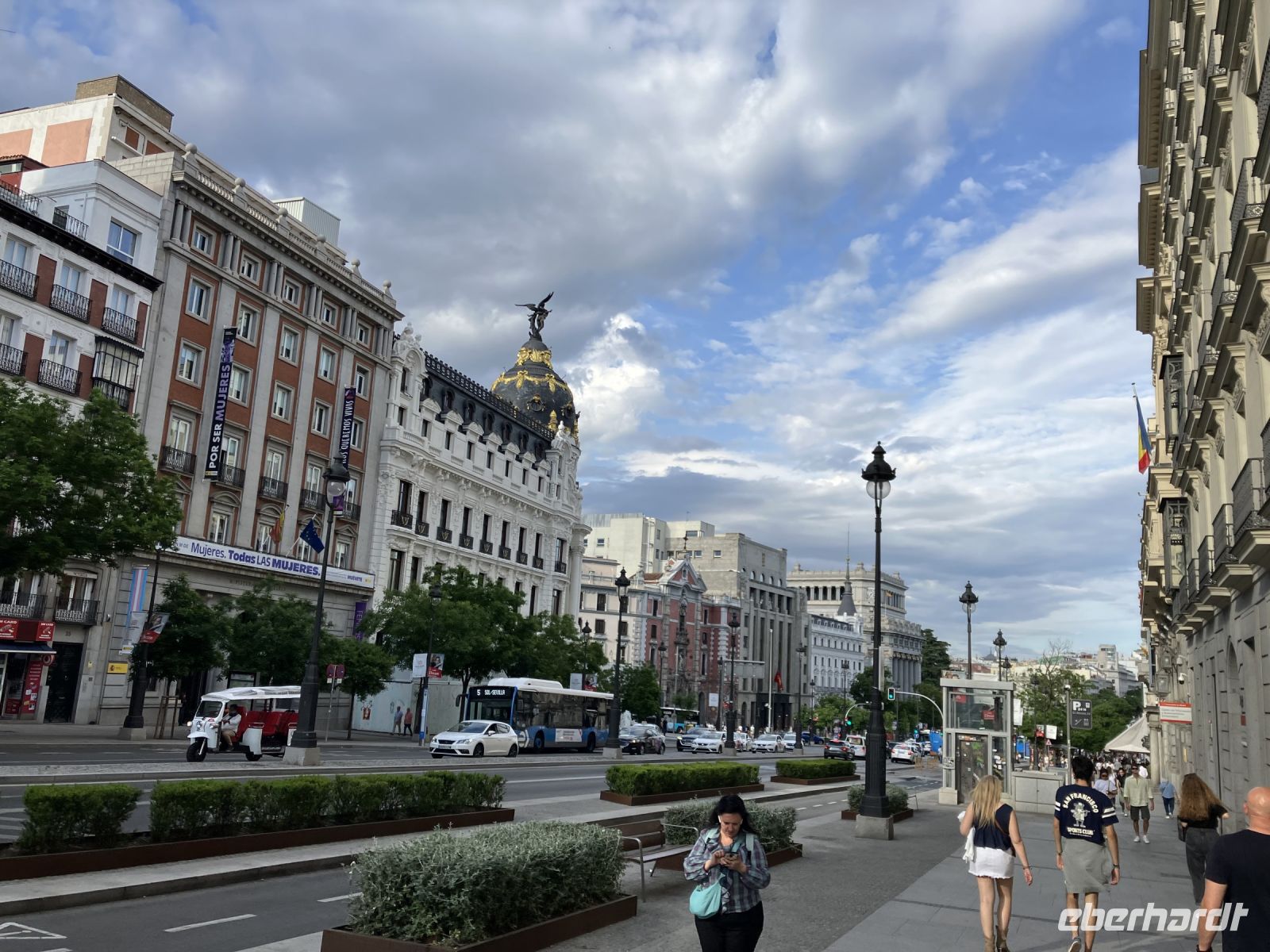 Nach einem ausgiebigen Frühstück unter der großen Glaskuppel, die sich sich über den Innenbereich des Hotels spannt, begrüßte uns der örtliche Reiseleiter Thomas zu einem Spaziergang durch das Habsburger Viertel in Madrid.