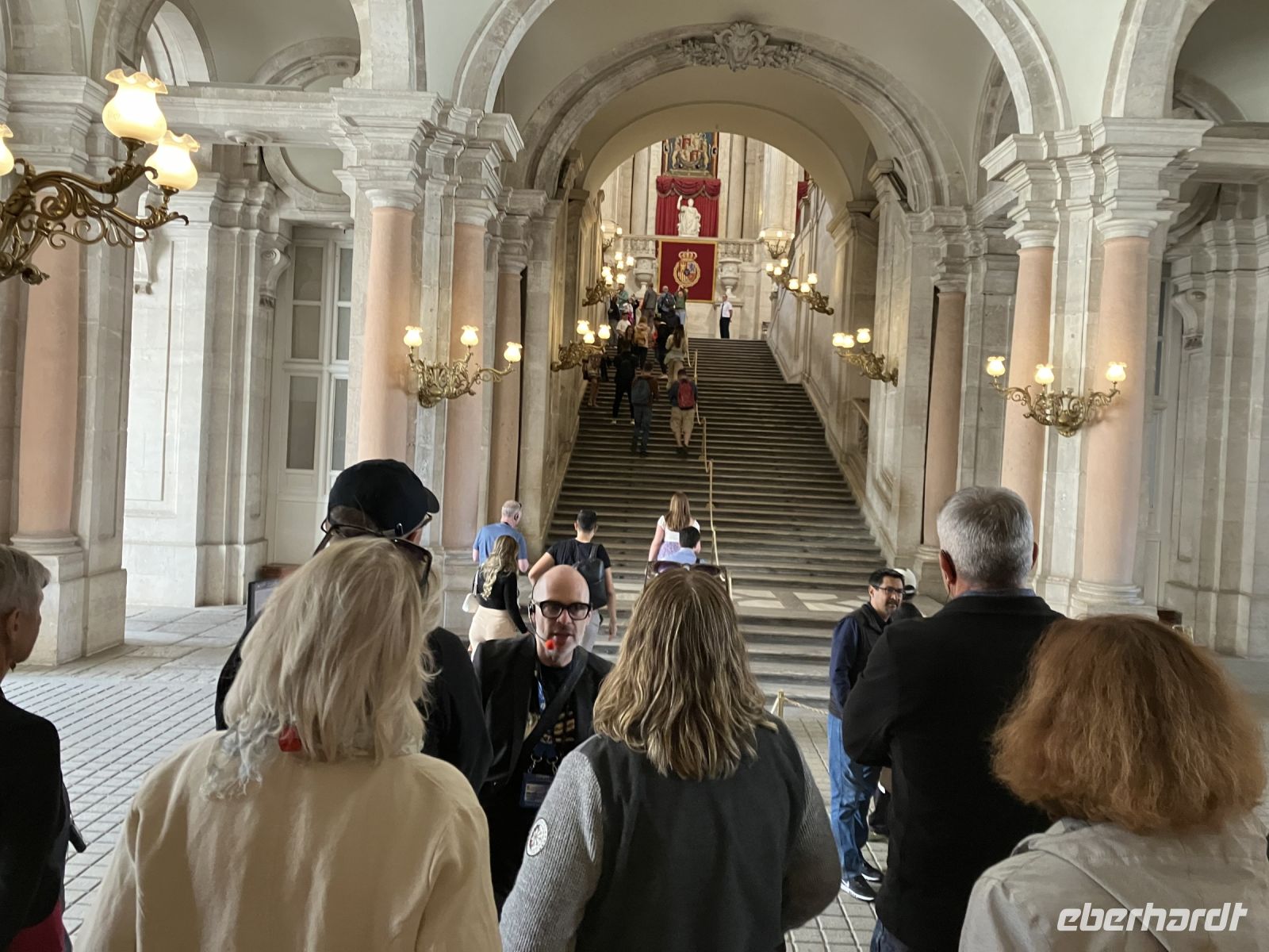 Genau zum richtigen Zeitpunkt erreichten wir den Königspalast, den größten Palast im Westen Europas. Zum Glück durfte uns Thomas auch im Inneren des Palastes alles Wissenswerte weitergeben. Mit seiner charmanten Art nahm er uns mit auf eine Reise durch die Zeit und lies Bilder von Königen und Prinzessinnen vor unserem inneren Auge aufsteigen.