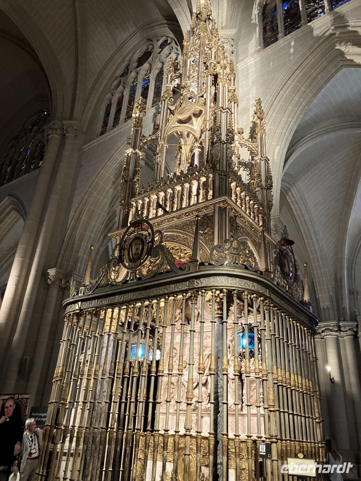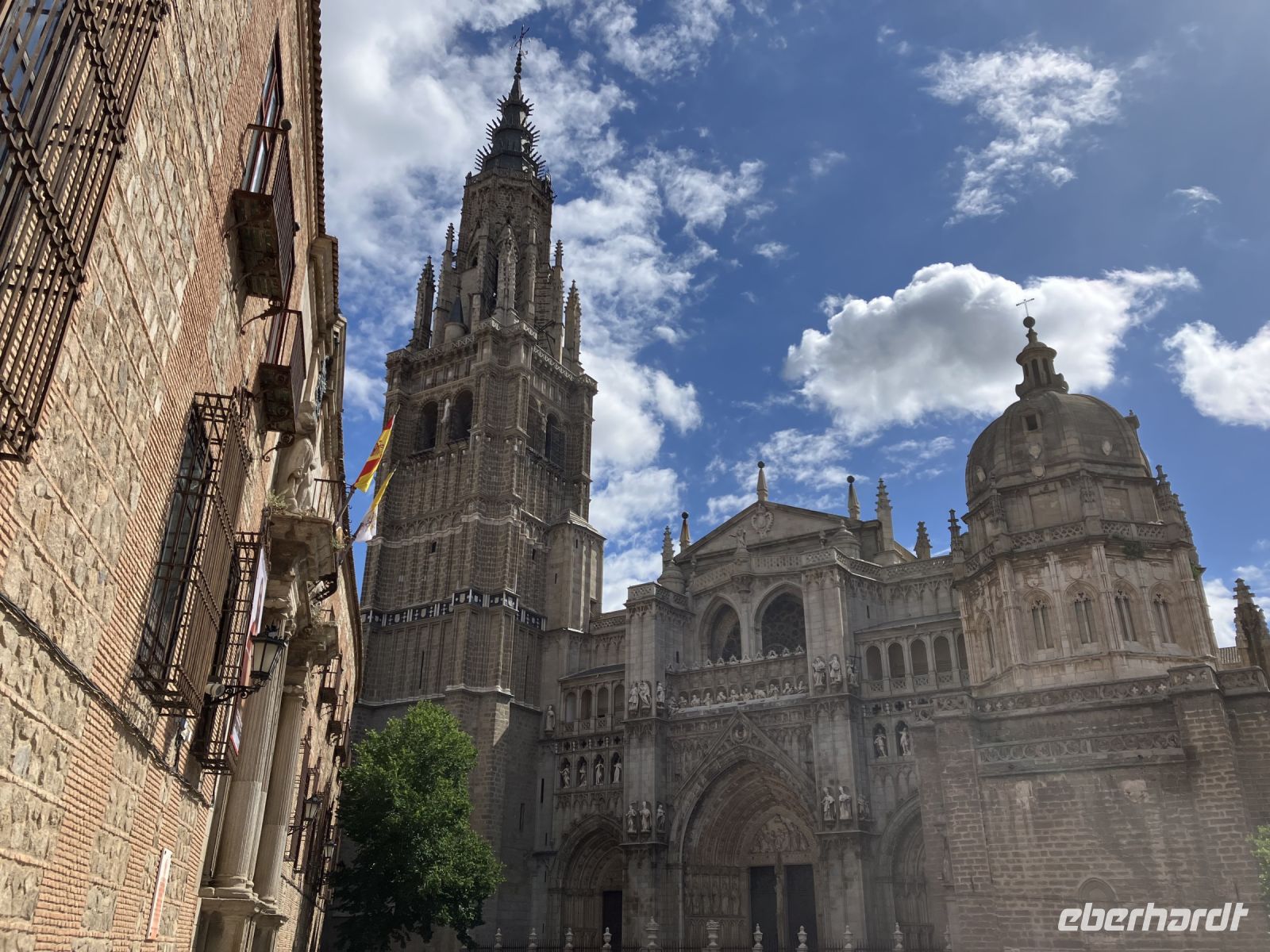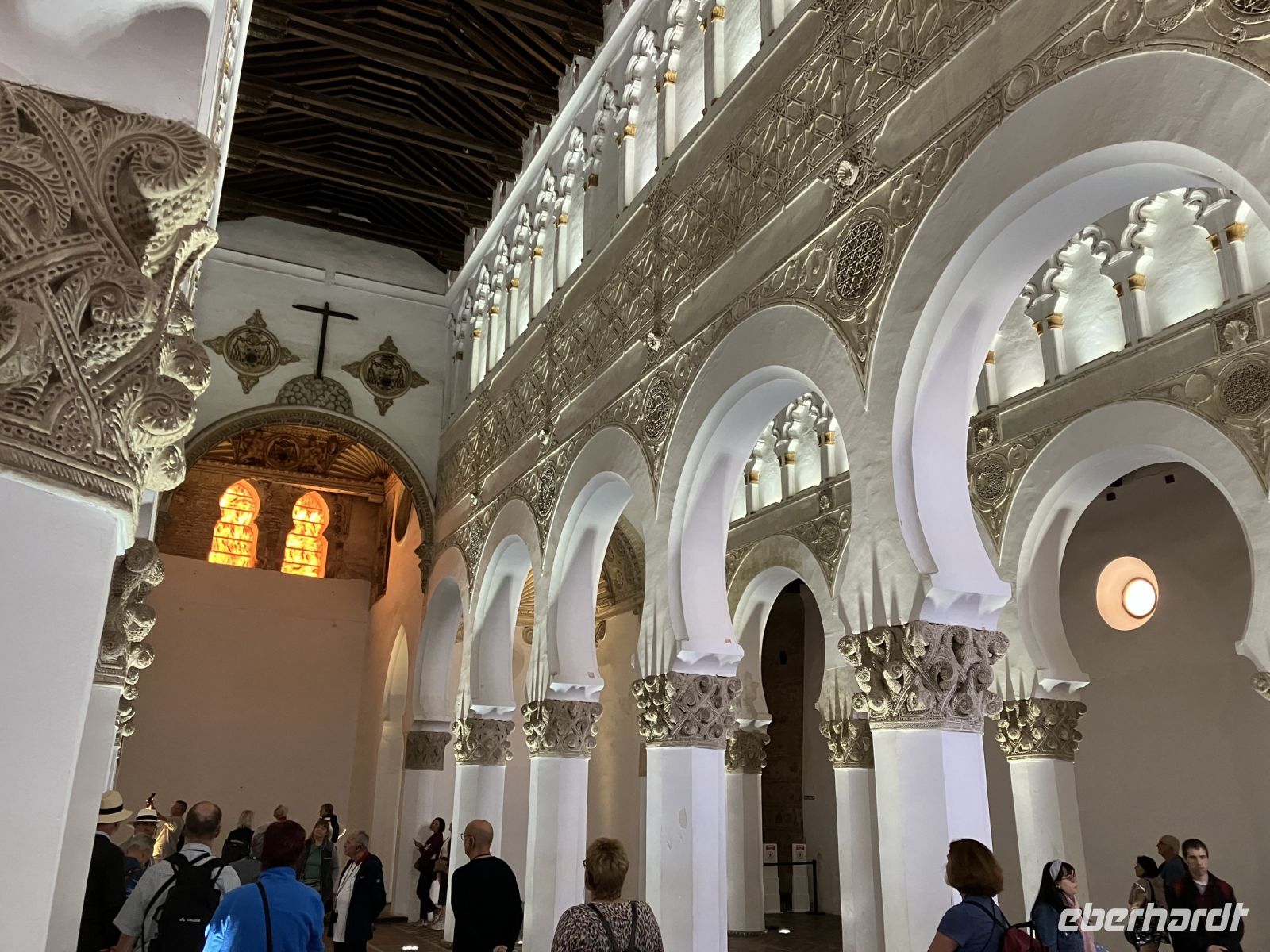 Mit dem örtlichen Reiseleiter Francisco erkundeten wir Toledo und erfuhren mehr über die wechselvolle Geschichte der Stadt. Wie versprochen, standen wir vor und in den wichtigsten Sehenswürdigkeiten Toledos, die einen Schmelztiegel dreier Kulturen: Christentum, Islam und Judentum bilden. In der Kathedrale erfuhren wir, warum Kardinalshüte von der Decke hängen, bestaunten die prachtvolle Monstranz sowie den Hochaltar. Die Synagoge Santa Maria la Blanca überzeugte mit Schlichtheit und die Moschee Bab al Mardum mit ihren vielen Verzierungen und der Vermischungen unterschiedlicher Stile. Diese im Jahr 999 errichtete Moschee blieb unverändert, bis König Alfonso VI. sie um 1185 dem Johanniterorden schenkte. Die Ritter behielten den ursprünglichen Baustil bei, fügten jedoch einen abgerundeten Teil hinzu und weihten sie letztendlich als Kapelle des Heiligen Kreuzes. Später erhielt sie den heutigen Namen Christus des Lichts.