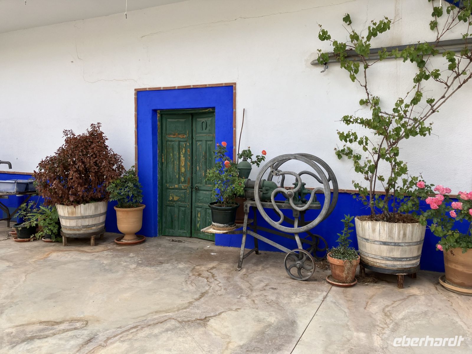 Am Morgen standen wir mit den gepackten Koffern, die jeden Tag schwerer wurden, bereit, um den Hügel inmitten der fruchtbaren Ebene des Flusses Guadalquivir schweren Herzens zu verlassen. Wir durchquerten die typischen Olivenhaine Andalusiens und erreichten nach einer kurzen Fahrt die Hacienda Basilippo, was übersetzt soviel wie Dorf des Mondwaldes heißt. Der kompetente Experte Guillermo führte uns nicht nur über die Hacienda, sondern erweiterte unser Wissen über Oliven, den Anbau und natürlich das kostbare Öl. Wir lernten den Unterschied zwischen Extra Virgen und Lampante kennen ;-). Dieser Begriff stammt aus der Vergangenheit: Alles was nicht Extra Virgen und von guter Qualität ist, ist eben Lampante, „Lampenöl“, was man besser als Brennstoff in alten Öllampen verwendete. Schon die Römer sollen das gewusst haben. Kurz sah auch der Seniorchef Don Antonio bei uns nach dem Rechten, bevor wir zur Verkostung der hochwertigen Öle schritten. Wer hätte gedacht, dass Schoko-Eis mit Olivenöl ein wahrer Genuss ist.