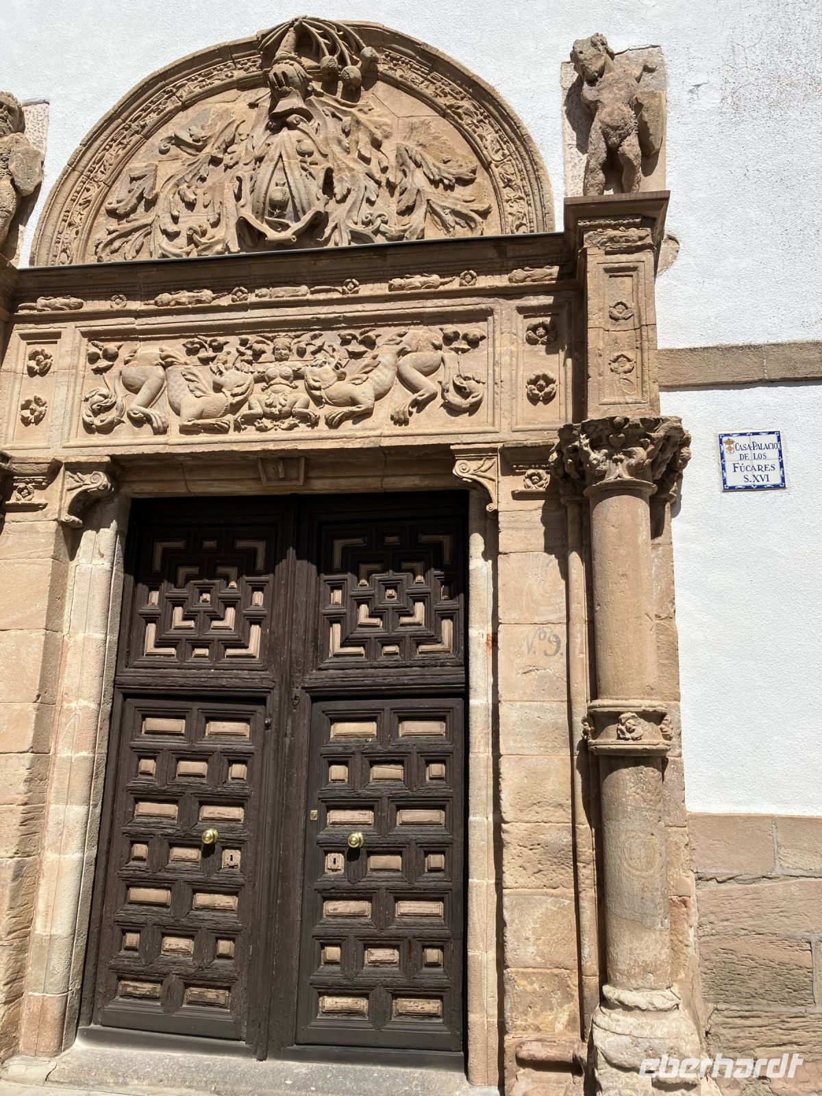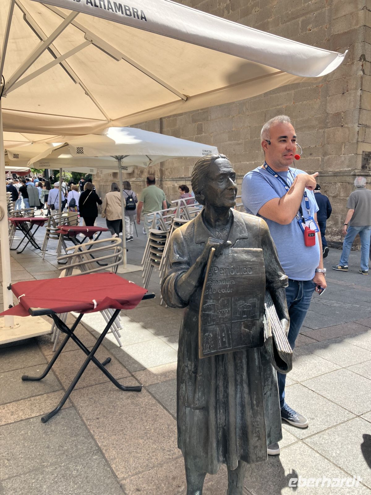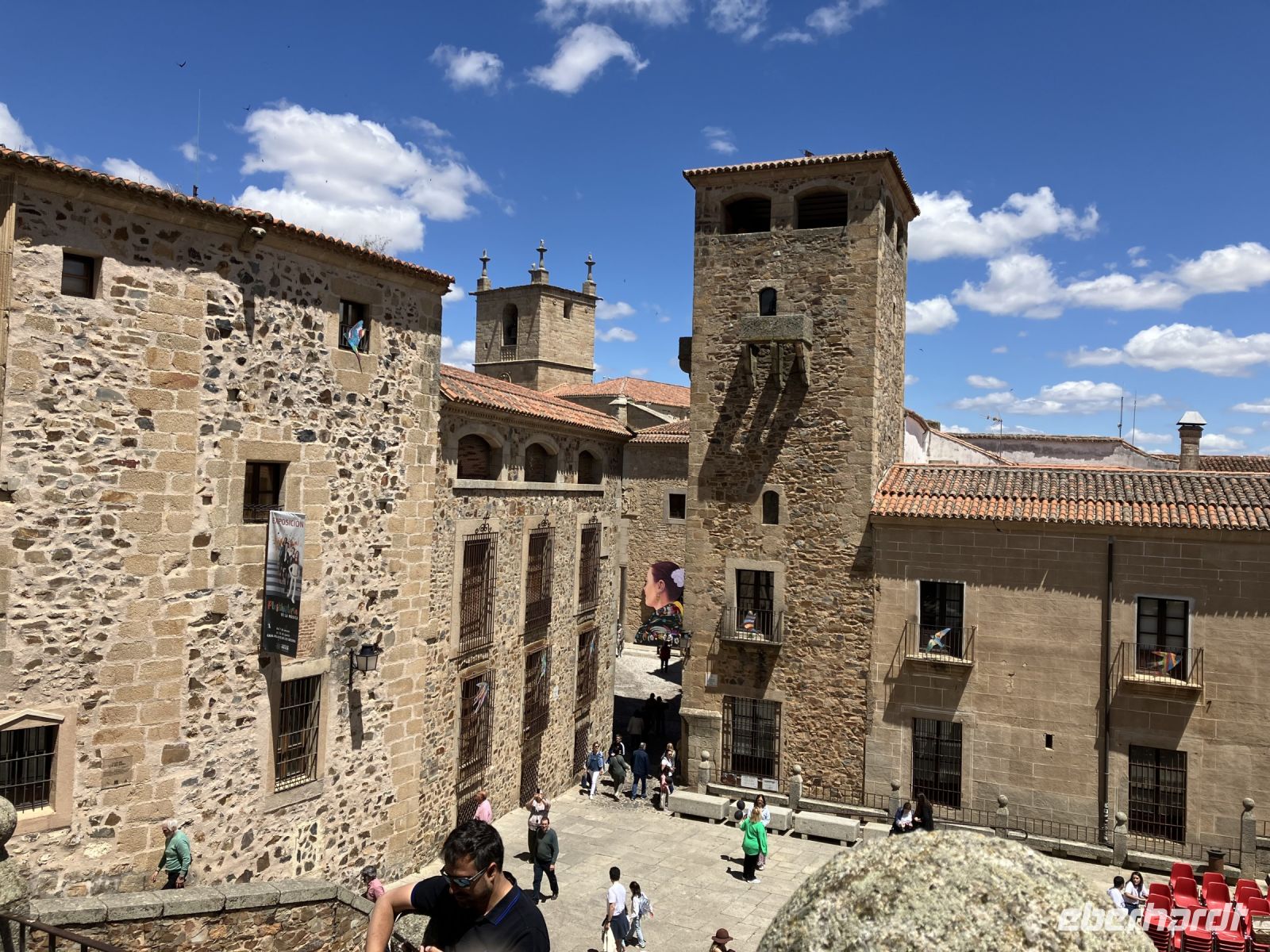 Ein wenig fiel es schwer, sich von der Kulinarik der Kultur hinzuwenden. Doch die schöne Stadt Cáceres wartete auf uns. Gleich zu Anfang wurde unser Blick von Handwerkern gefesselt, die bei einem Wettbewerb „Mauern von Rundfenstern“ teilnahmen. Und zusätzlich feierte man an diesem Tag in der Stadt eine Tourismus-Messe. Überall standen Menschen in traditionellen Trachten, wurde gesungen oder musiziert. Mit Trommeln und im Marschschritt überholte uns eine römische Truppe bei unserem Spaziergang durch das ehemals jüdische Viertel der Stadt.