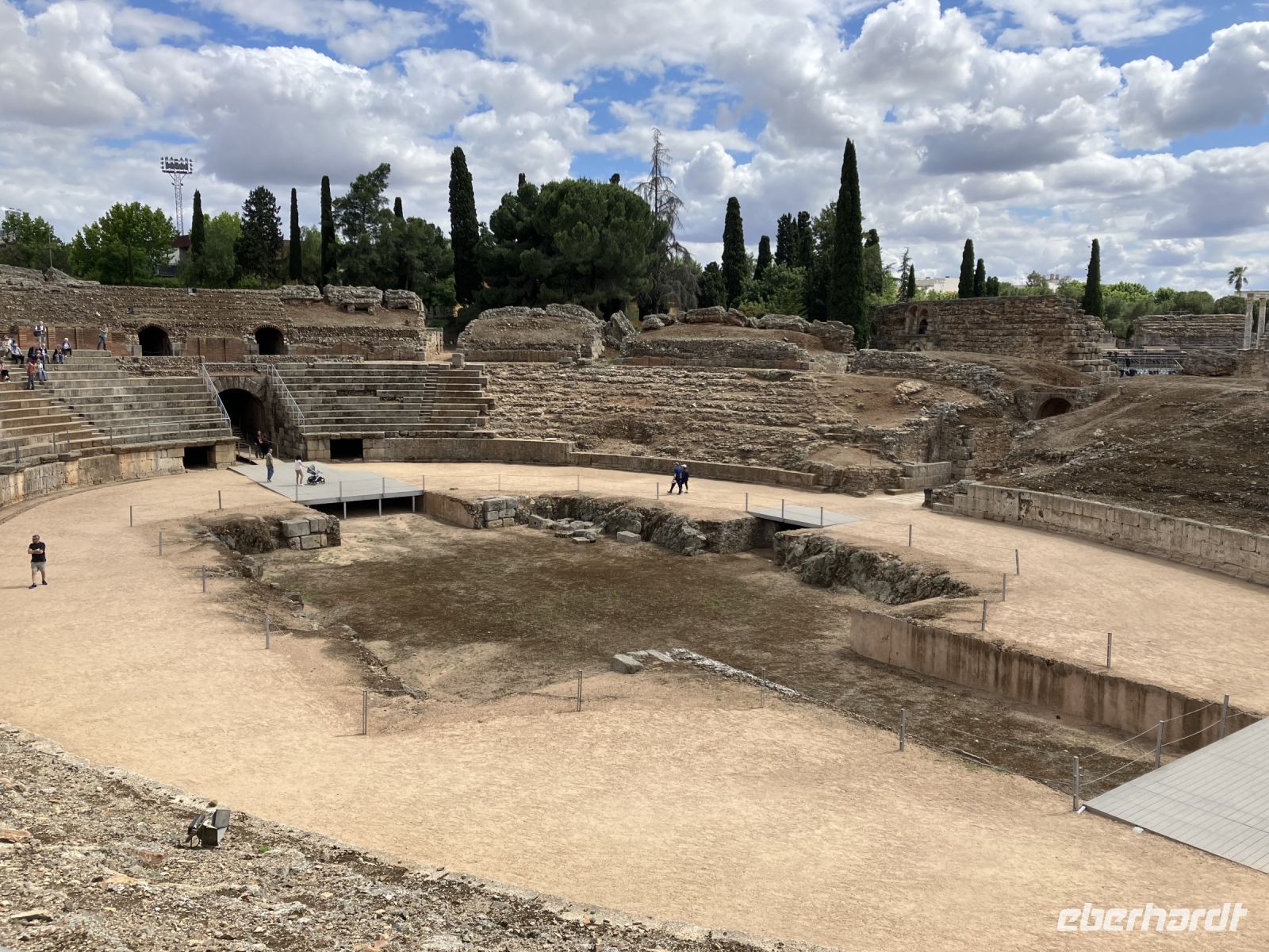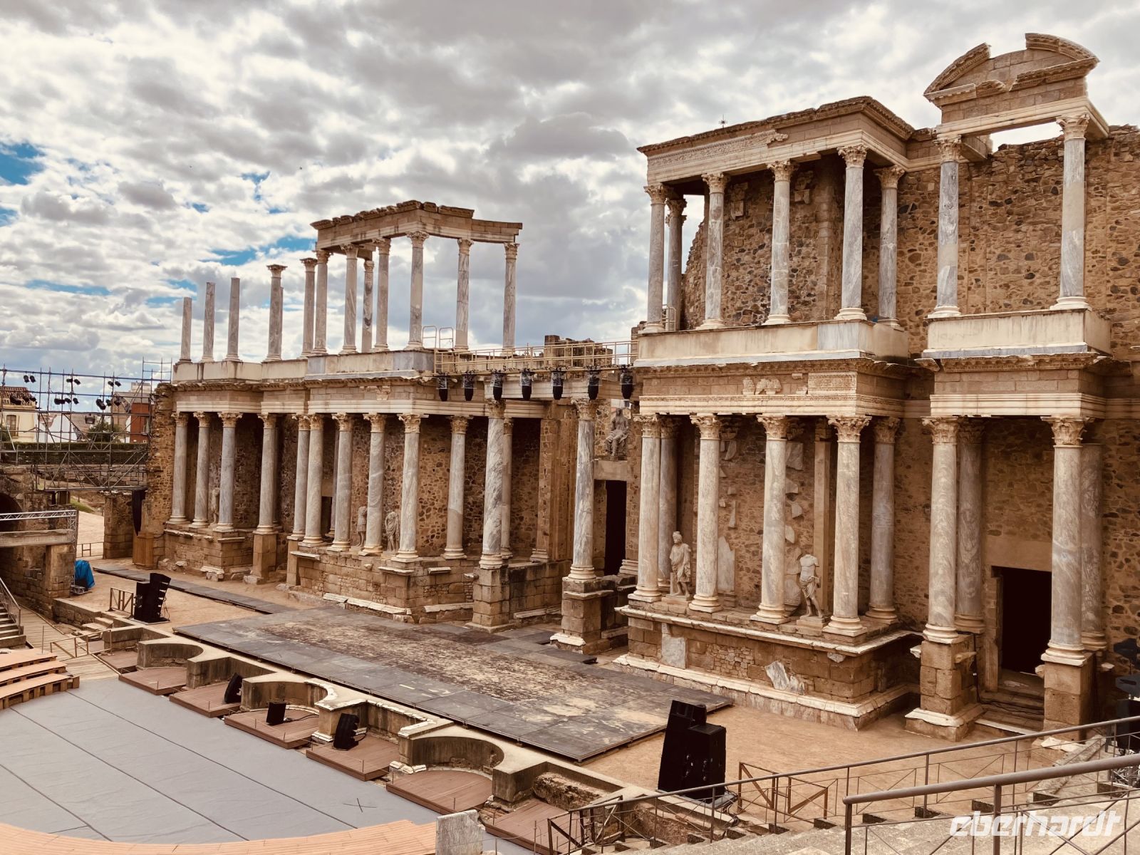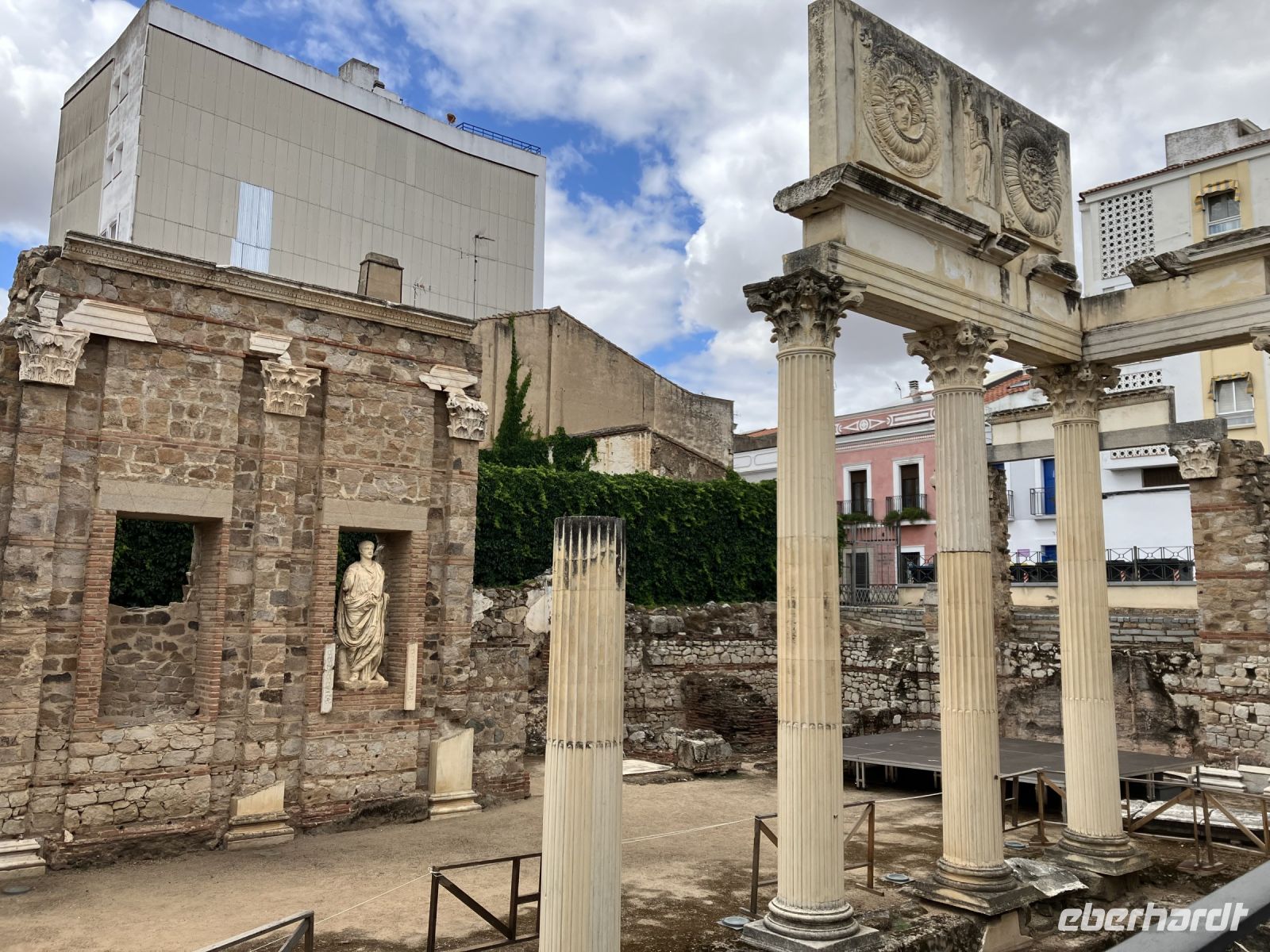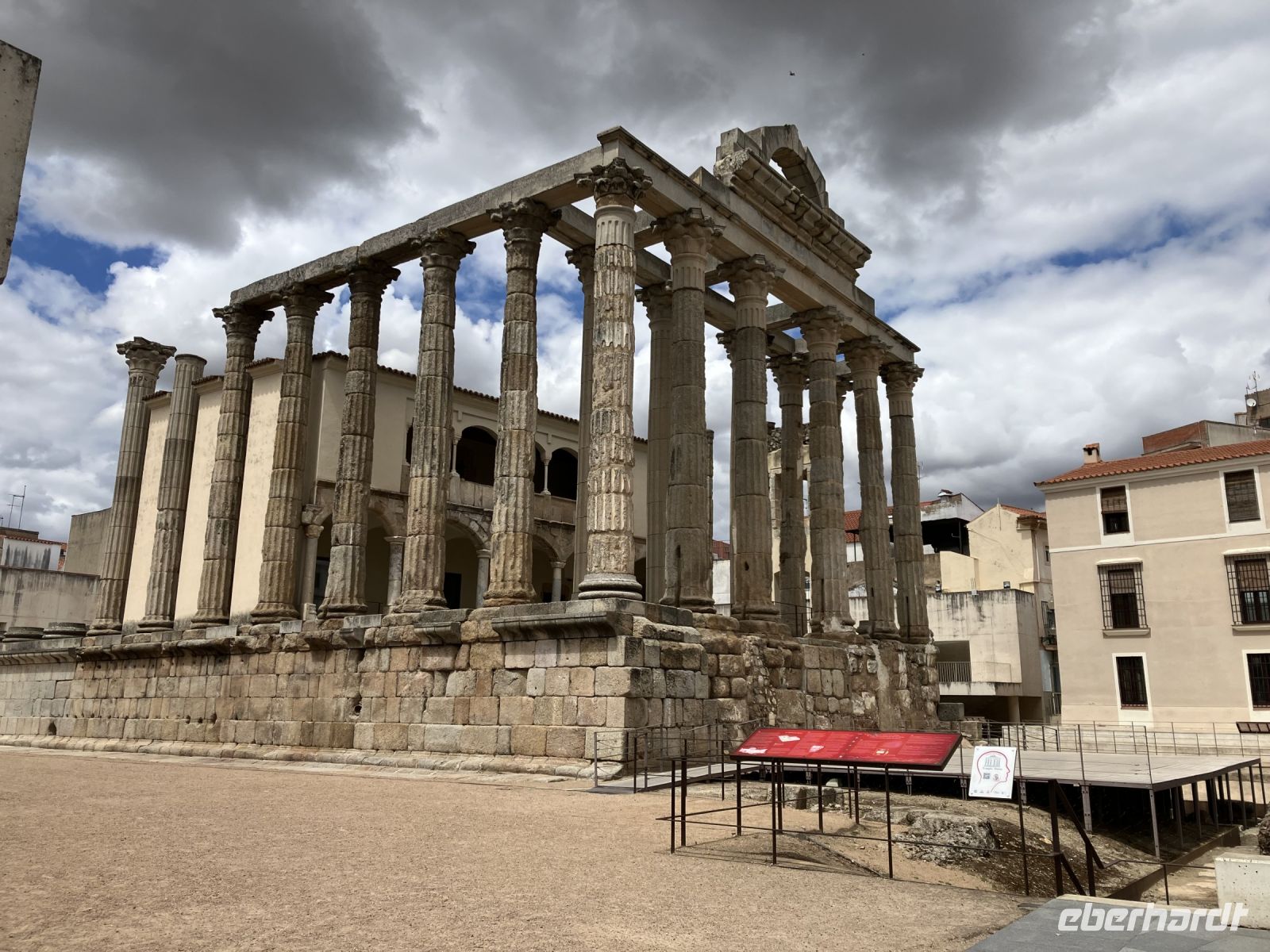 Nach kurzer Fahrt erreichten wir Mérida. Im Hotel empfing uns der lokale Reiseleiter Davíd, der uns mit auf eine Entdeckungsreise durch die ehemals als Emérita Augusta bezeichnete Stadt nahm. Plötzlich fühlten wir uns wirklich ein bisschen wie in Rom. Wir liefen vorbei am Forum, fotografierten den Diana-Tempel, standen im Römischen Theater und staunten über das Amphitheater; alles bestens erhaltene archäologische Fundstätten aus der Römerzeit. Ein Blick ins Museum der Stadt vervollkommnete das Bild. Kein Wunder, das Mérida im Jahr 1993 von der UNESCO zum Weltkulturerbe erklärt wurde.