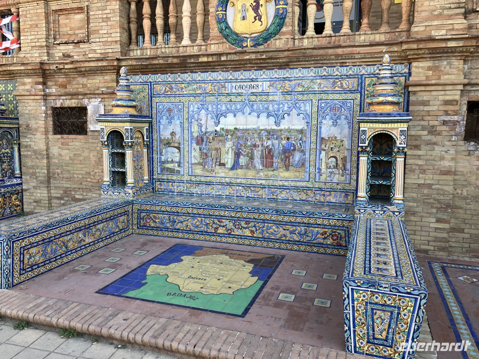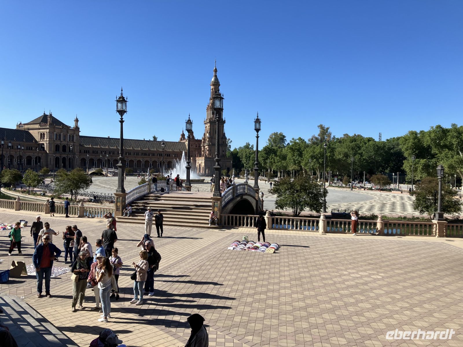 Der Parador von Carmona zog uns jede Minute in seinen Bann. Wollten wir heute einen Ausflug machen oder lieber hier verweilen? Nach dem Frühstück siegte die Vorfreude auf mehr Andalusien – Auf nach Sevilla! Auf der Plaza de España stürzten wir uns in das Gewimmel der Touristen und „japanierten“ ;-)