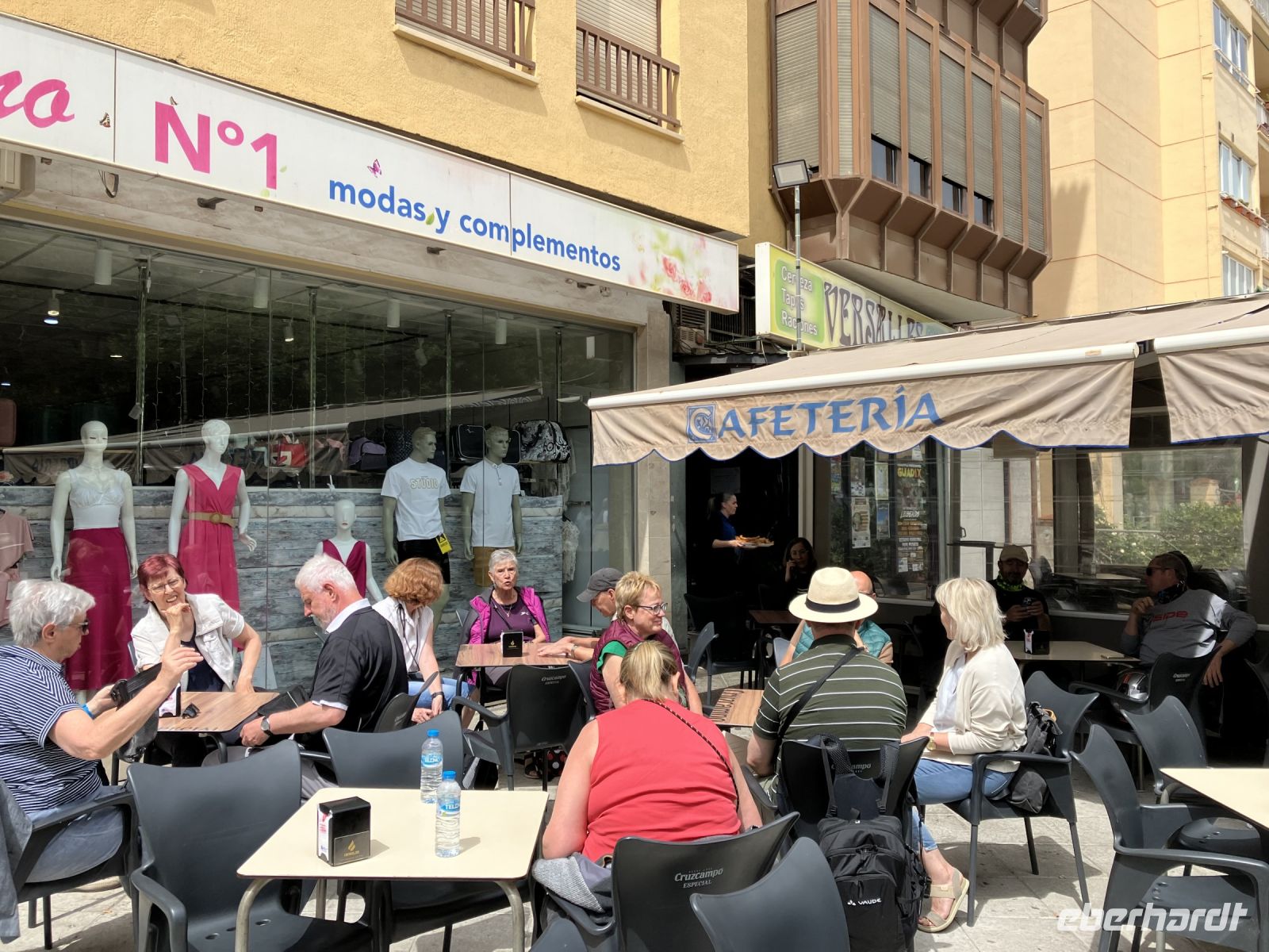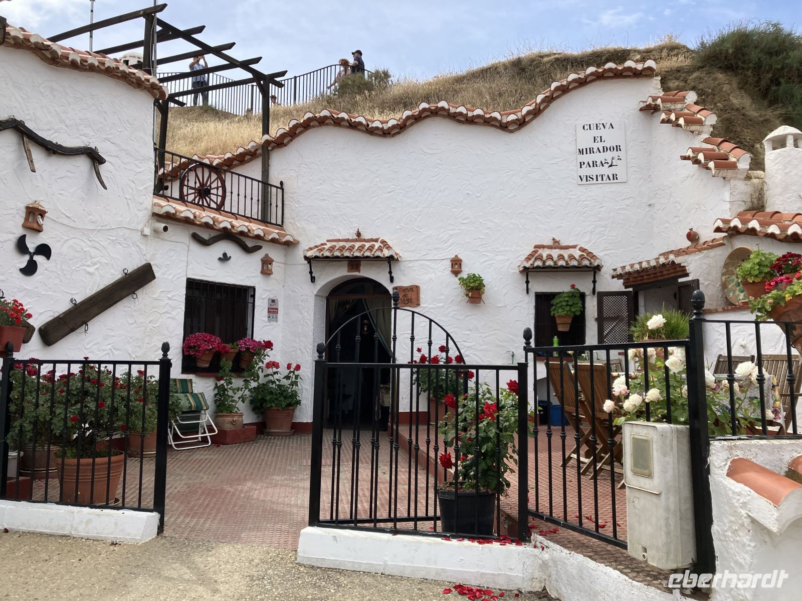 Ein langer Weg ans Mittelmeer lag vor uns. Unterbrochen wurde die Fahrt von einer Pause in der Hauptstadt der Höhlenwohnungen, in Guadix. Mitten in den noch grün bewaldeten Bergen ändert sich die Landschaft allmählich. Vor uns breiteten sich die “Badlands” aus, die Wüste von Gorafe. Vor mehr als 100.000 Jahren befand sich hier tatsächlich ein von Bergen umgebener See mit einem reichen Tier- und Pflanzenleben. Dieser ergoss sich über den Fluss Guadiana Menor in den Río Guadalquivir und hinterließ uns ein interessantes Sedimentbecken. Zurück blieb ein einzigartiges, zerklüftetes Relief mit einem unverwechselbaren Charakter. In das weiche Kalktuff- und Lössgestein wurden von den Bewohnern nach und nach etwa 2000 Höhlenwohnungen gehauen und sogar eine kleine Kapelle, die Santa Cueva. Mit einem Touristenzug erreichten wir mit klassicher Musik das Höhlenviertel. Bei Don Jose schauten wir uns seine Höhlenwohnung an, in der immer um die 20° C herrschen. Nach der Besichtigung der Höhlenstadt Guadix folgten wir der Empfehlung unseres Busfahrers Gustavo. Wir aßen Churros, denn in Guadix soll es die besten Churros Andalusiens geben. Sie schmeckten uns ausgezeichnet mit einer Tasse dicker Trinkschokolade und einem heißen Kaffee.