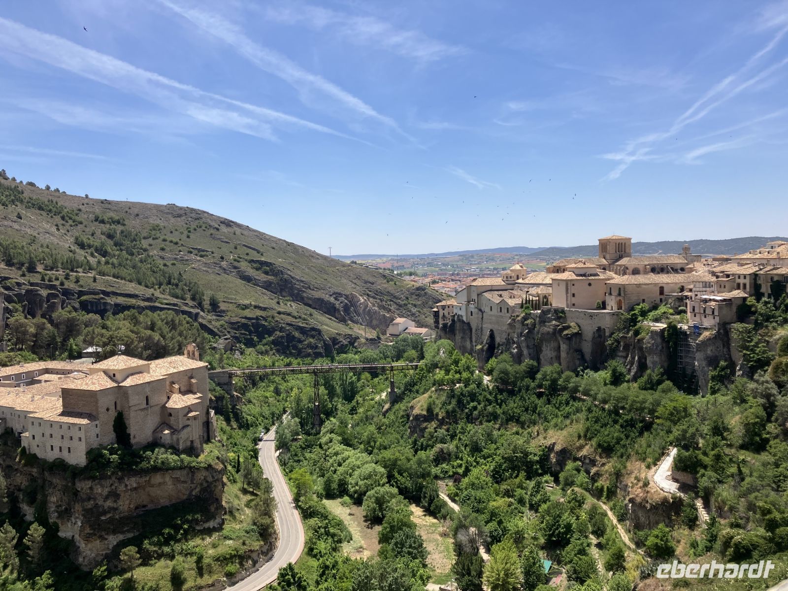 Ein Aufstieg bis zur ehemaligen Burg wurde mit einem fantastischen Ausblick belohnt. Auf der anderen Seite von Cuenca schlängelt sich der Fluss Jucar durch ein Tal und so wird die Stadt von den beiden Flüssen auf spektakuläre Art und Weise eingerahmt.