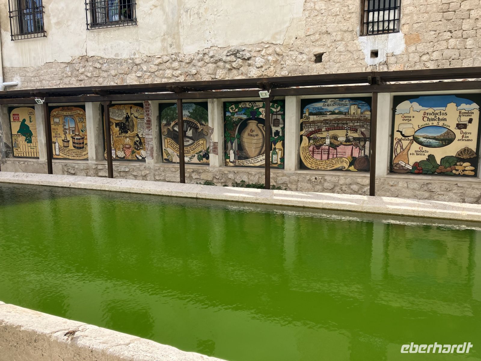 Gegen Mittag kamen wir wieder nach Kastilien – La Mancha. Nach einem kleinen Spaziergang standen wir vor der Schlucht des Flusses Huecar. Gegenüber ragten die Felsen mit den daran klebenden Häusern auf – die Casas Colgantes – den hängenden Häusern. Über die Eisenbrücke gelangte wir in die Altstadt und ließen uns in einem kleinen Cafés nieder und genoßen den berühmten Kaffeelikör Resolí aus Cuenca, eiskalt auf Eis serviert. Ein paar Schinken-Käseplatten vervollständigten den Genuss.